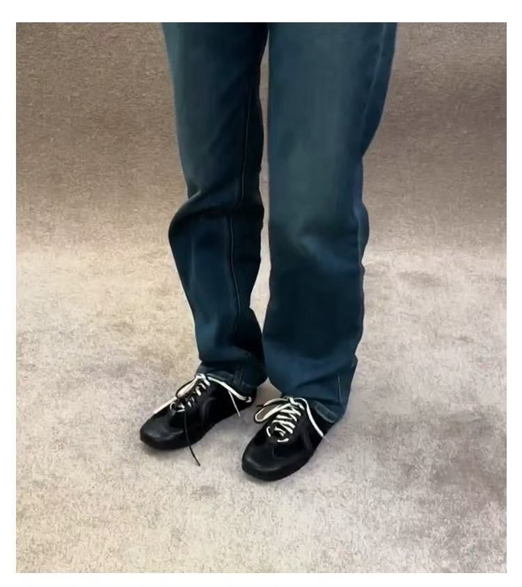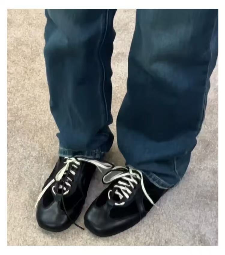 2025 봄과 가을 레트로 블랙 독일 트레이닝 슈즈 레이스 업 포레스트 검프 슈즈 여성 내부 높이 증가 캐주얼 보드 슈즈 운동화 트렌드스토어 가기
