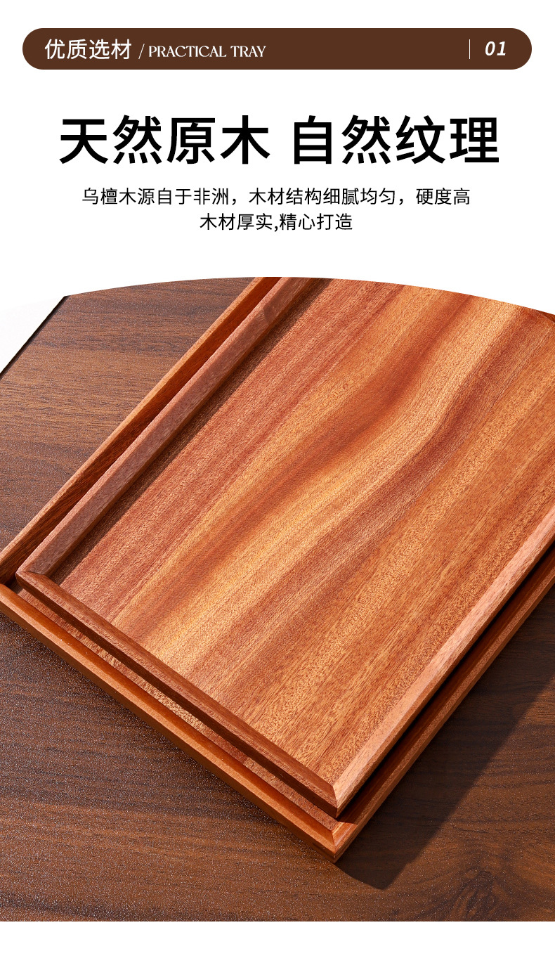 단단한 나무 차 트레이 검은 색 백단 트레이 직사각형 나무 트레이 홈 간단한 나무 저녁 식사 트레이 호텔 도매스토어 가기