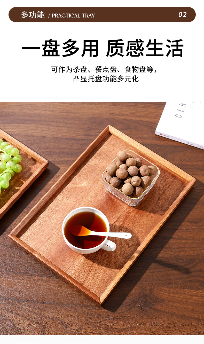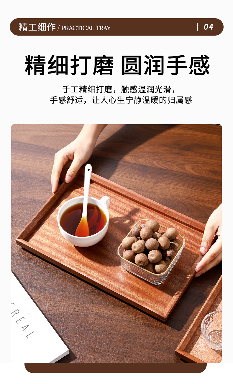 北美黑胡桃木茶盘实木托盘长方形木盘子咖啡简约木质餐盘酒店家用