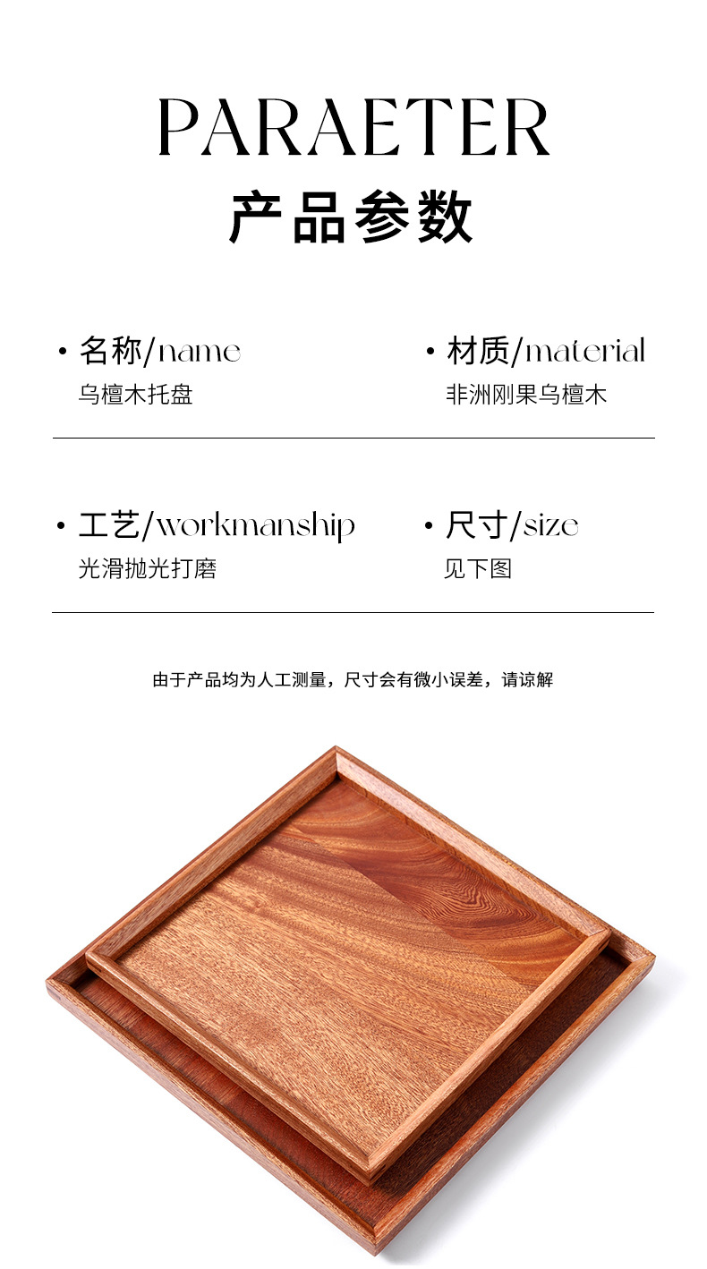 단단한 나무 차 트레이 검은 색 백단 트레이 직사각형 나무 트레이 홈 간단한 나무 저녁 식사 트레이 호텔 도매
