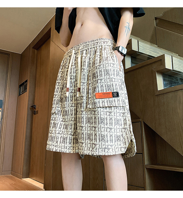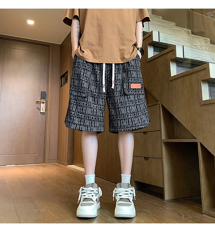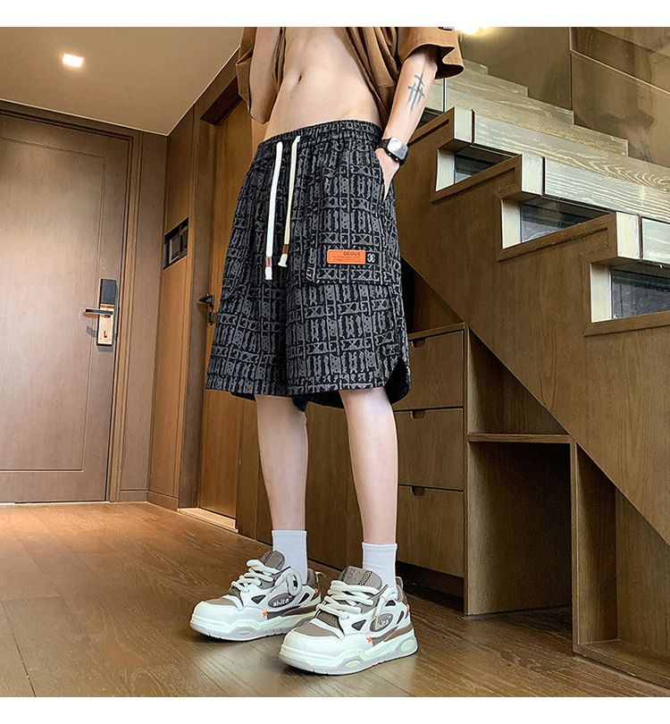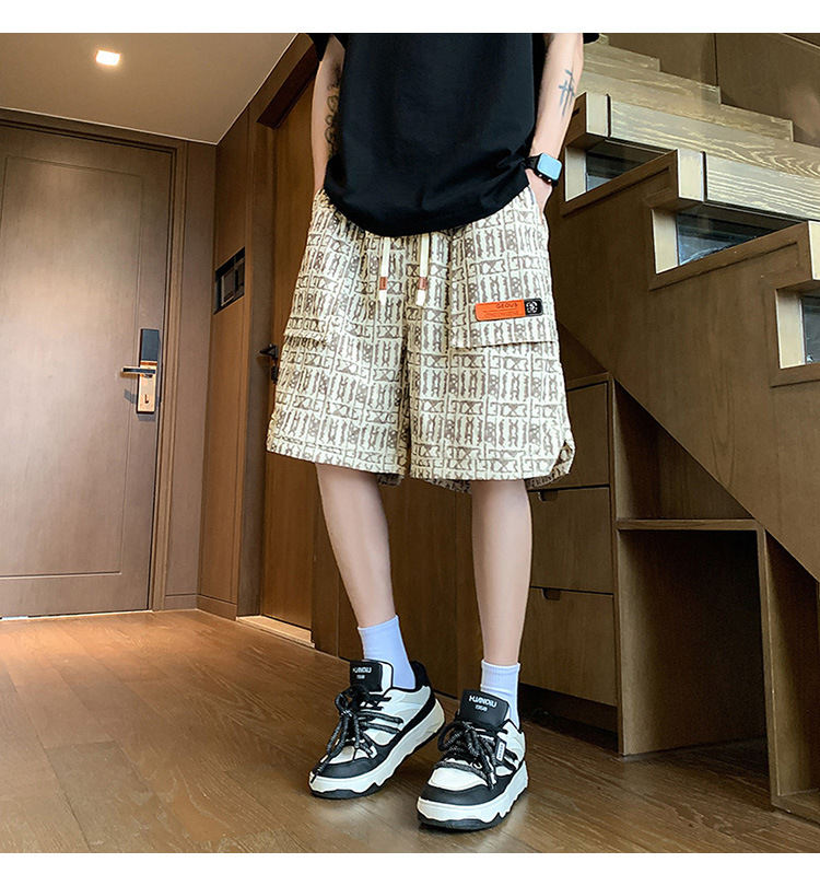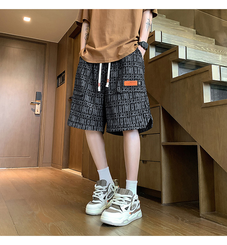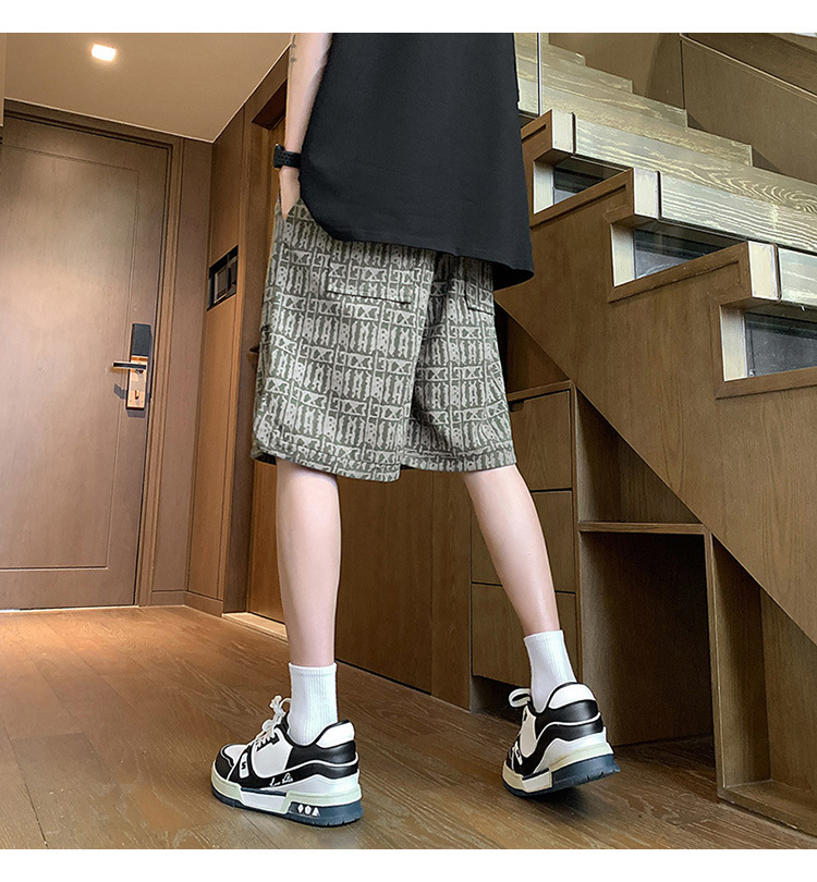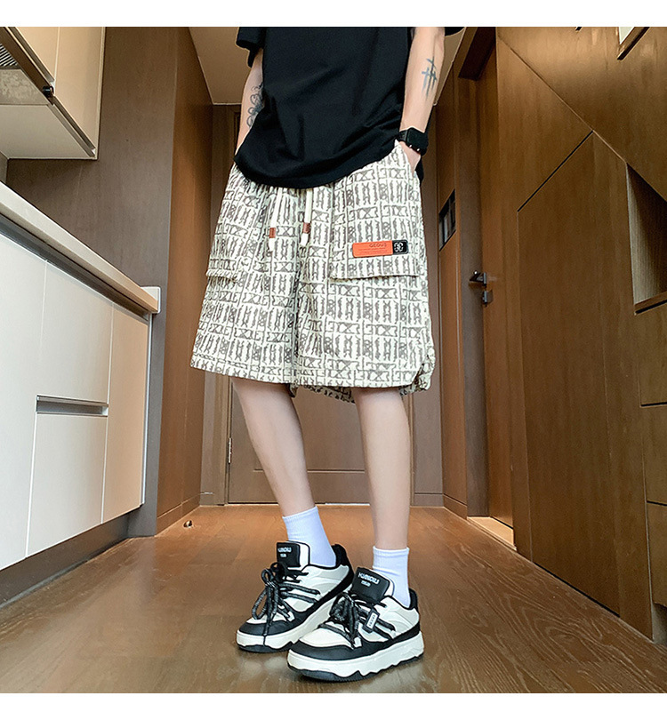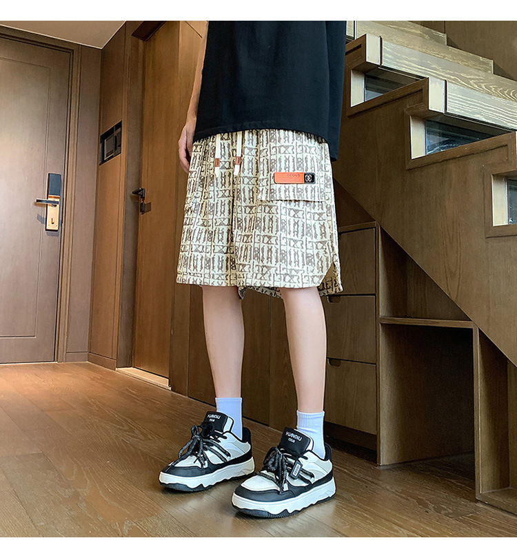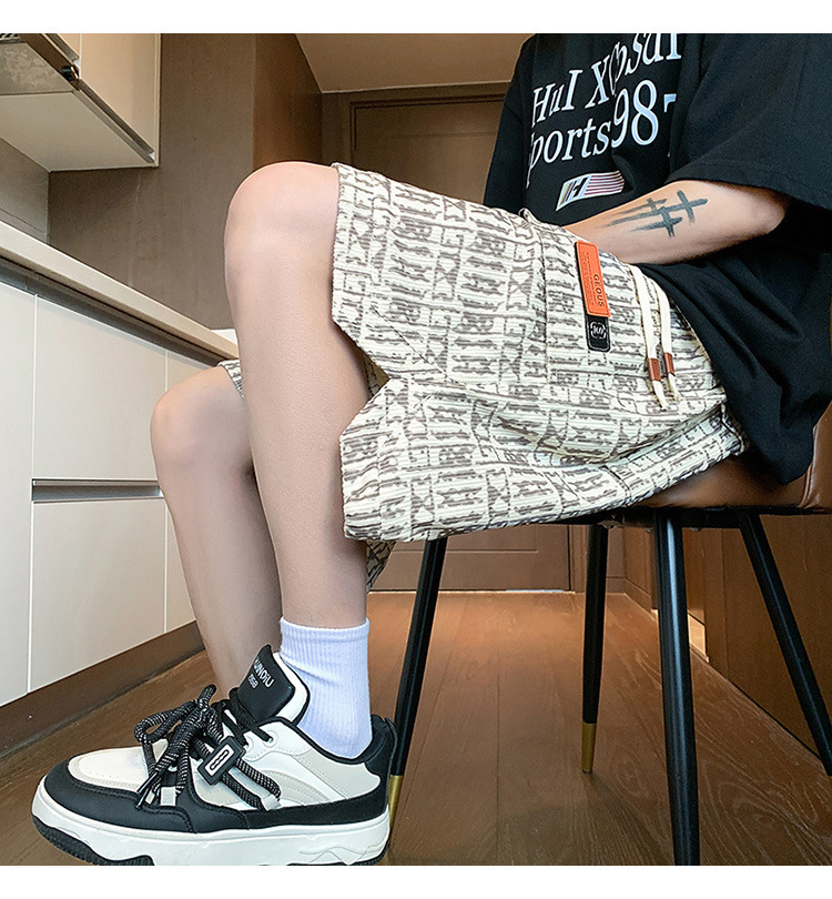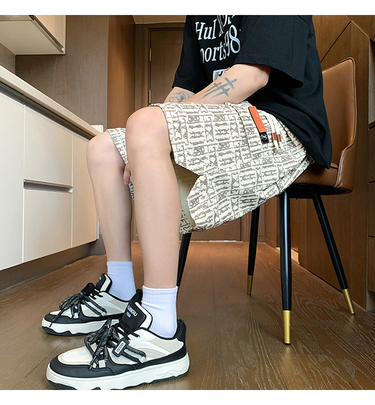 아메리칸 스타일 레트로 반바지 남자 2025 년 여름 새로운 패션 브랜드 엘라 스토익 허리 편지 전체 인쇄 캐주얼 스트레이트 바지