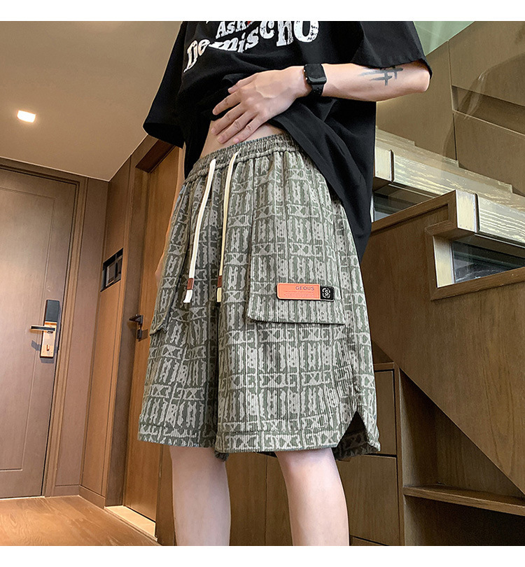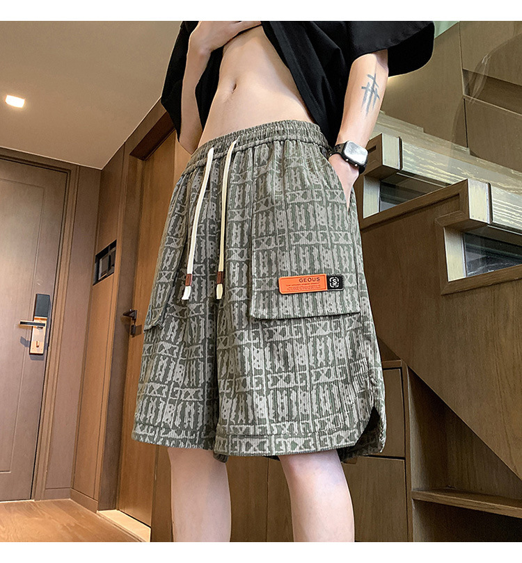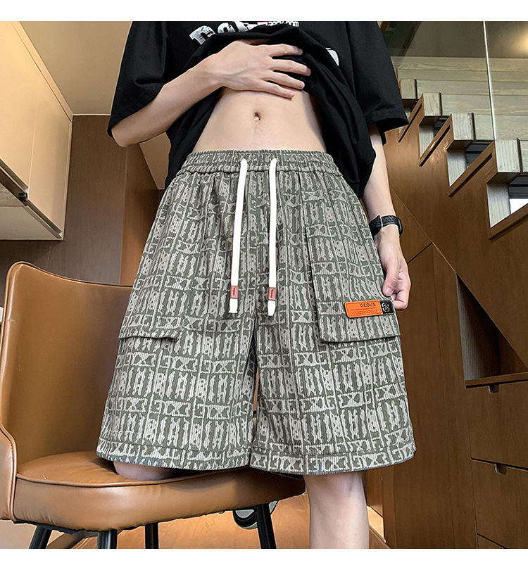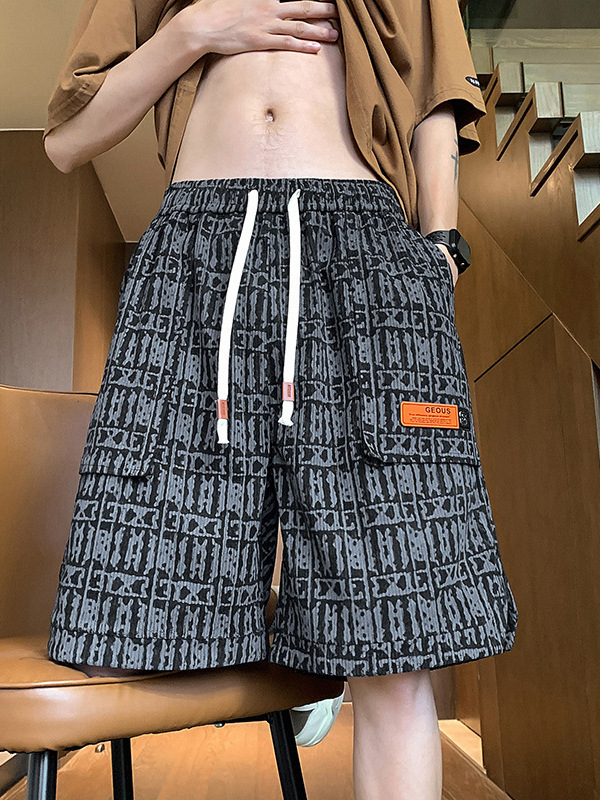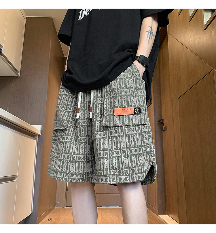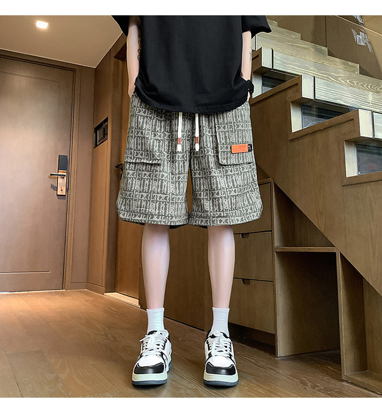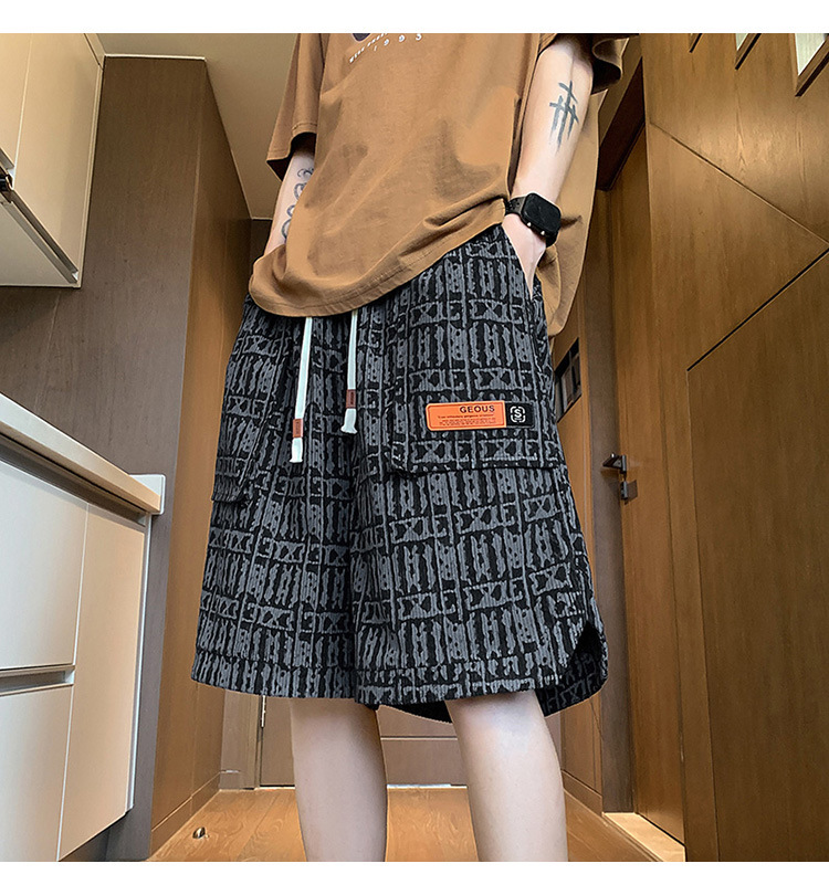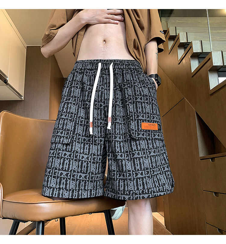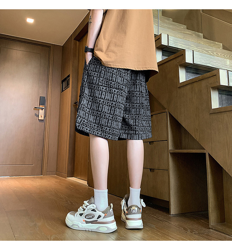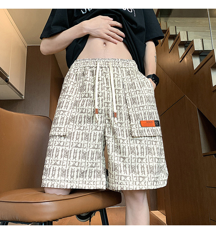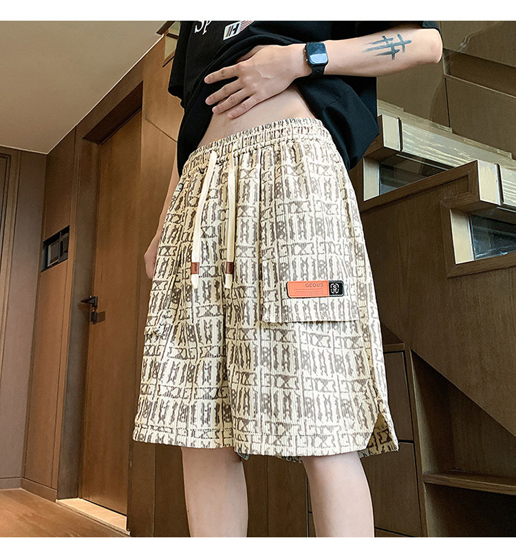 아메리칸 스타일 레트로 반바지 남자 2025 년 여름 새로운 패션 브랜드 엘라 스토익 허리 편지 전체 인쇄 캐주얼 스트레이트 바지