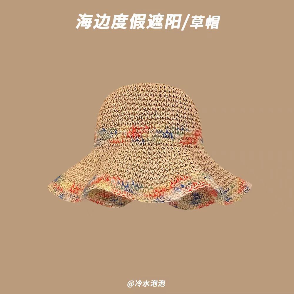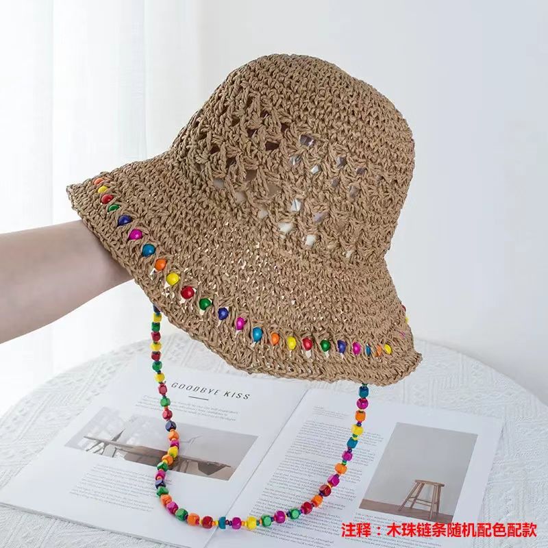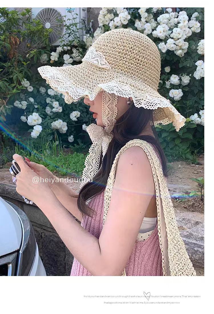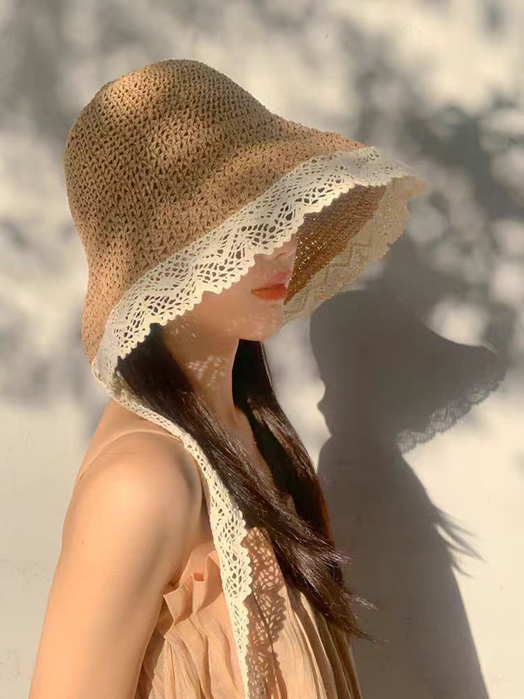 밀짚모자, 손으로 짠 접이식 밀짚모자, 자외선 차단 어부모자, 얼굴을 가리는 햇빛 가리개 밀짚모자, 해변용 밀짚모자