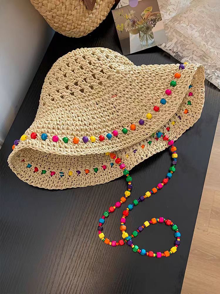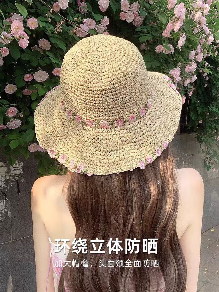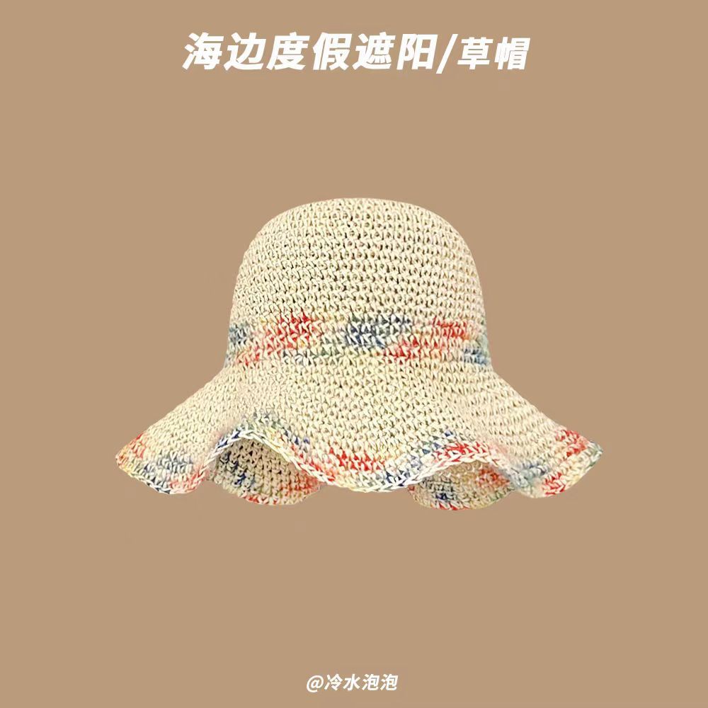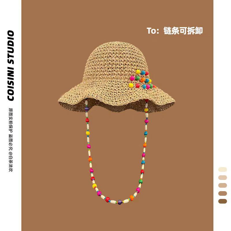 밀짚모자, 손으로 짠 접이식 밀짚모자, 자외선 차단 어부모자, 얼굴을 가리는 햇빛 가리개 밀짚모자, 해변용 밀짚모자