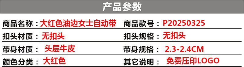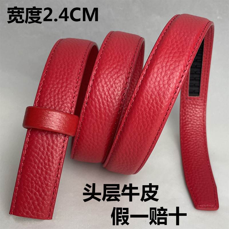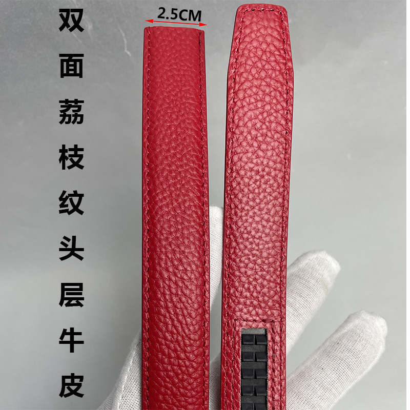 本产品双面荔枝纹头层牛皮,假一赔十,小斜边、车单线、油边工艺,宽度2.35-2.4CM,适合配内经2.5CM的自动扣头,本链接只含带身价格,如果需要扣头价格另议.