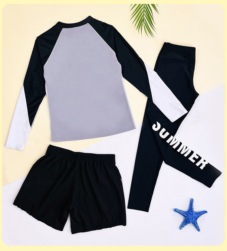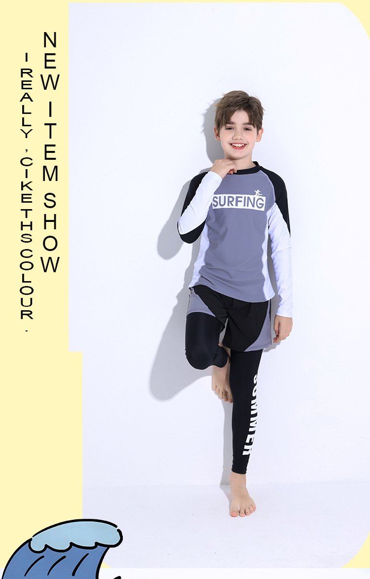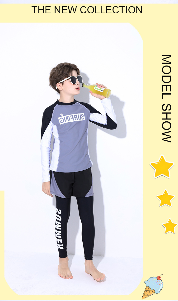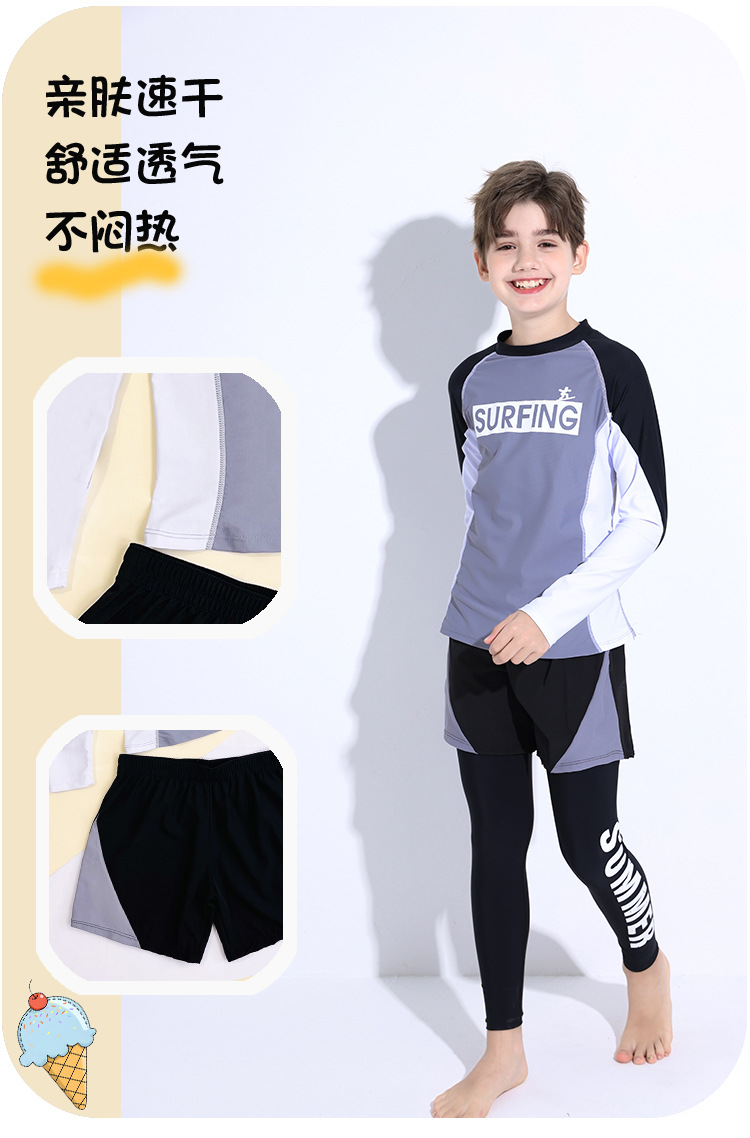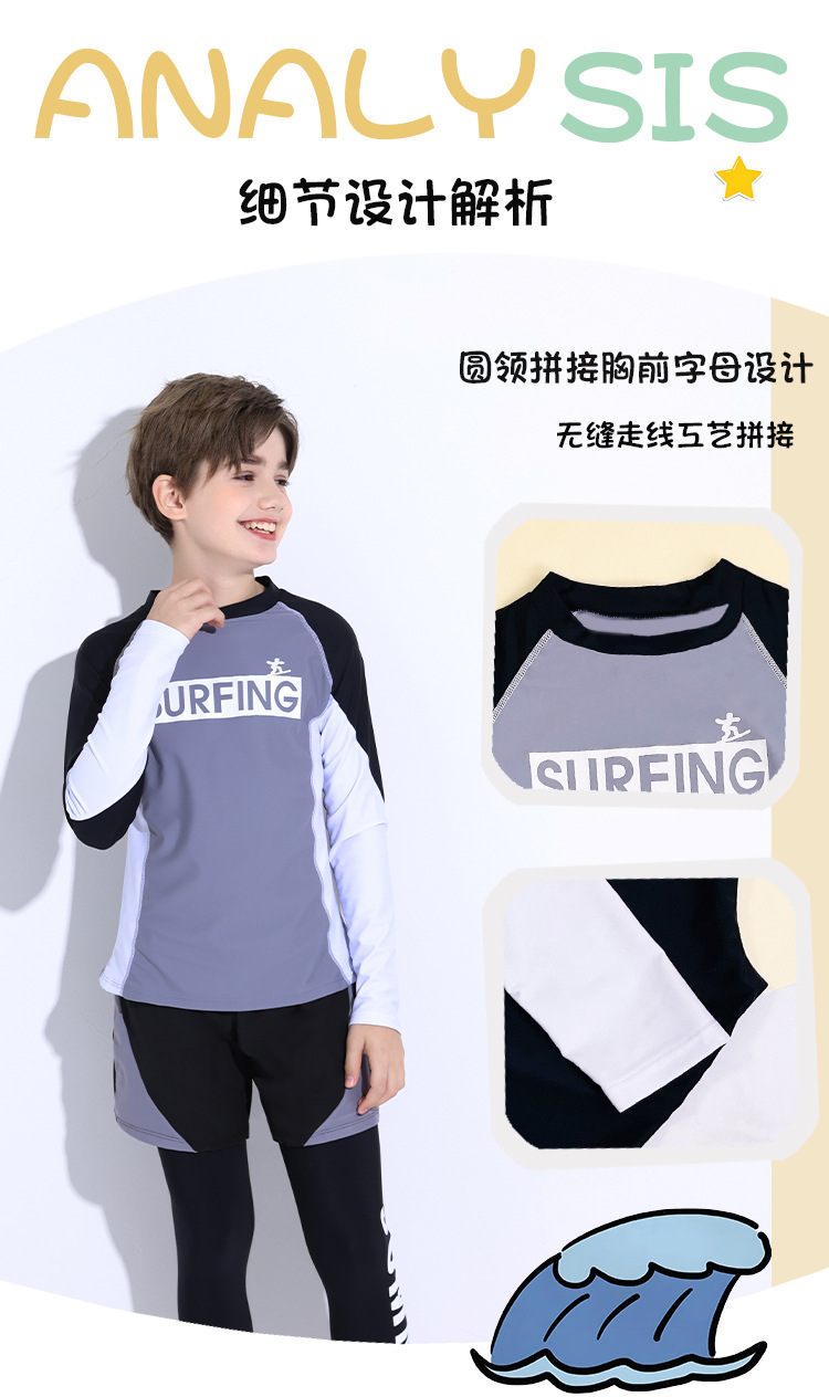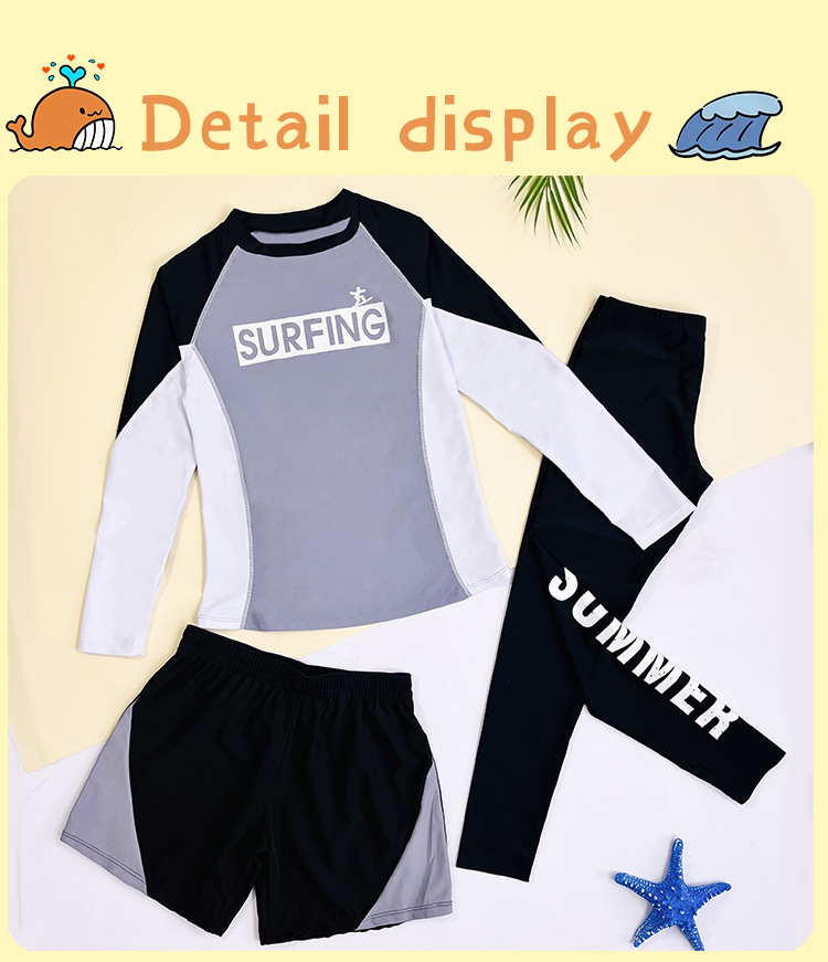 아동 수영복 소년 2025 새로운 긴팔 바지 스플릿 3 피스 세트 중대형 어린이 자외선 차단 서핑 잠수복