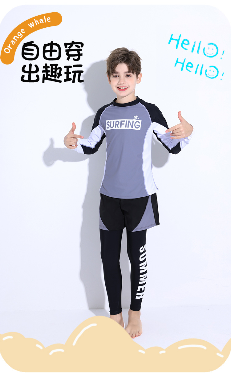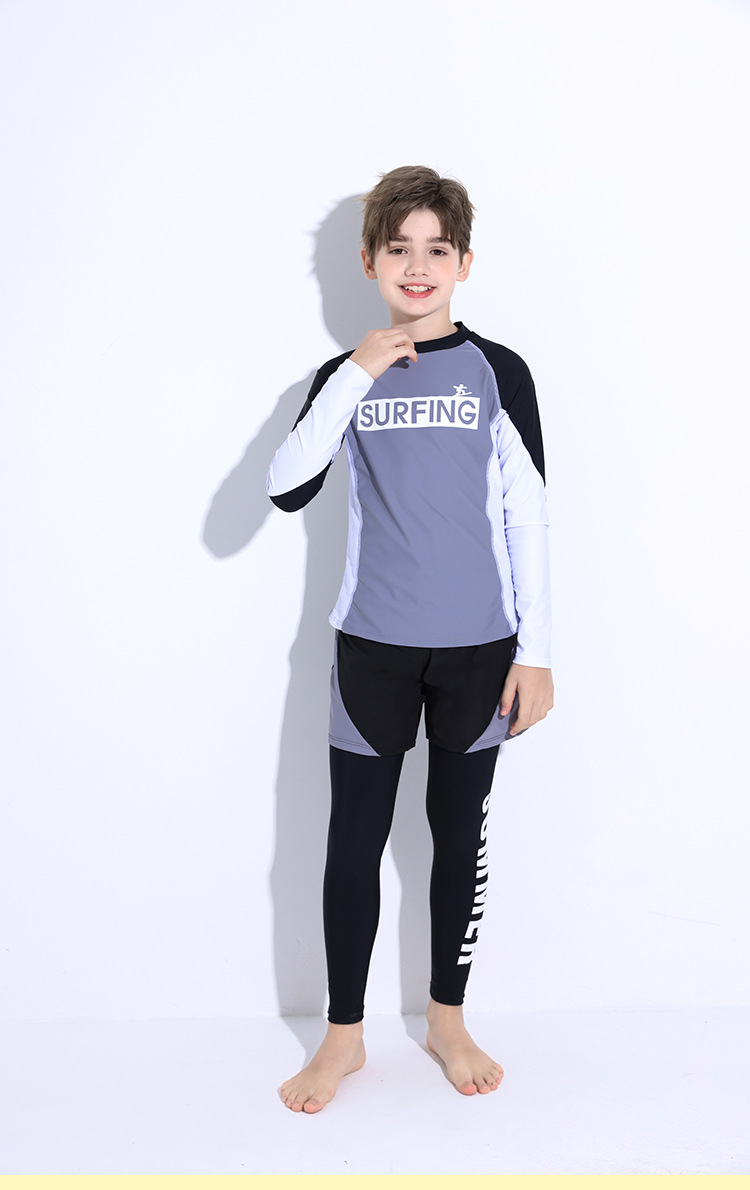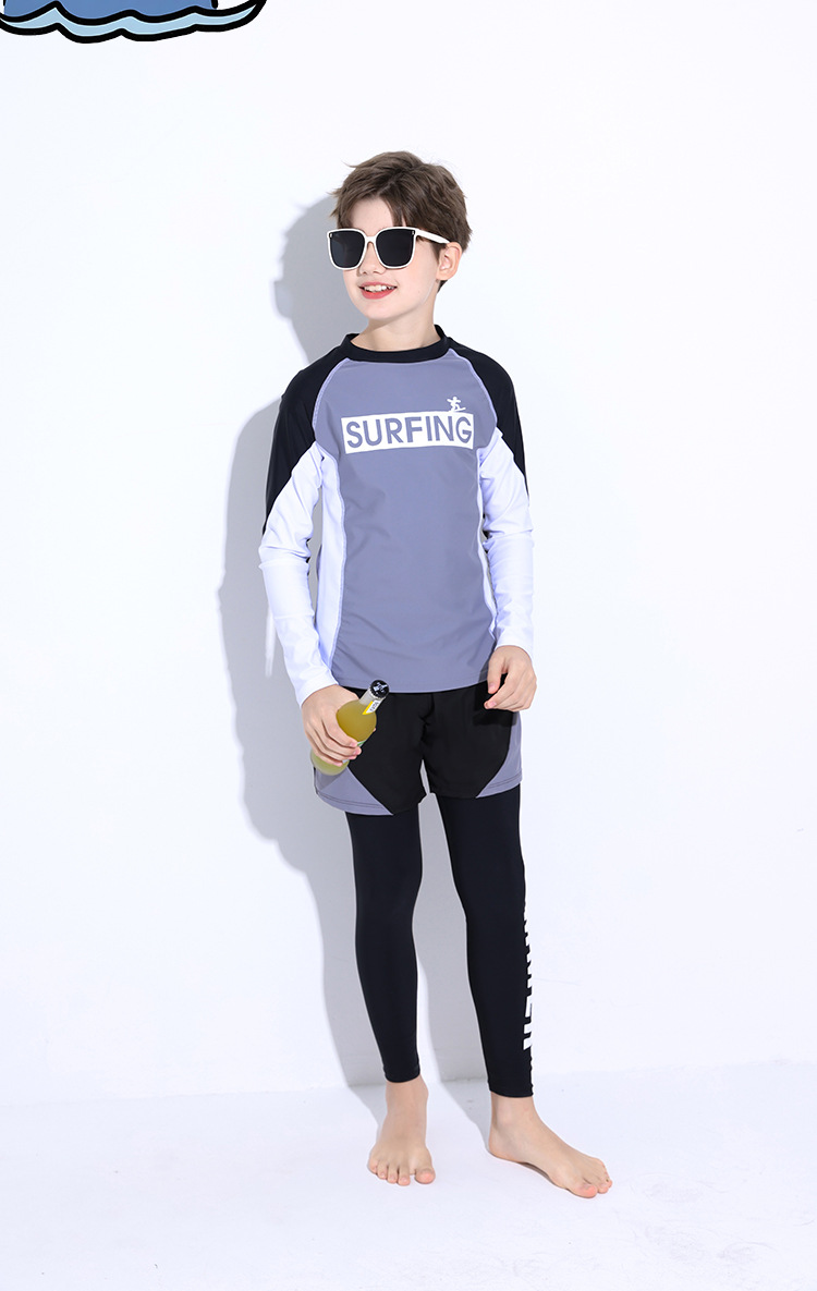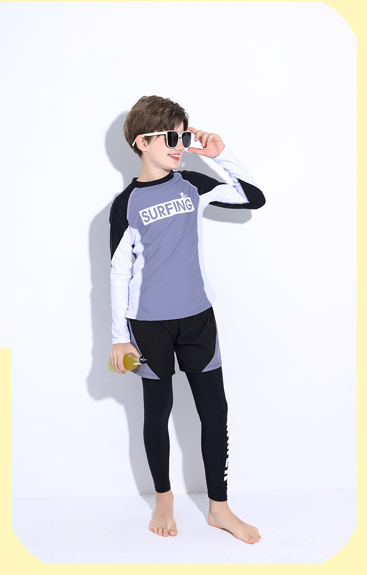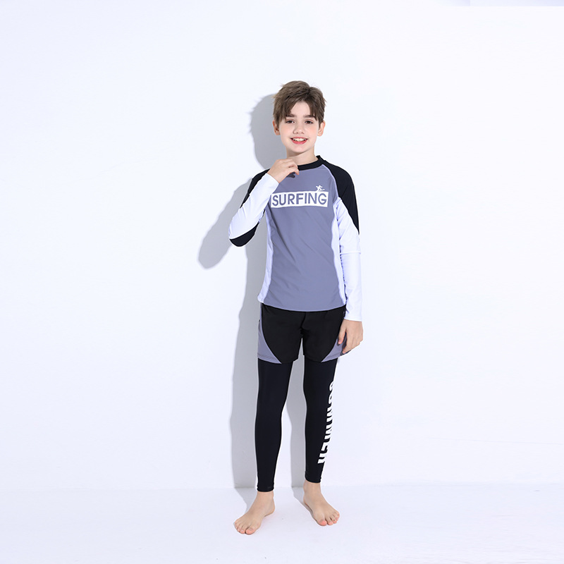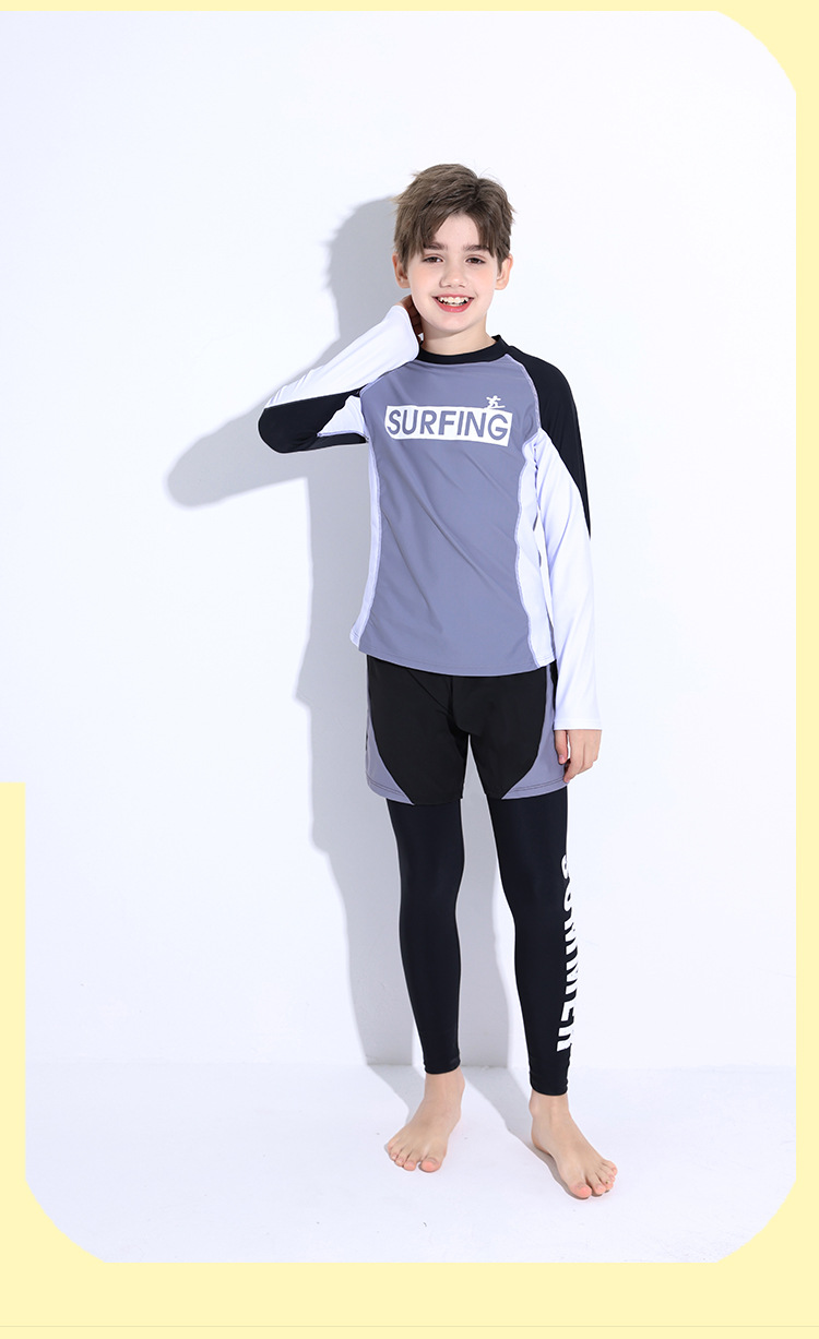 아동 수영복 소년 2025 새로운 긴팔 바지 스플릿 3 피스 세트 중대형 어린이 자외선 차단 서핑 잠수복
