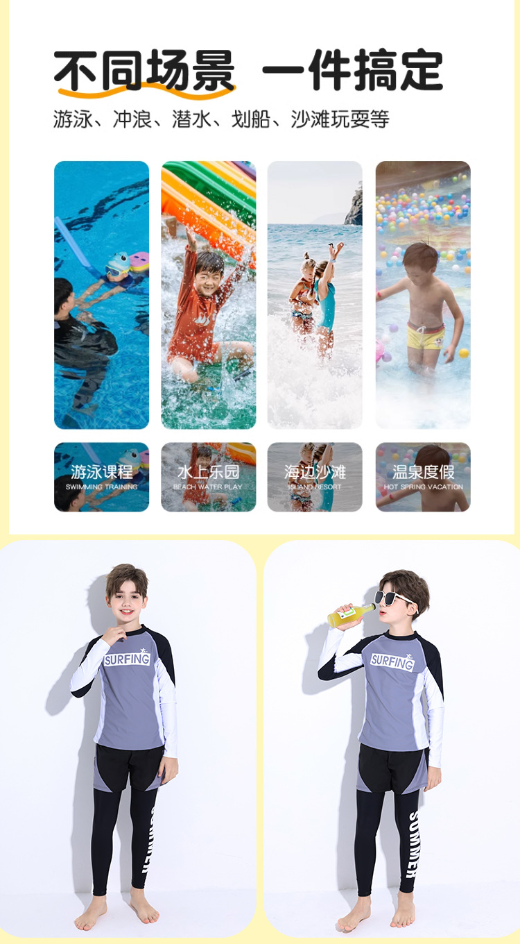 아동 수영복 소년 2025 새로운 긴팔 바지 스플릿 3 피스 세트 중대형 어린이 자외선 차단 서핑 잠수복스토어 가기