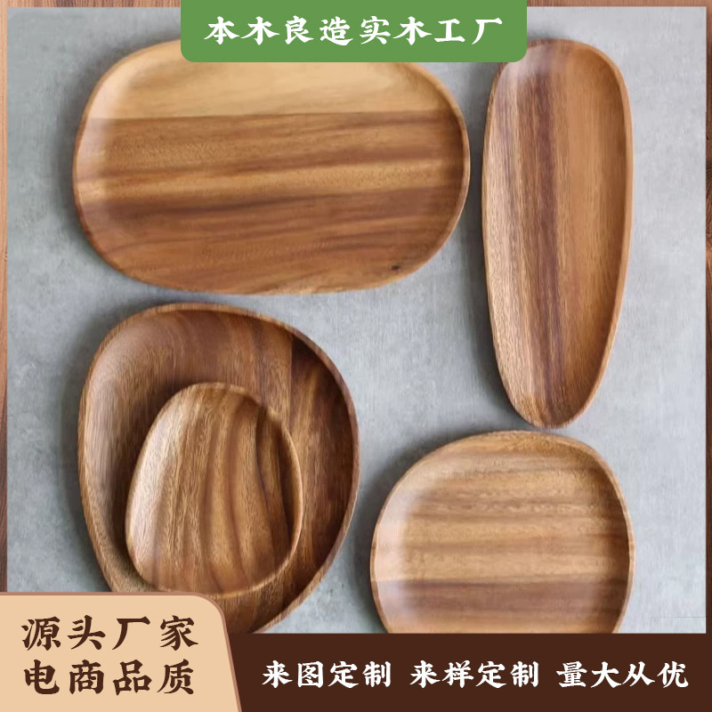맞춤형 검은 호두 나무 접시 둥근 저녁 식사 접시 나무 과일 접시 트레이 나무 접시 단단한 나무 스낵 작은 과일 접시스토어 가기