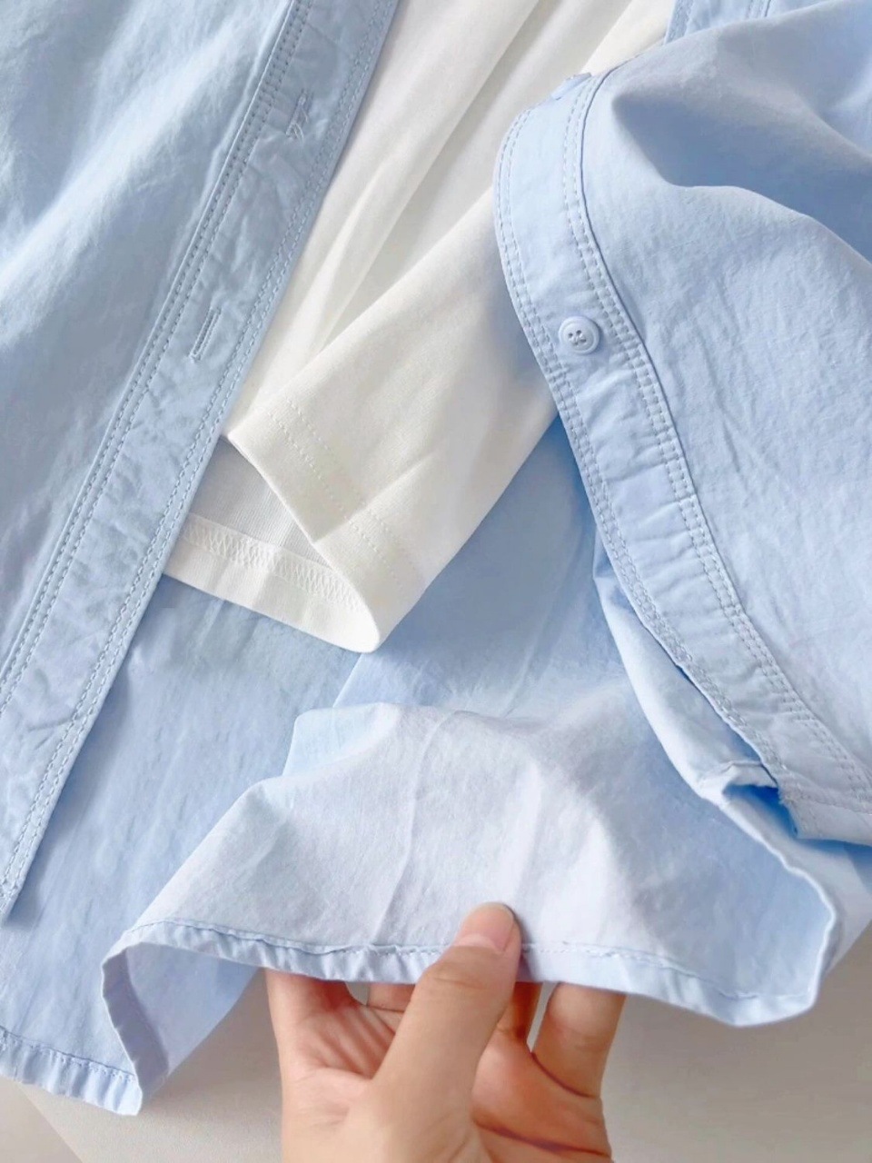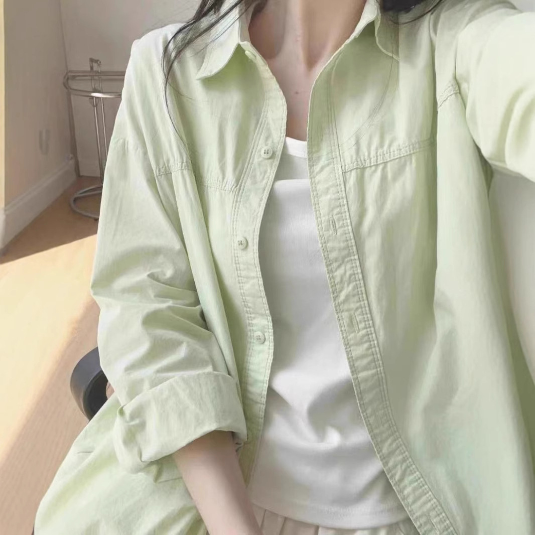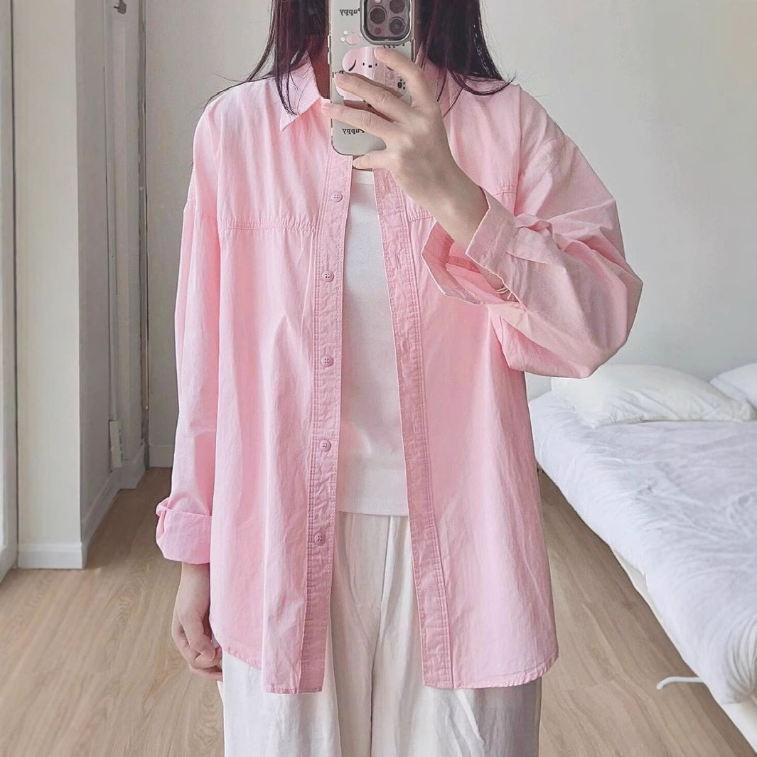 100 면 도파민 여름 긴팔 셔츠 여성의 새로운 도착 착용 느슨한 셔츠 외복을위한 올 매치 슬림 핏 탑