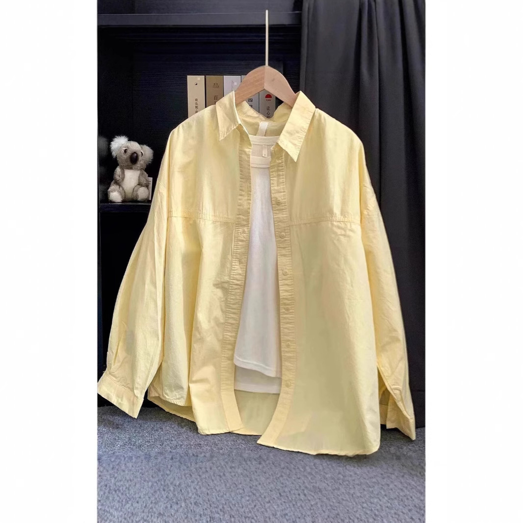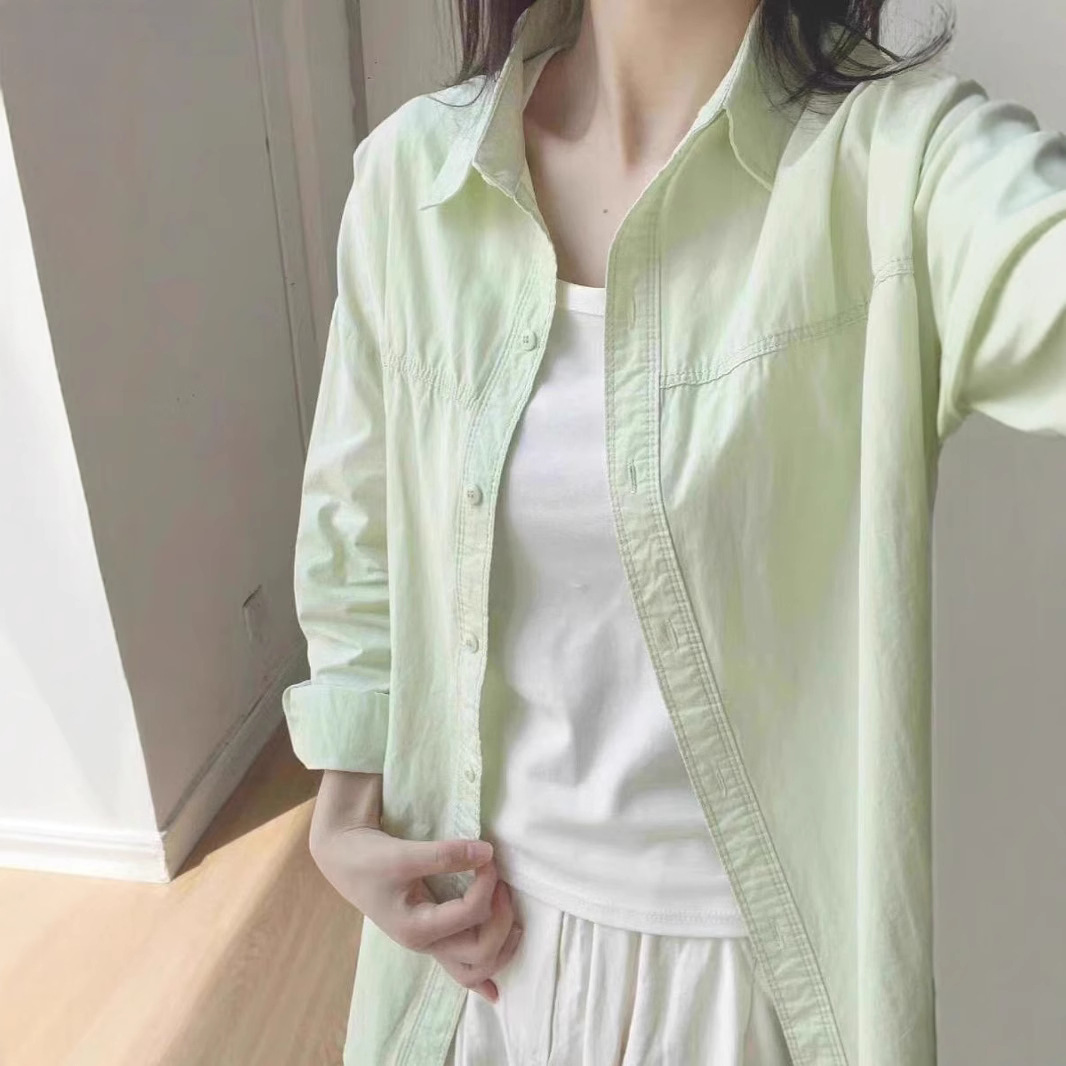 100 면 도파민 여름 긴팔 셔츠 여성의 새로운 도착 착용 느슨한 셔츠 외복을위한 올 매치 슬림 핏 탑스토어 가기
