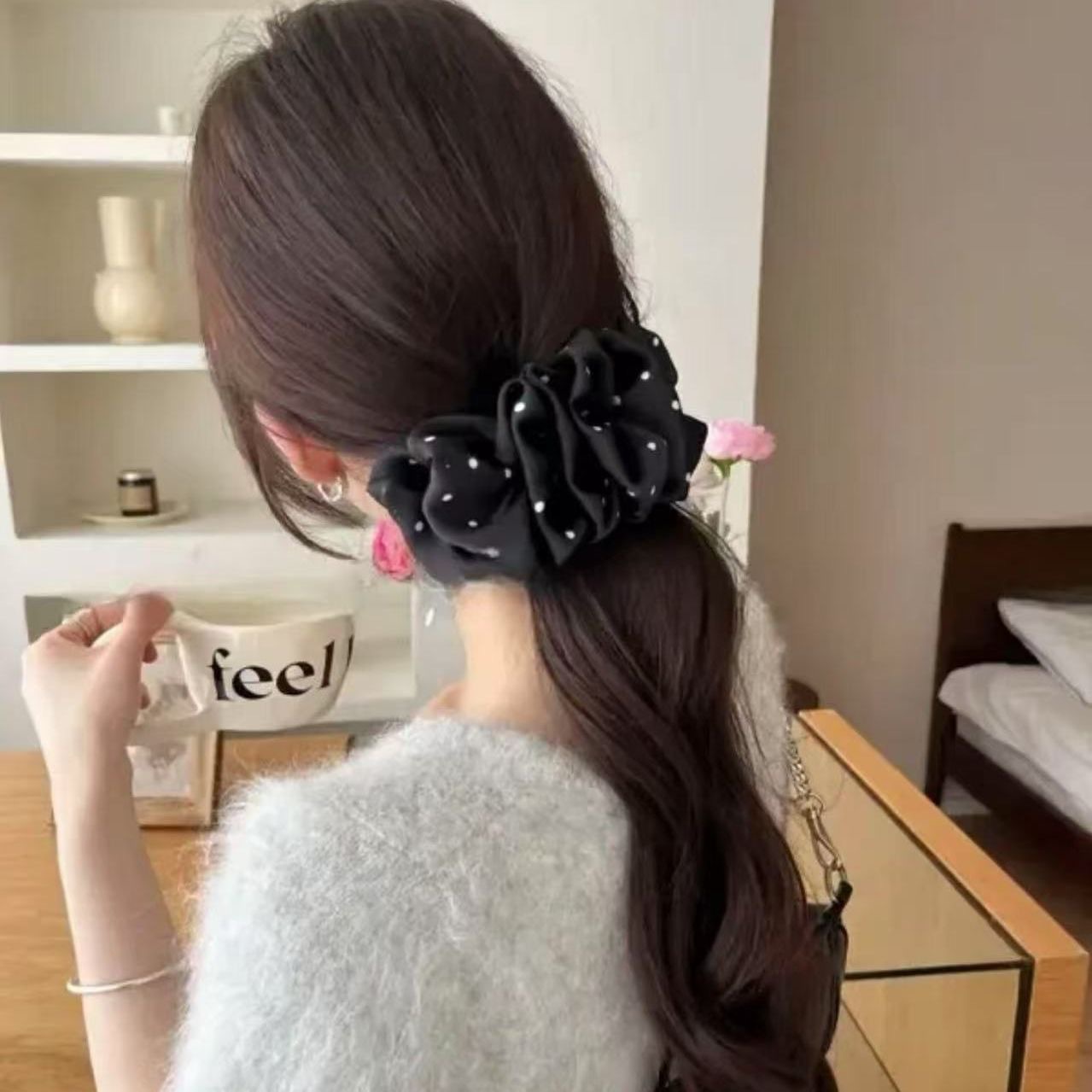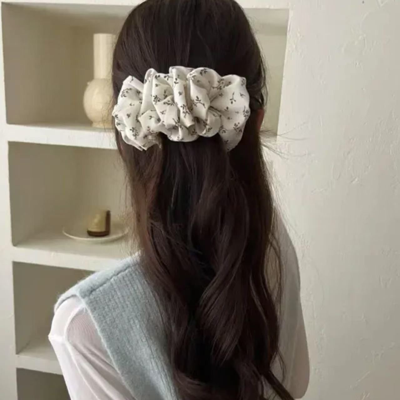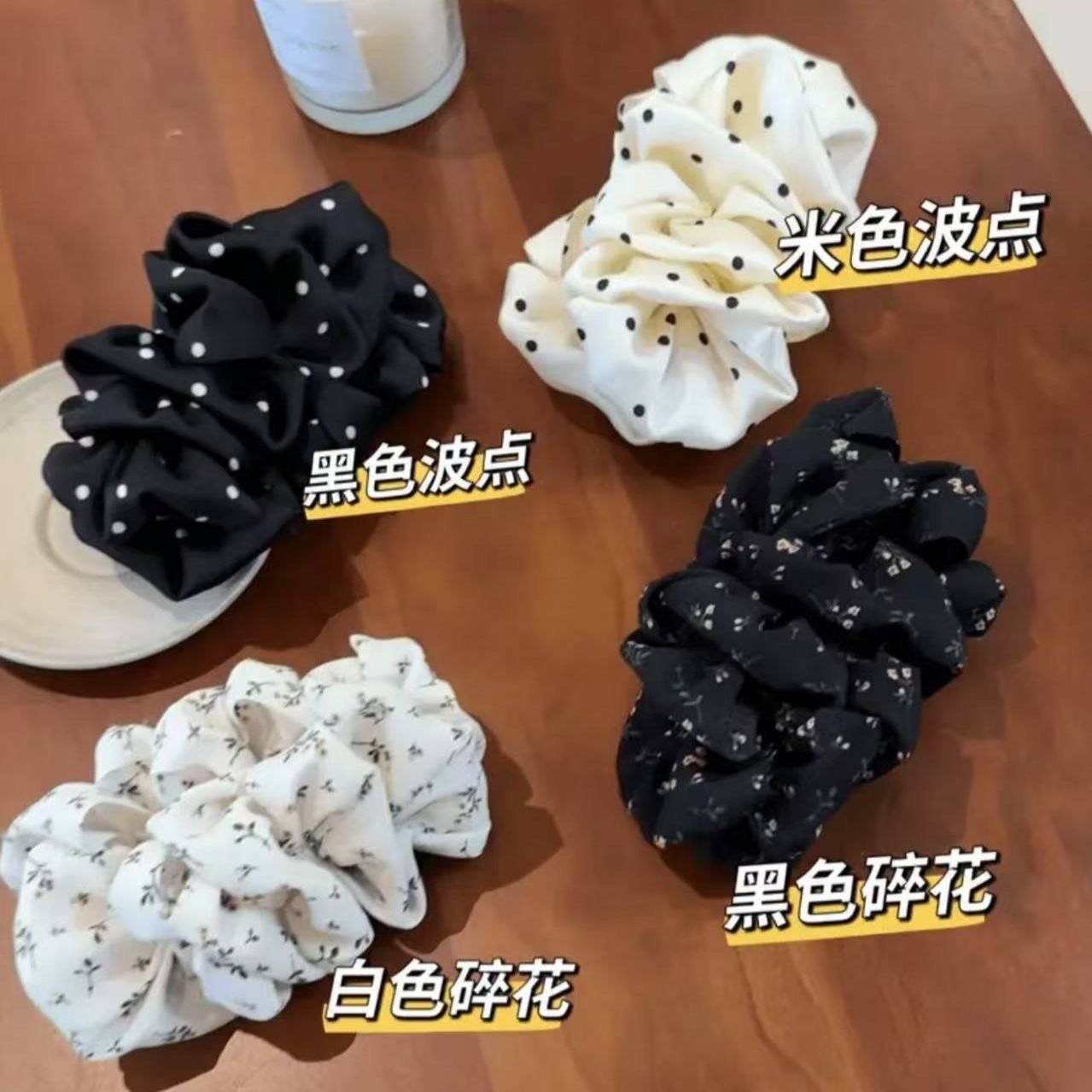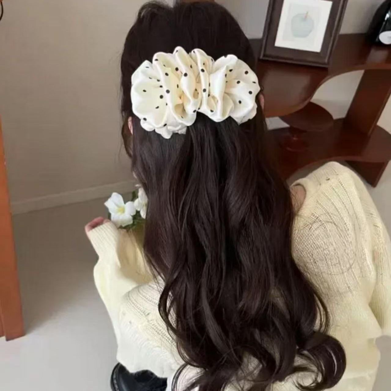 이른 봄 새로운 주름 구름 버블 웨이브 도트 헤어핀 꽃 달콤한 소녀 분위기 바나나 클립 거대한 헤어 디스플레이 헤어 액세서리스토어 가기