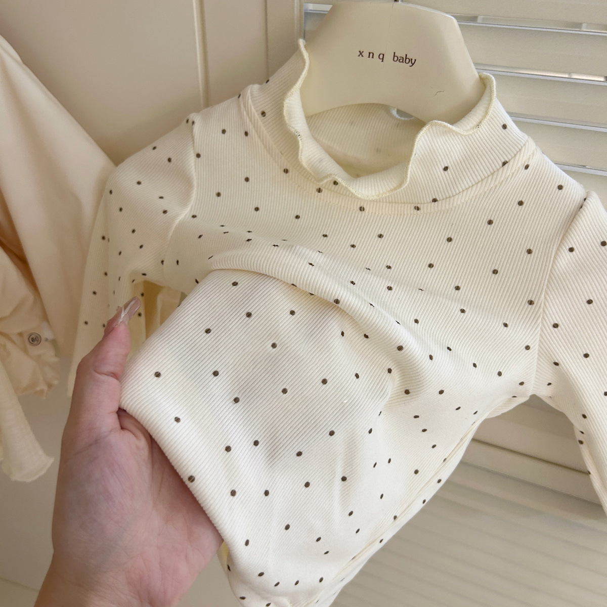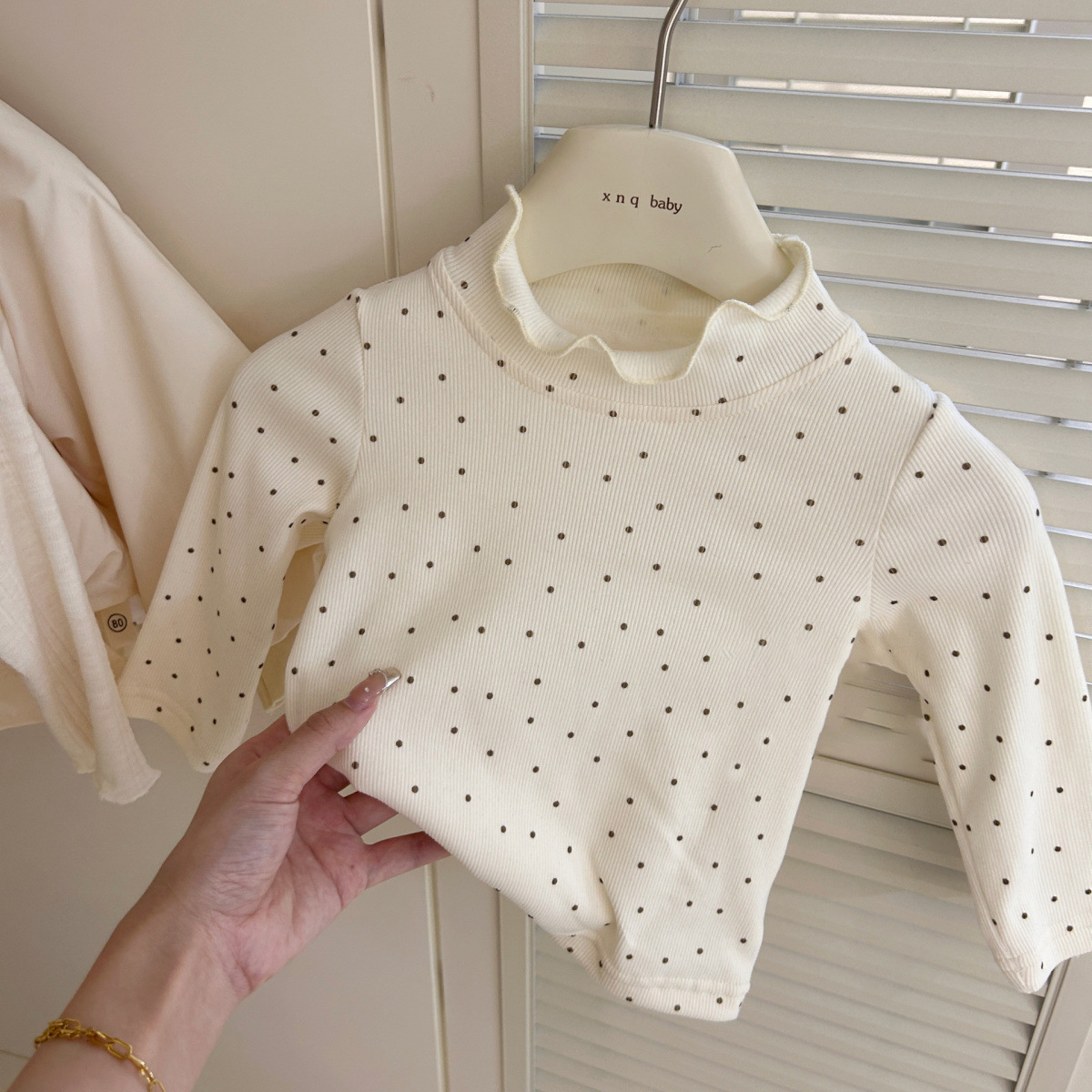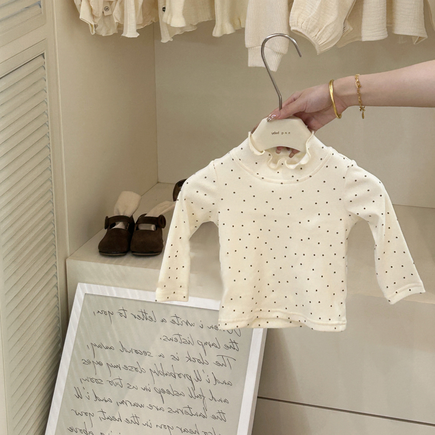 소녀들의 봄 새 면베이스 옷 한국식 아기의 절반 높은 칼라 극지 에지베이스 셔츠 면 인테리어