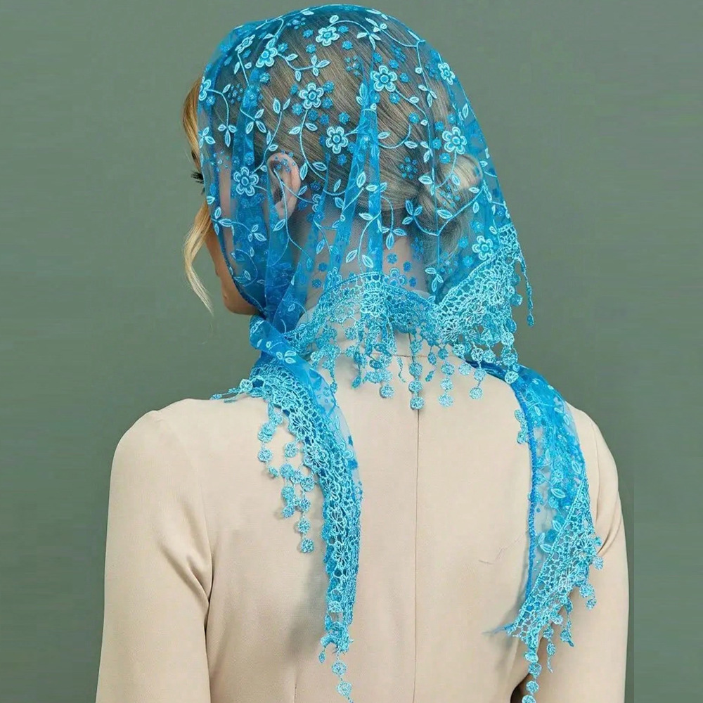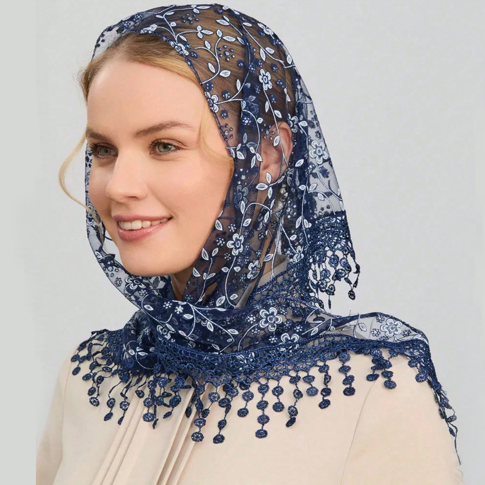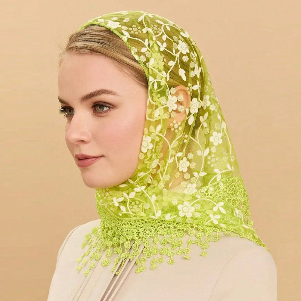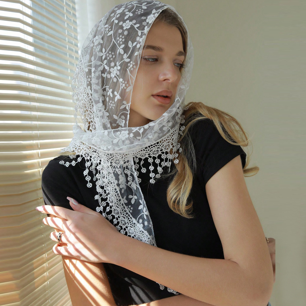국경 간 레이스 터번 꽃 빈 통기성 단색 여성 삼각형 스카프 Xiyin Amazon TEMU 실크 스카프스토어 가기