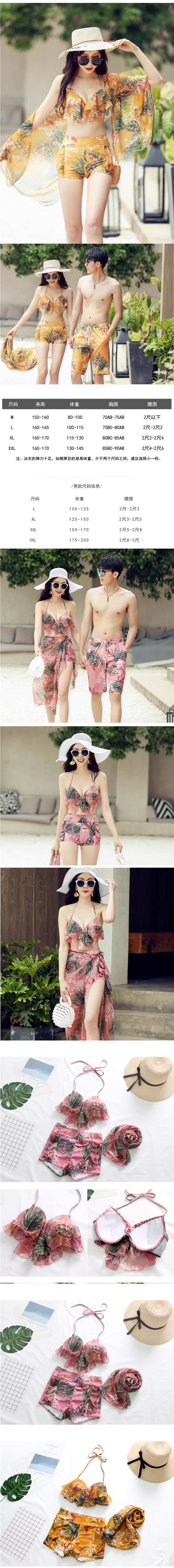 비키니 수영복 여성 3 피스 세트 2025 새로운 핫 스타일 슬리밍 보수적 인 남성 수영복 커플 온천 수영복스토어 가기