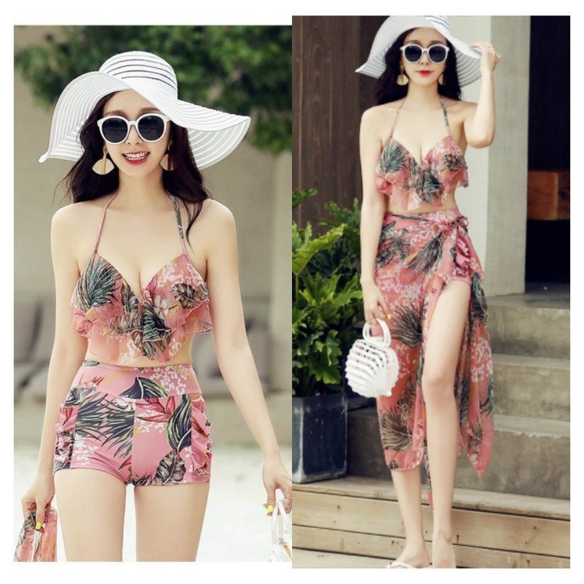 비키니 수영복 여성 3 피스 세트 2025 새로운 핫 스타일 슬리밍 보수적 인 남성 수영복 커플 온천 수영복