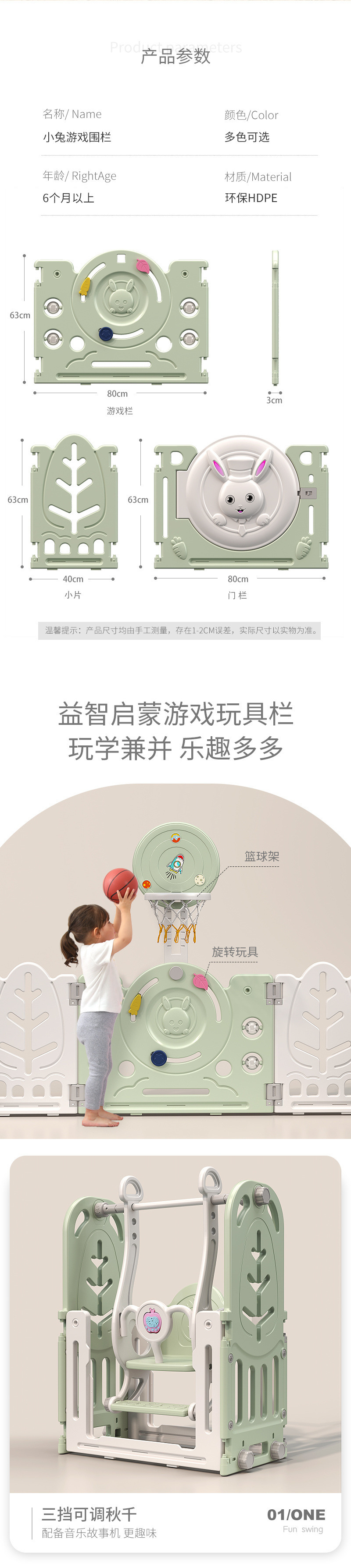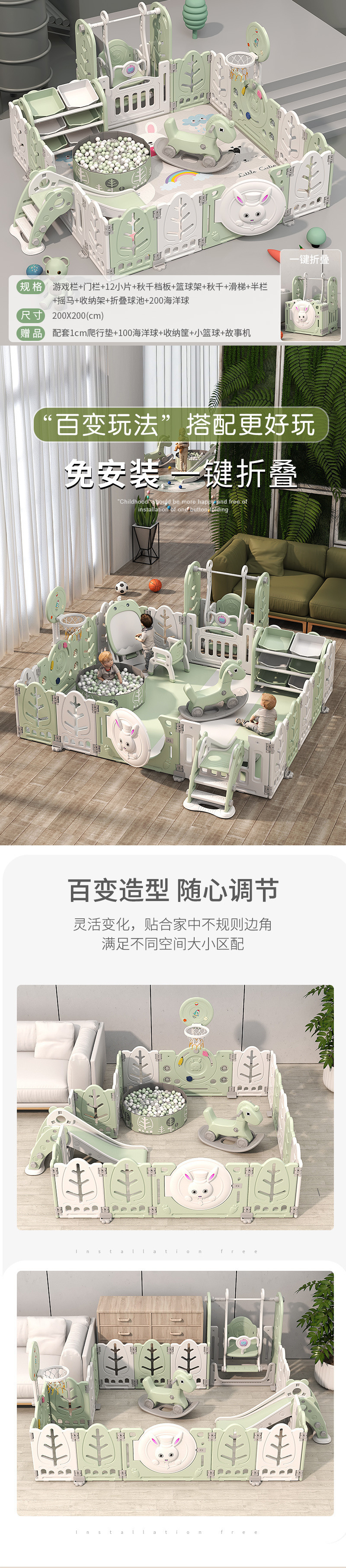 • 200*240 펜스 전체 세트에는 4cm 바닥 매트가 함께 제공됩니다.
