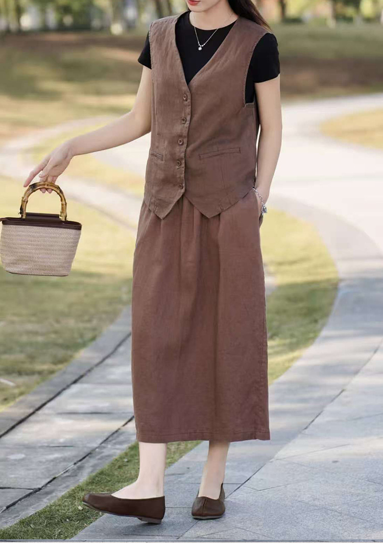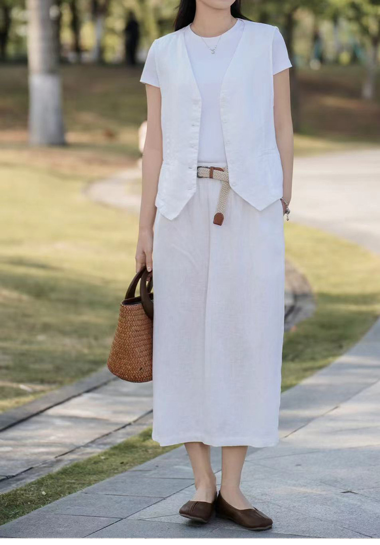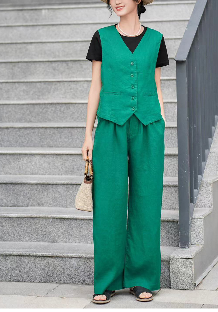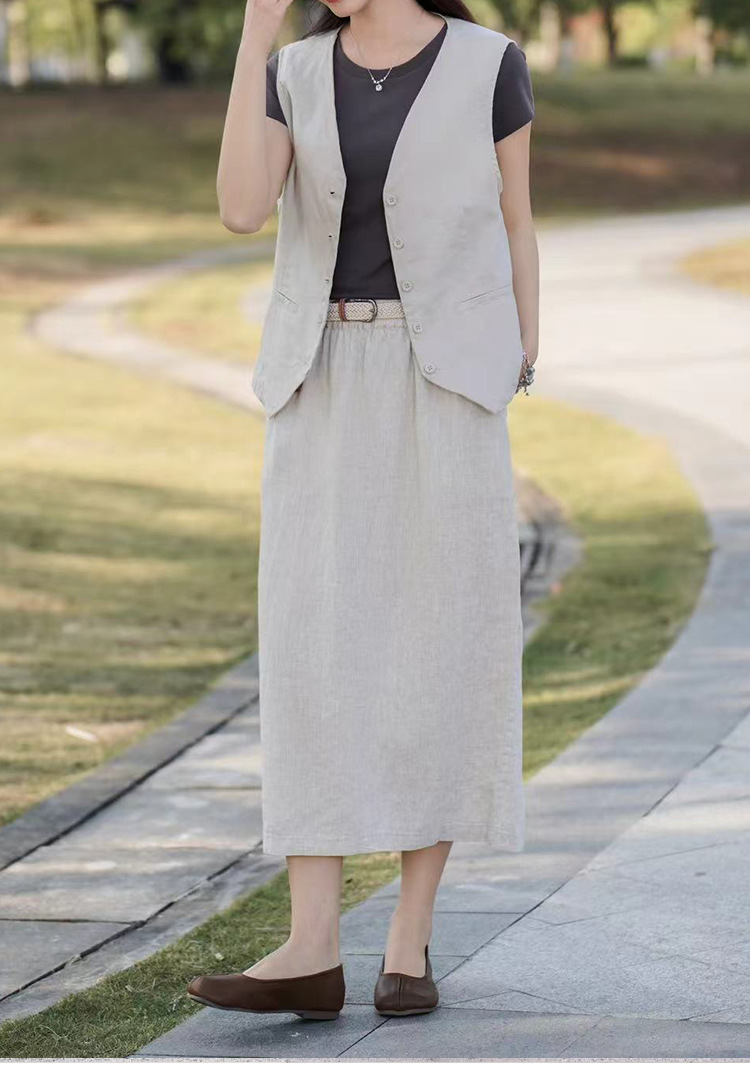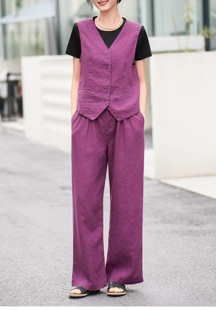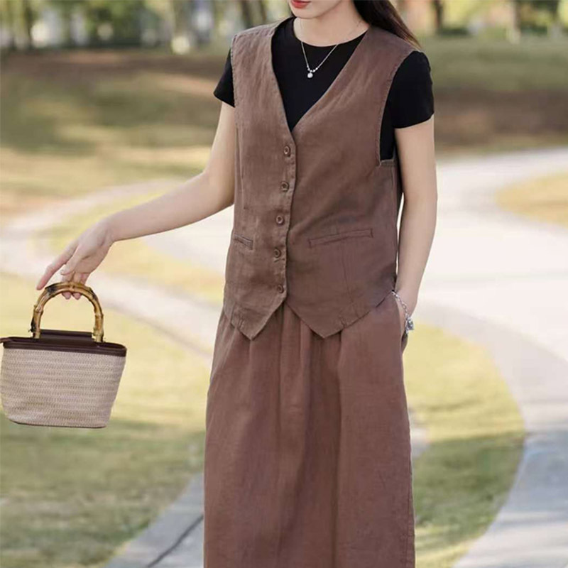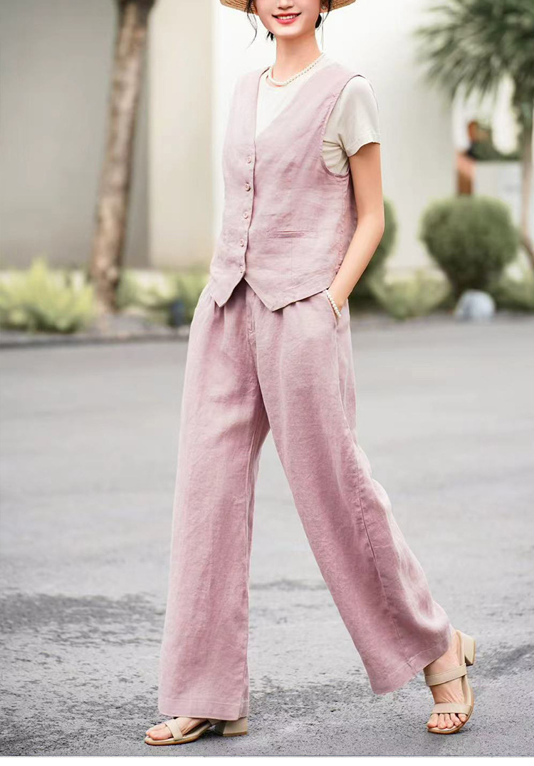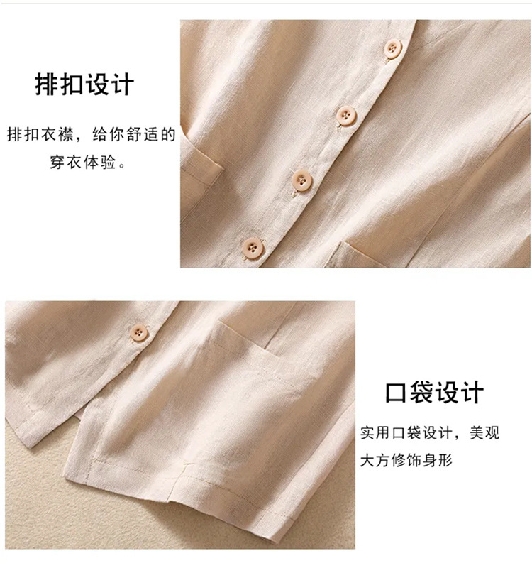 亚麻马甲,无领单排扣设计,两侧小口袋可以放零用东西,简约大气,透气吸湿又时尚,搭配亚麻裤子套装穿着,轻松穿出休闲文艺风,可以点击上面亚麻裤选择相应颜色搭配一套,马甲和裤子的颜色一样无差别,都是同一批面料做的。