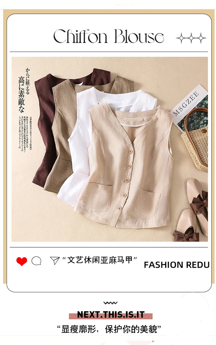 새로운 중국 스타일 여성을위한 리넨 조끼 여름 얇은 고급 2025 여성을위한 새로운 겉옷 유행 양복 조끼스토어 가기