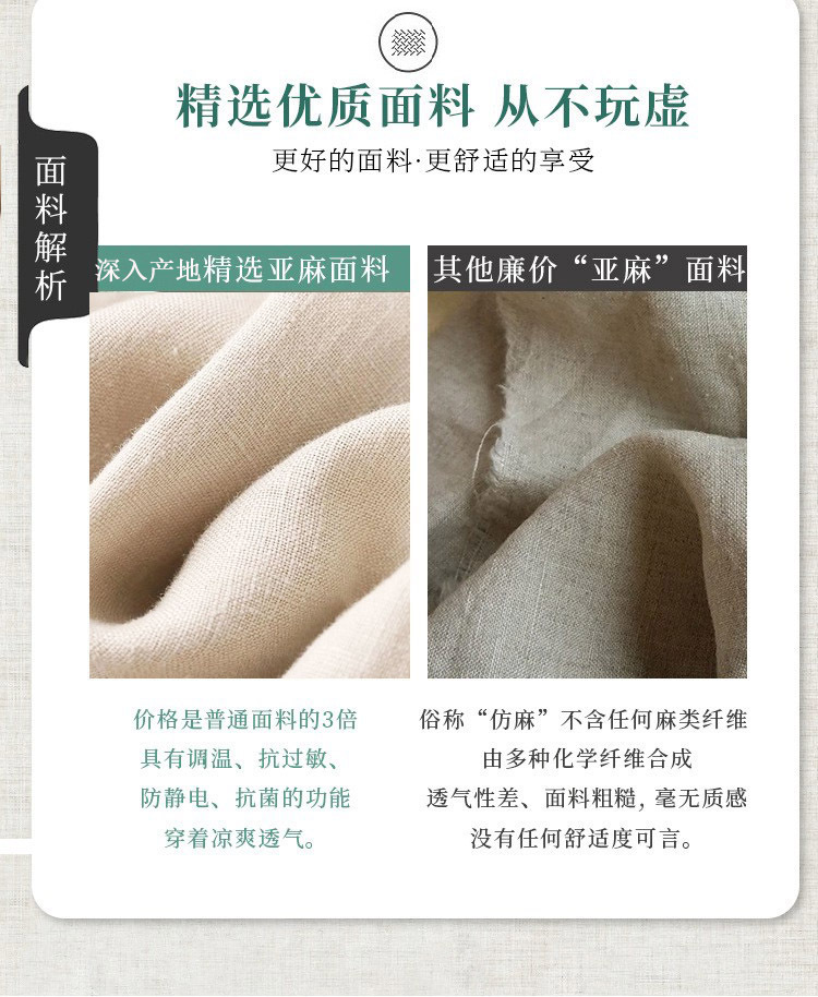 亚麻材质质朴有种返璞归真的天然肌理感和文艺范。