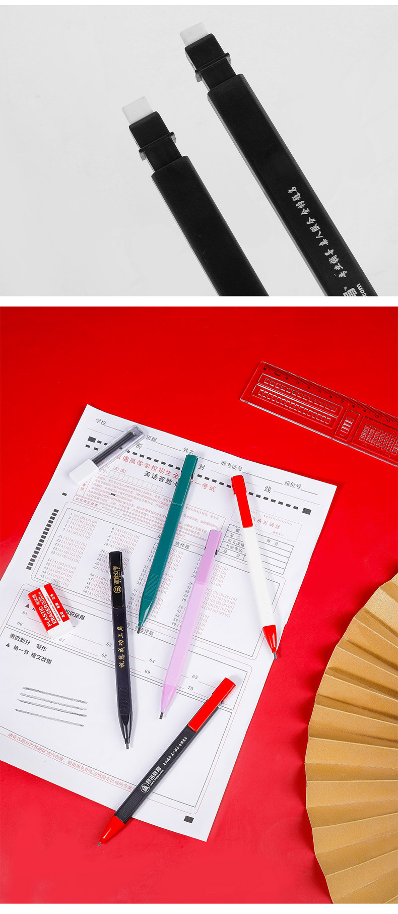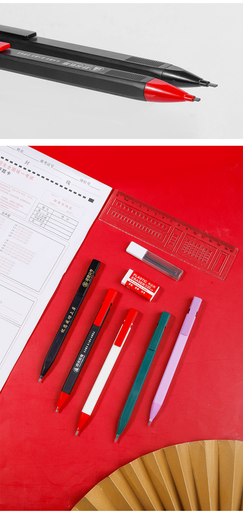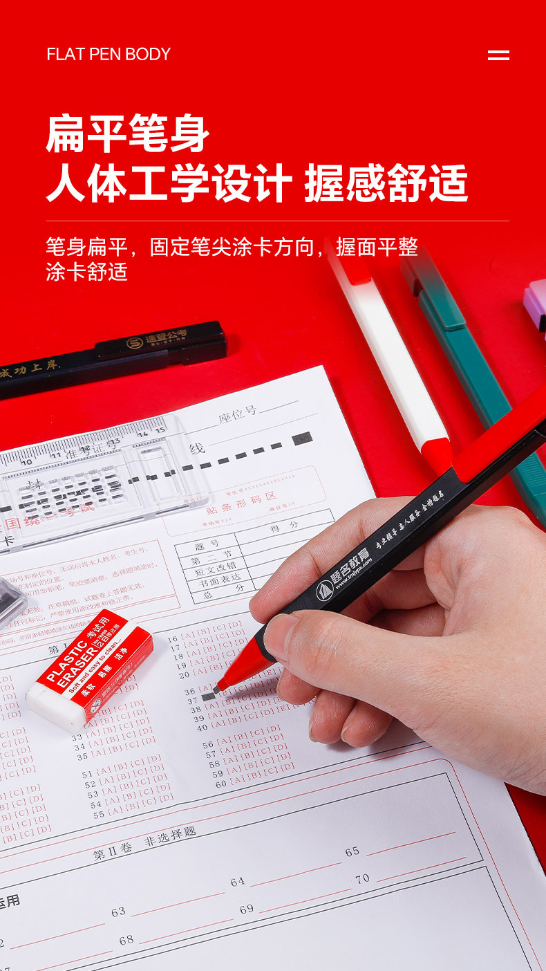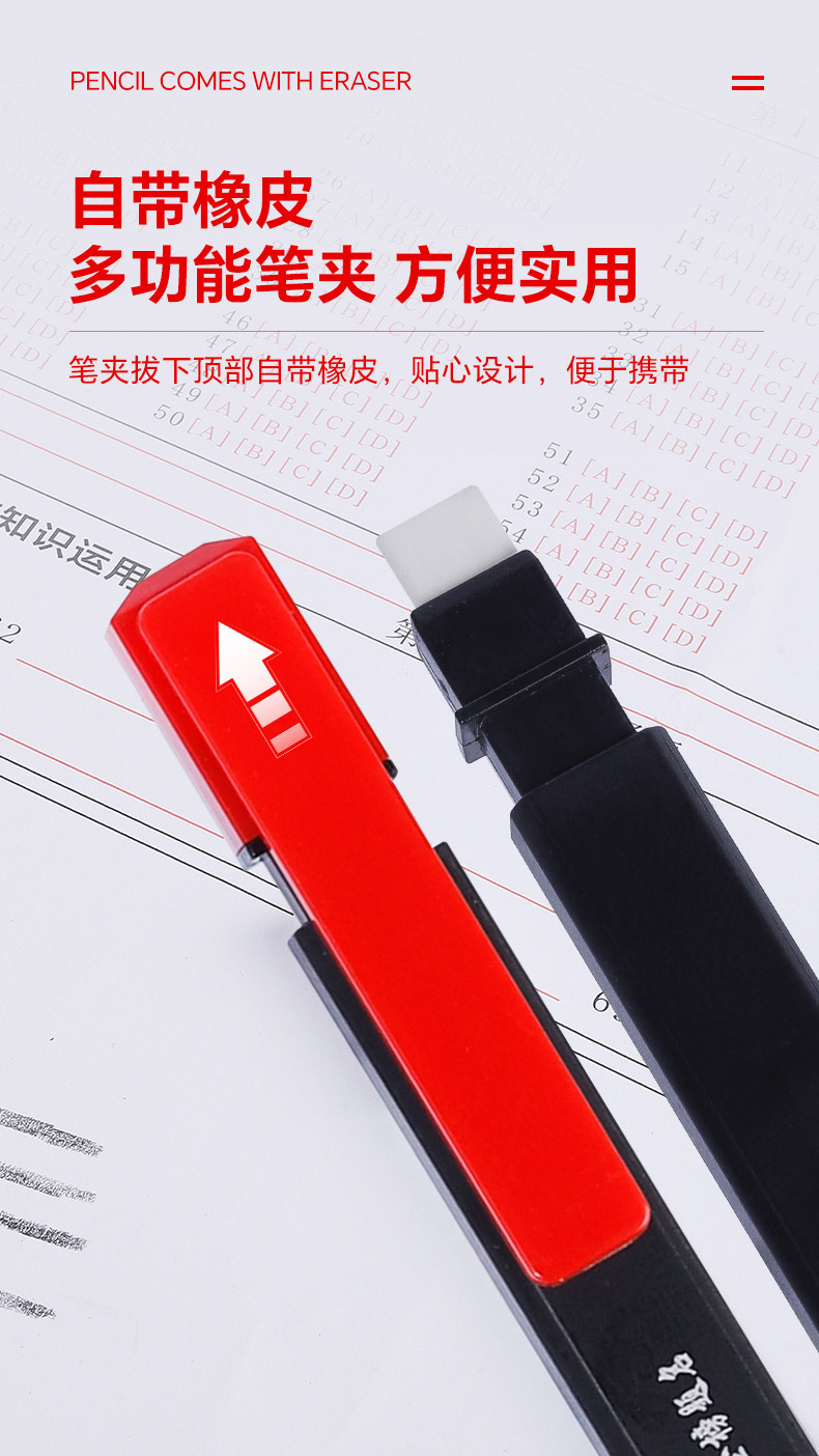 • 지우개와 고정 색상 F가 포함된 새로운 시험 연필