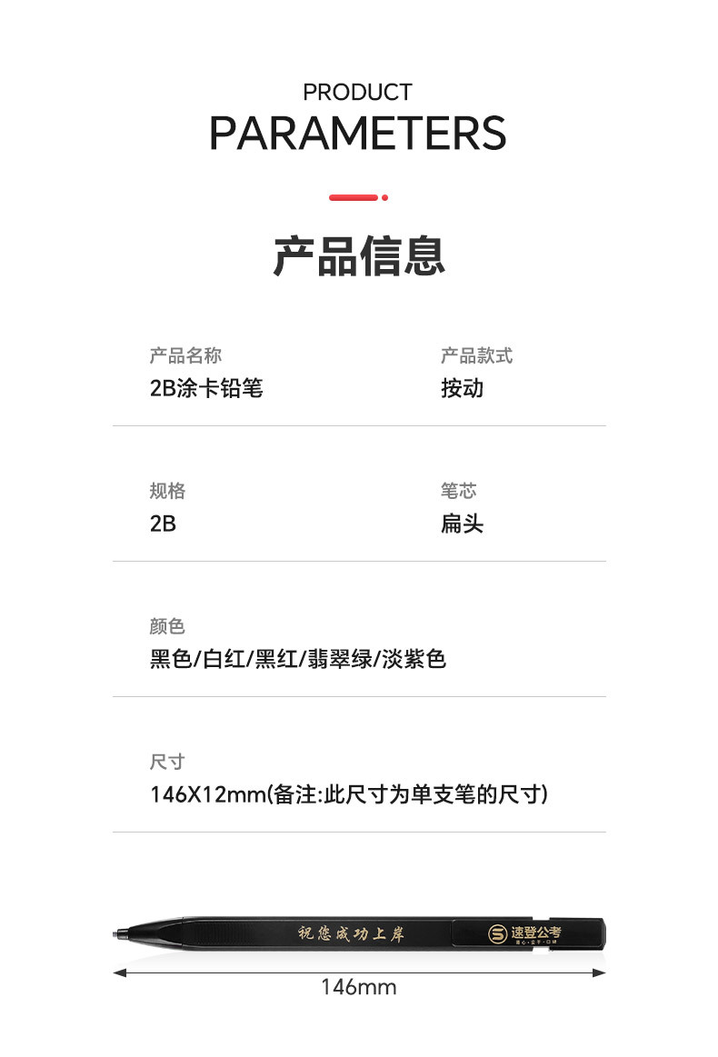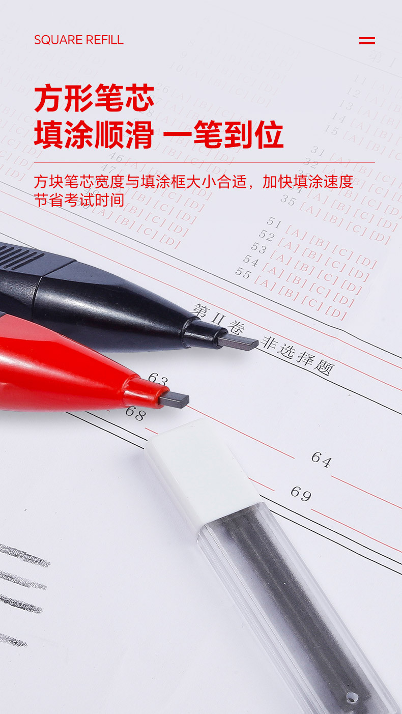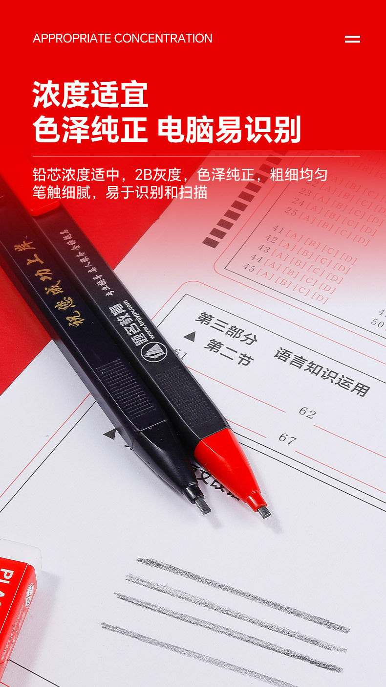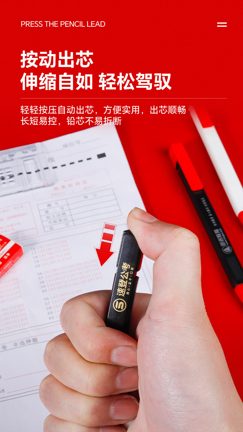 • 지우개와 고정 색상 F가 포함된 새로운 시험 연필