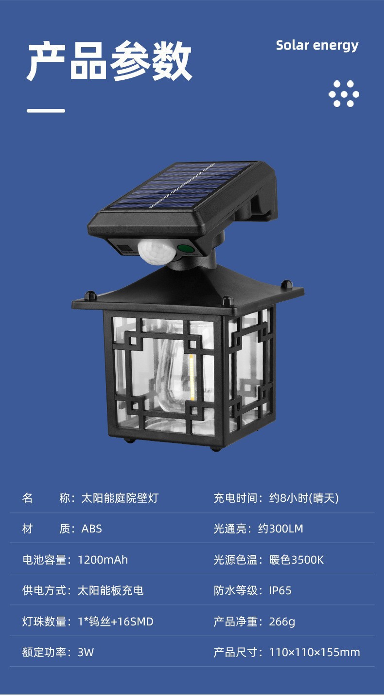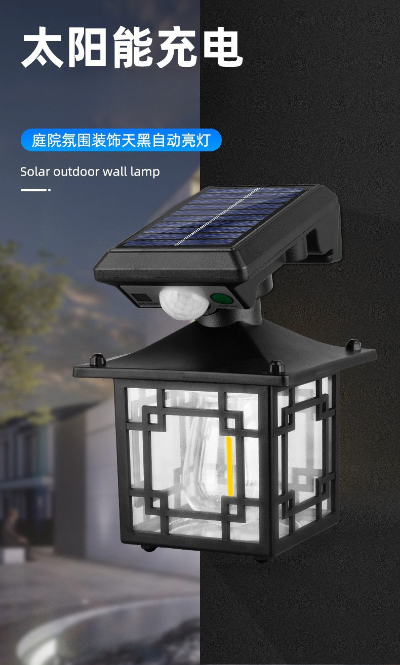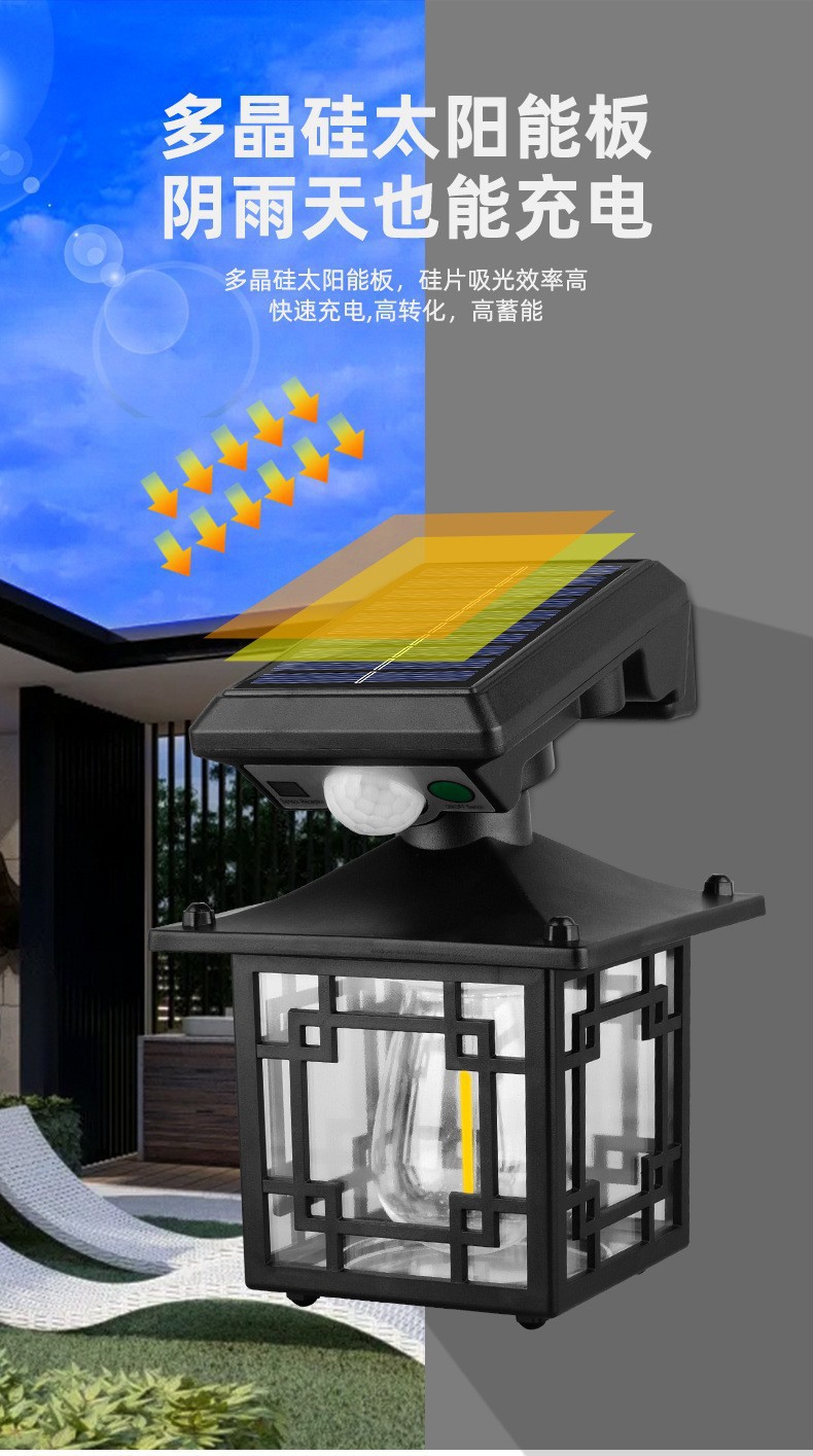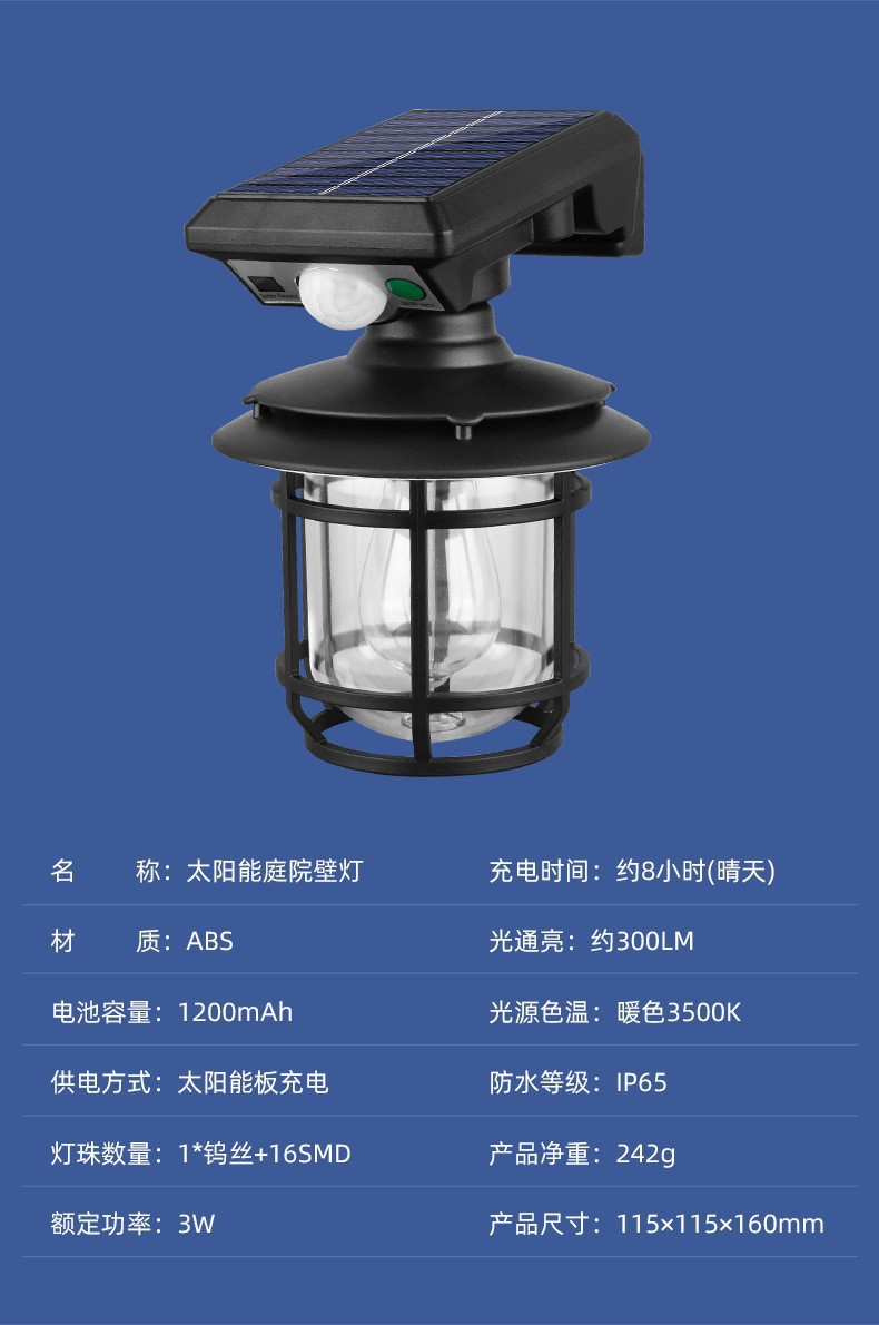 태양 복고풍 벽 램프 인체 유도 원격 제어 조명 텅스텐 램프 홈 야외 방수 안뜰 조경 램프