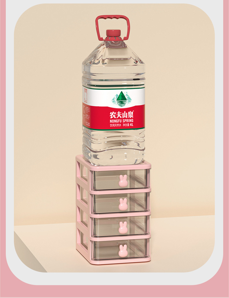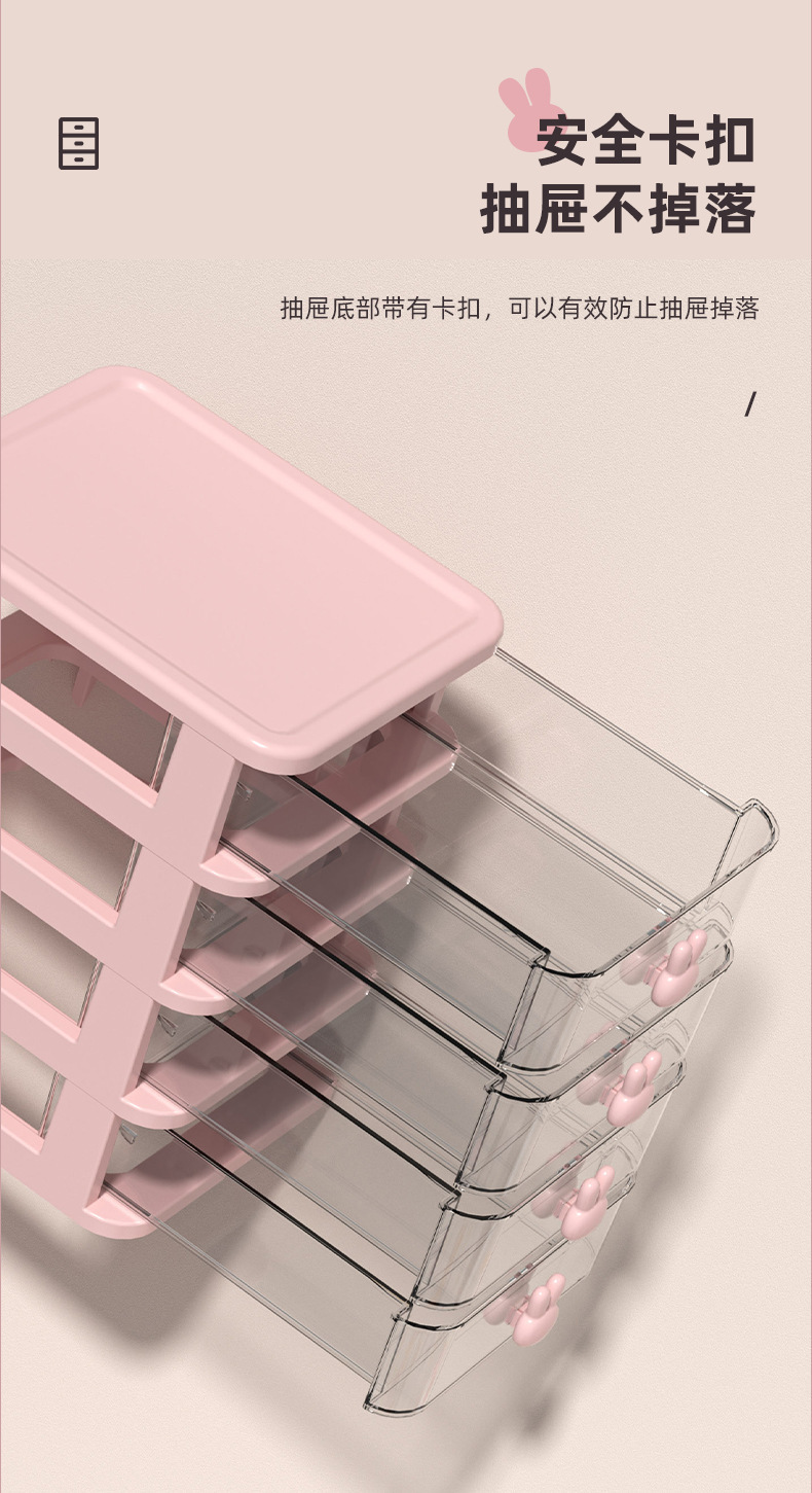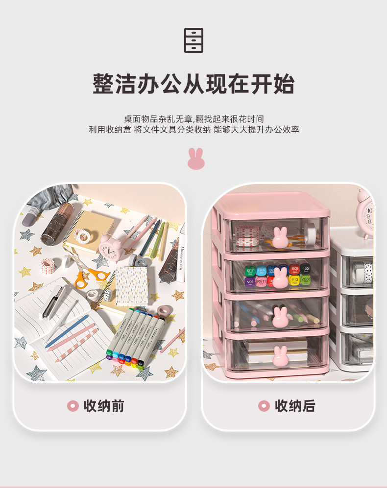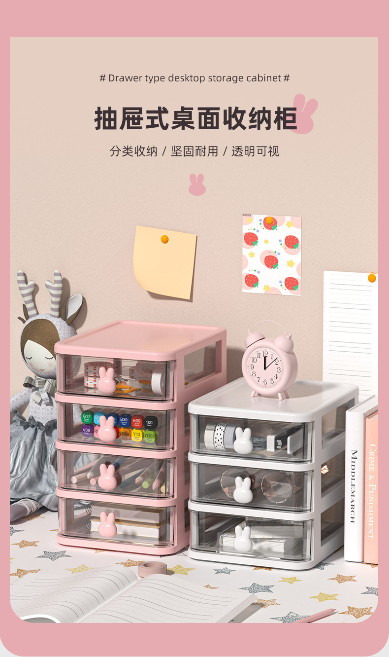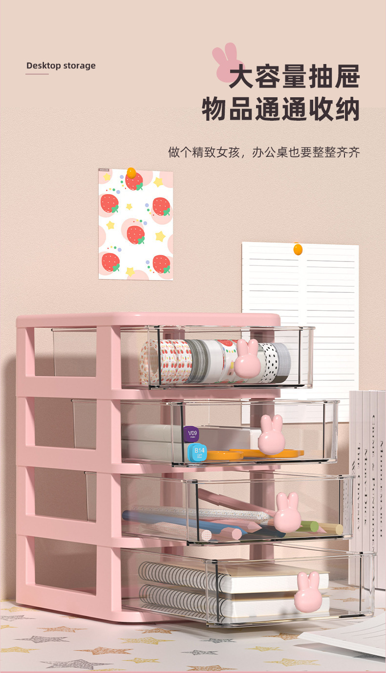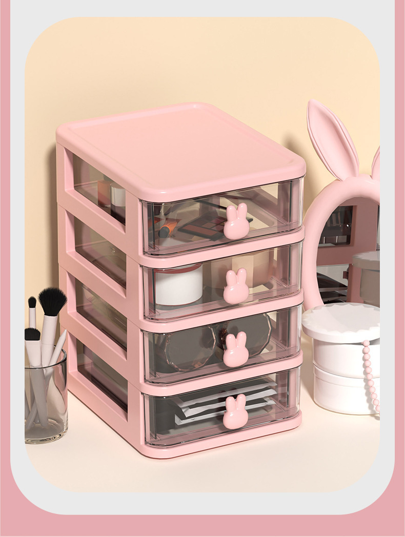 만화 데스크탑 수납함 투명 서랍형 책상 플라스틱 미니 수납함 토끼 문구류 수납함