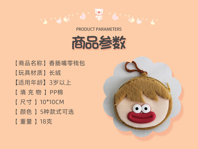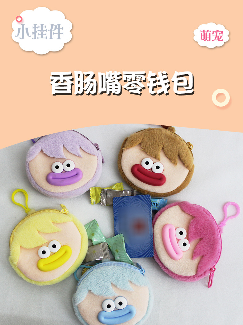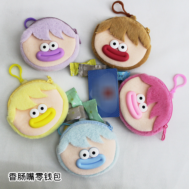 재미있는 소시지 입 봉제 동전 지갑 간단한 이어폰 가방 만화 어린이 작은 지갑 키 체인 학교 가방 교수형 장식품스토어 가기