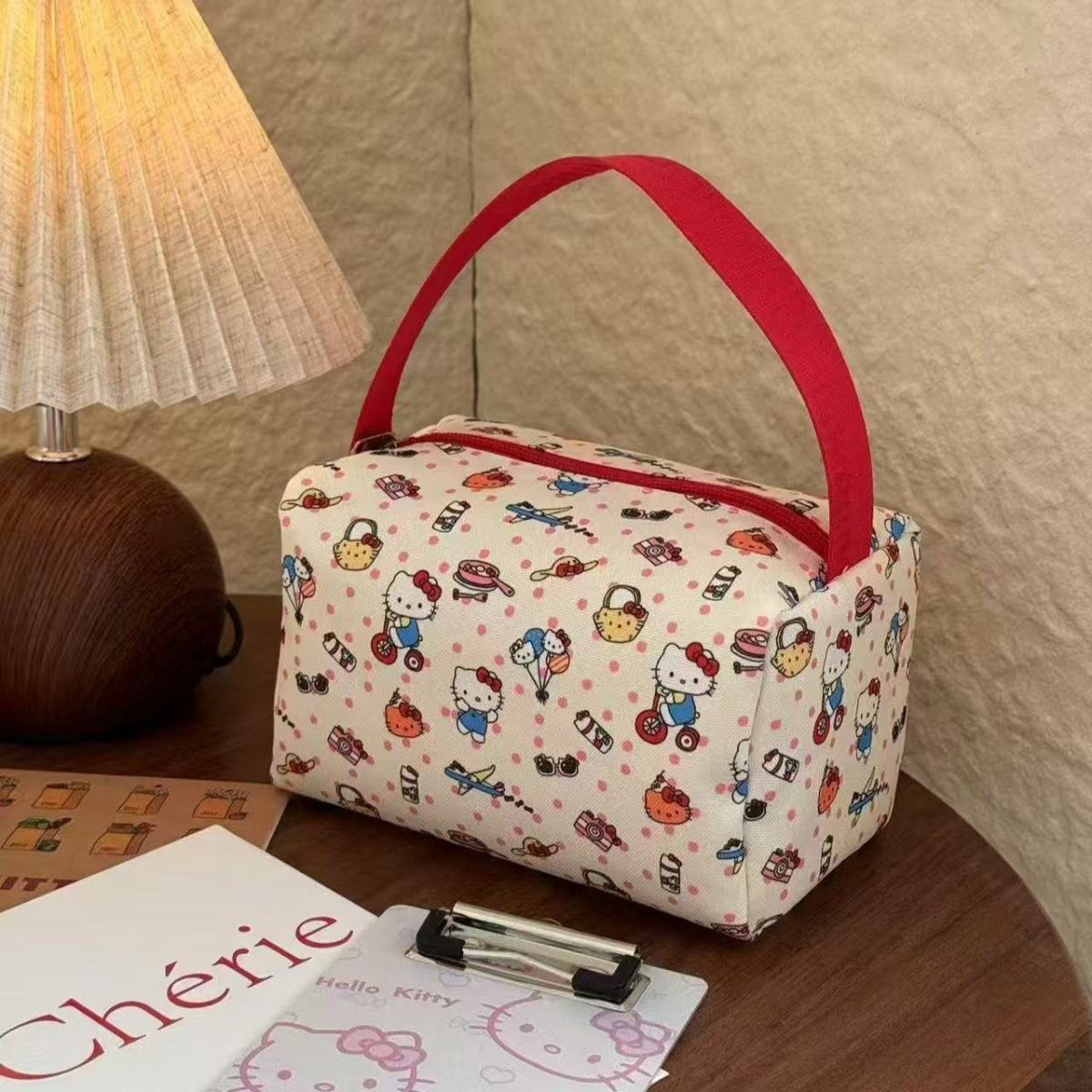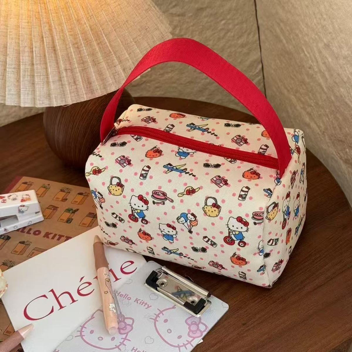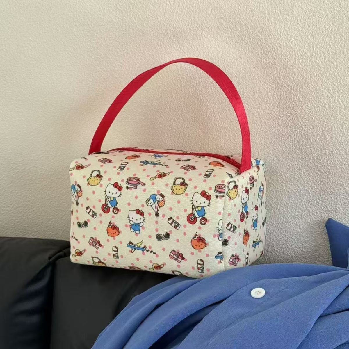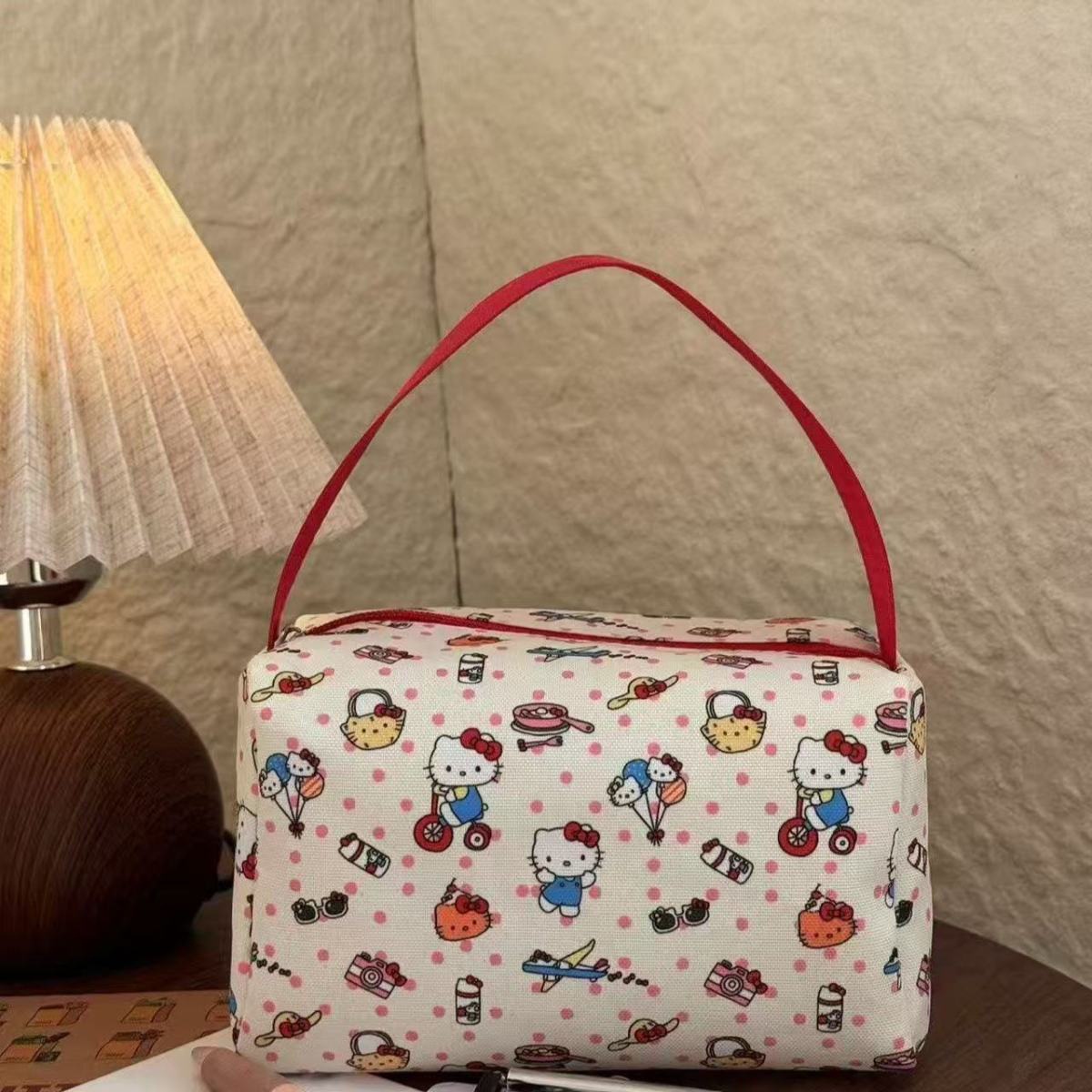 높은 가치 만화 휴대용 메이크업 세탁 가방 여성의 kt 고양이 여행 보관 가방 간단한 대용량 3 차원 핸드백스토어 가기