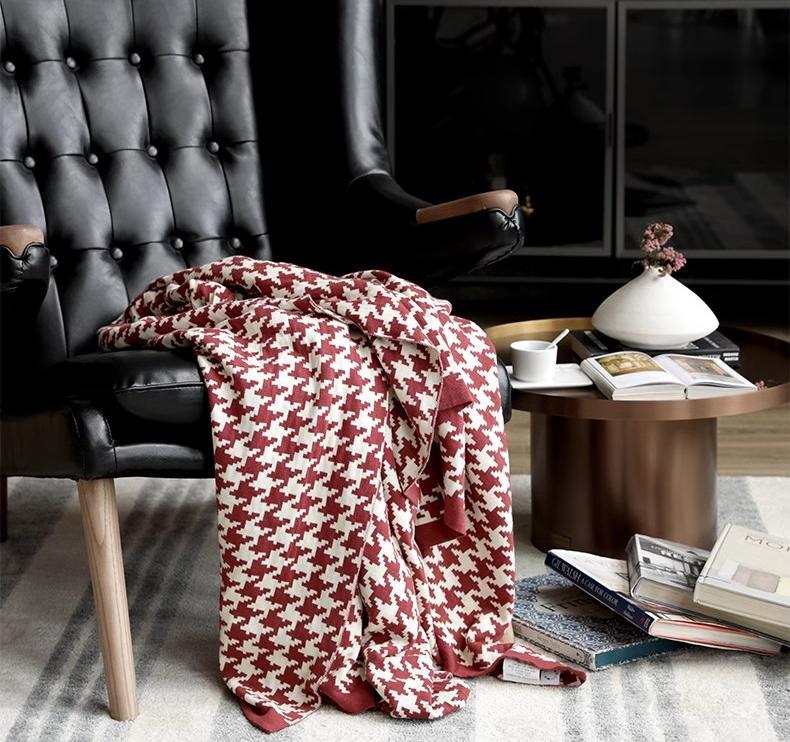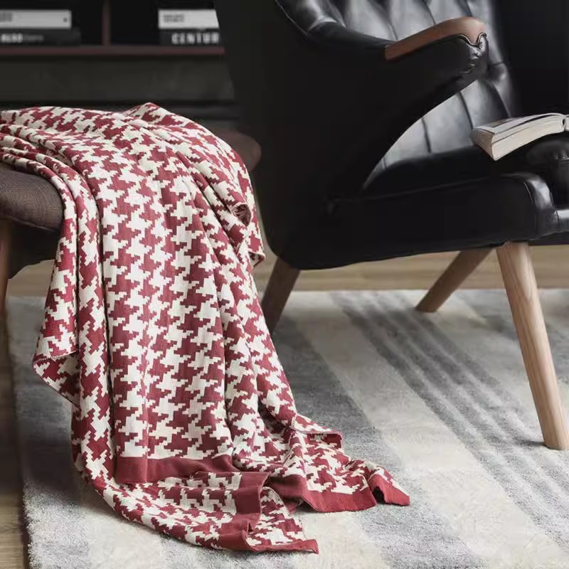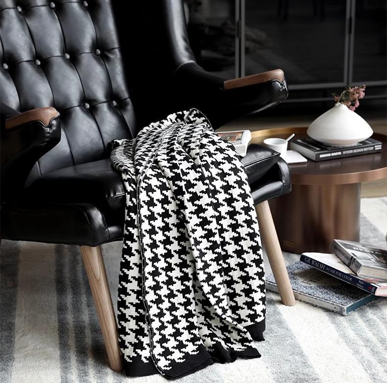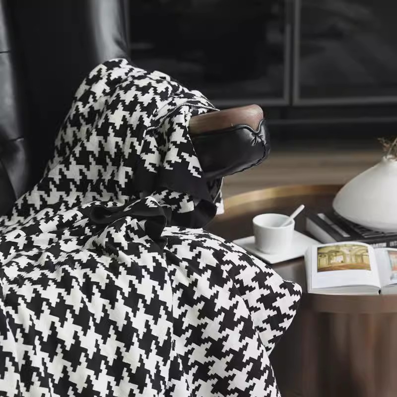 국경 간 간단한 흑백 물떼새 격자 소파 담요 니트 담요 사무실 소파 낮잠 담요 북유럽 스타일 작은 담요스토어 가기