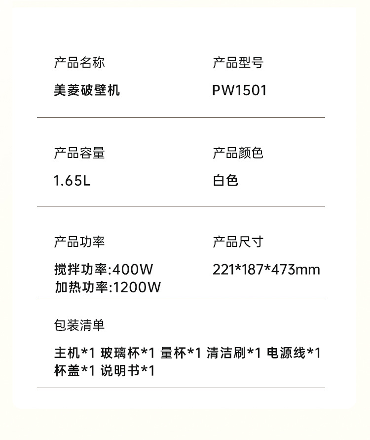 MeiLing 벽 파괴 기계 MB-PW1501 다기능 주서기 두유 기계 원 클릭 자체 청소스토어 가기
