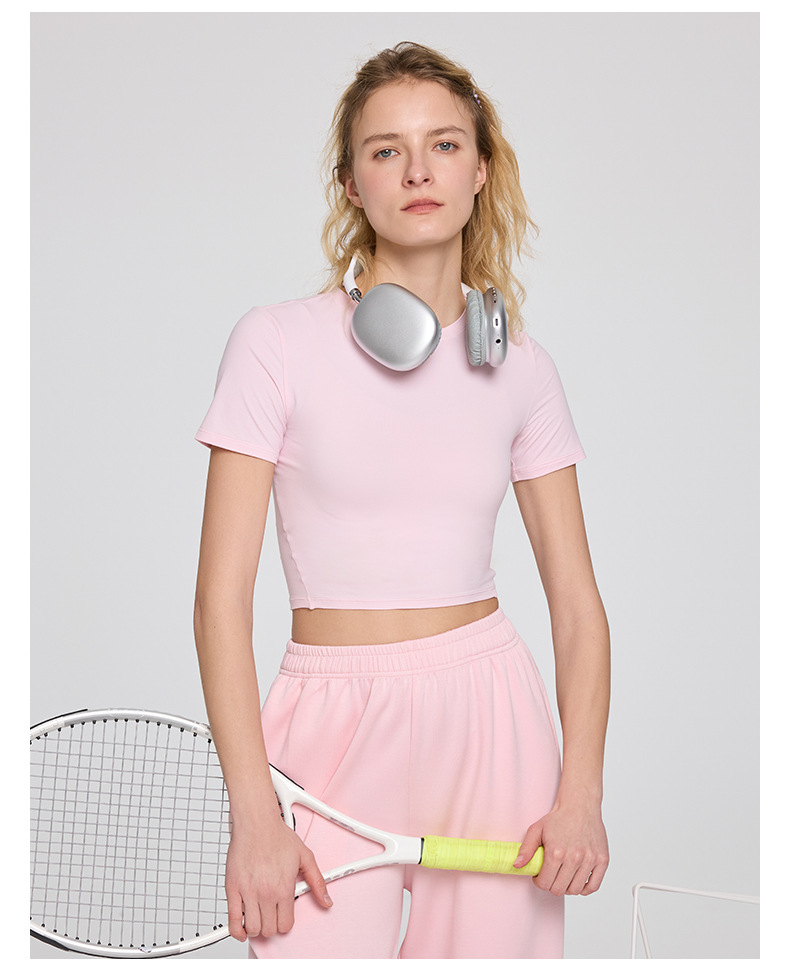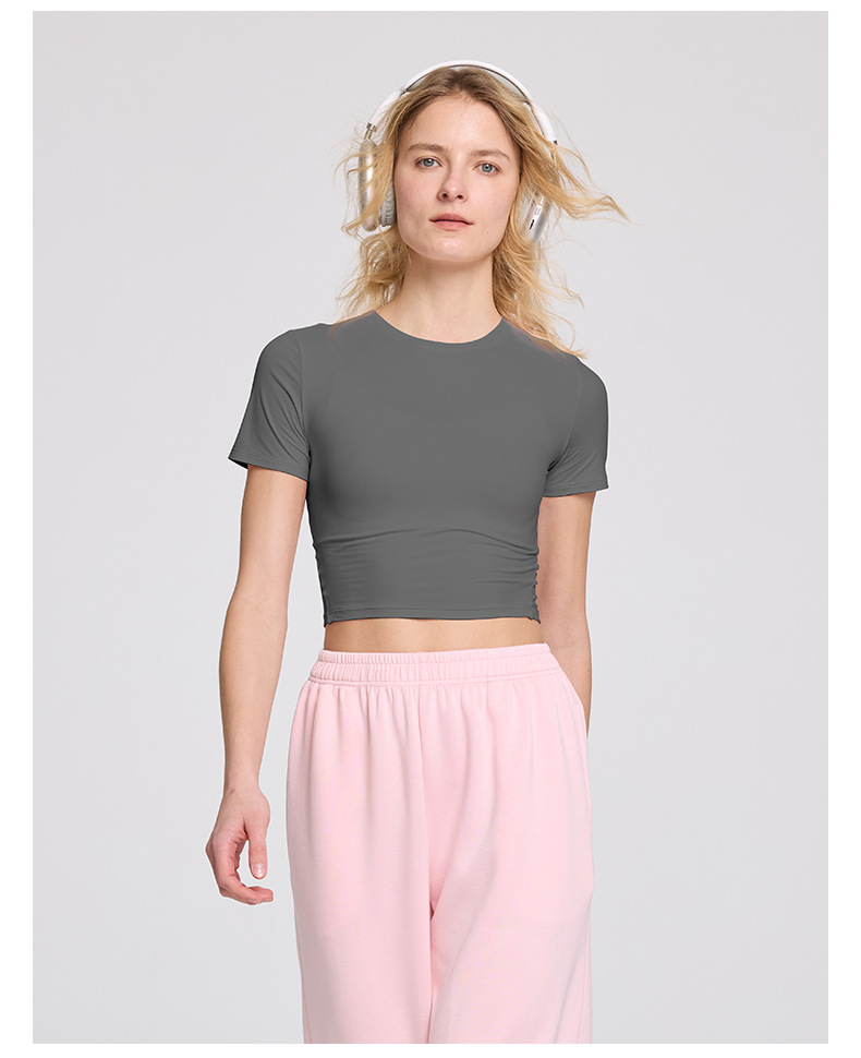 봄 여름 신상 여성용 요가복, 고탄력 바디쉐이핑 슬림핏 반팔 필라테스 경량 통기성 스포츠 트레이닝 피트니스복