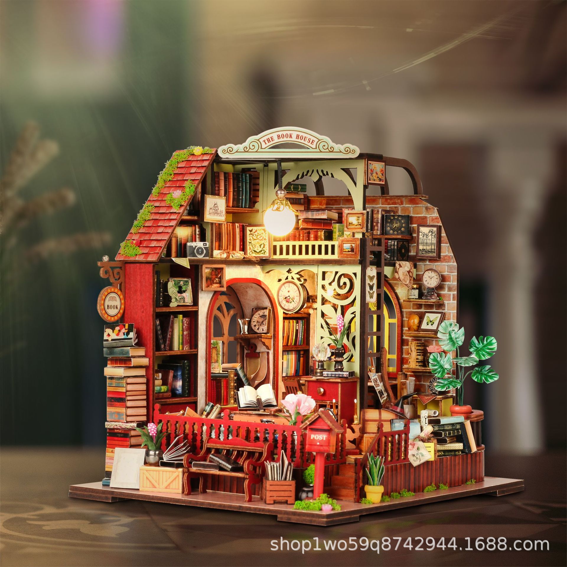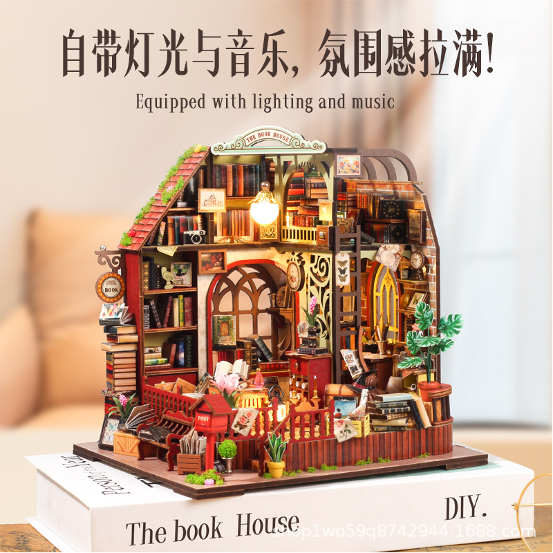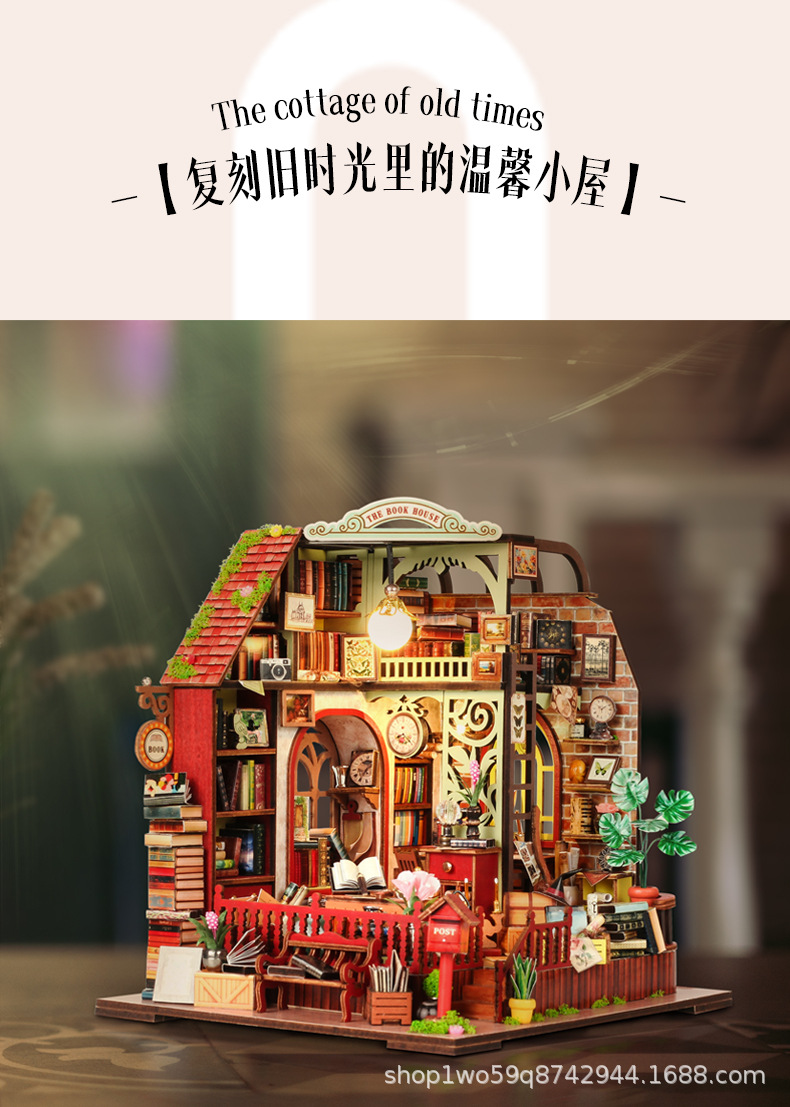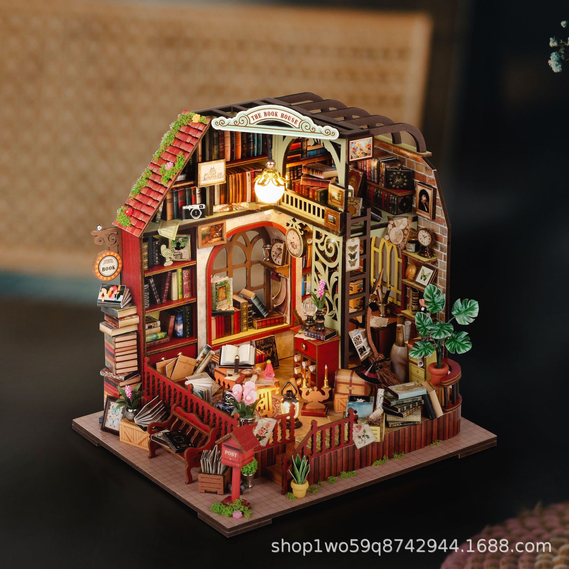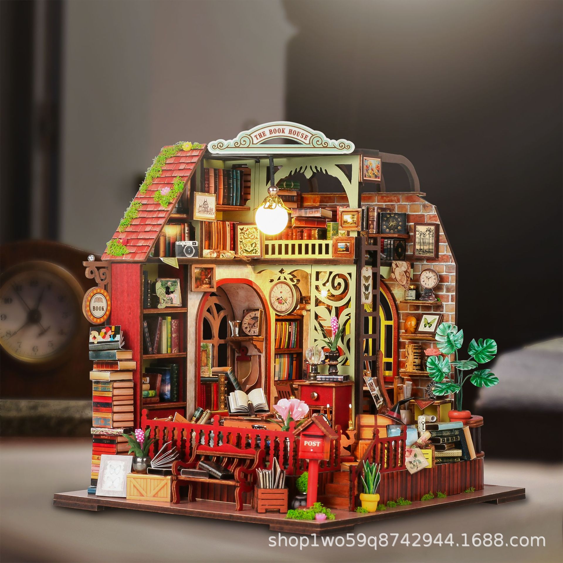 3 차원 퍼즐 장난감 집 diy 오두막 도매 나무 수제 diy 집 조립 소형 모델 diy 오두막스토어 가기