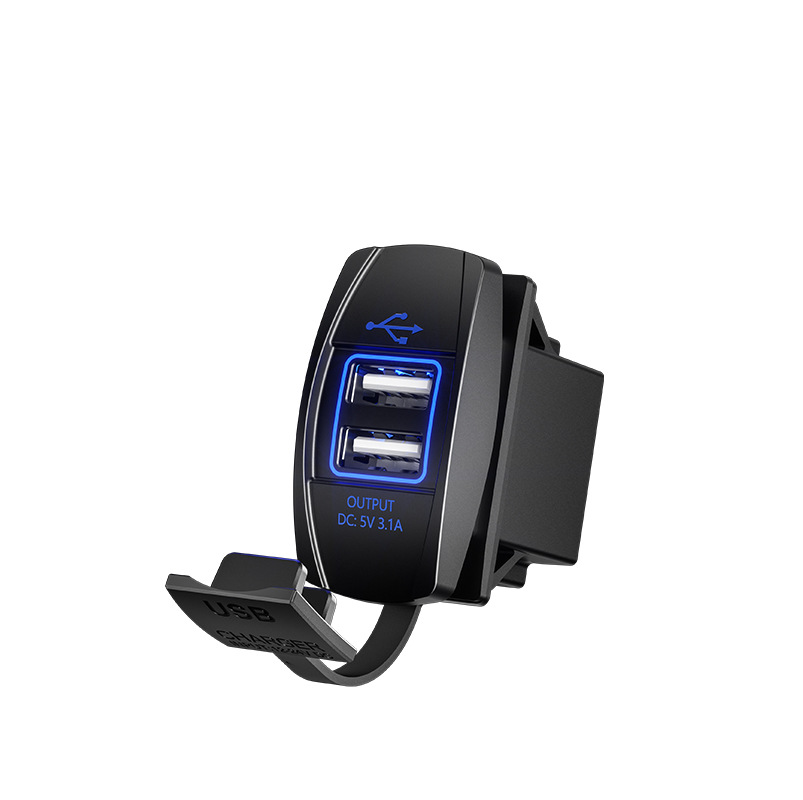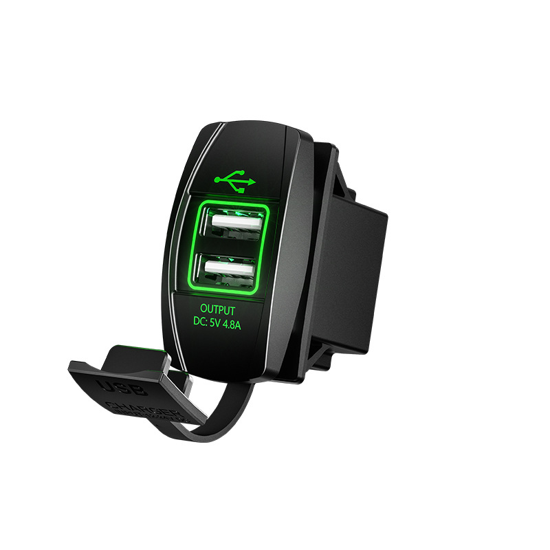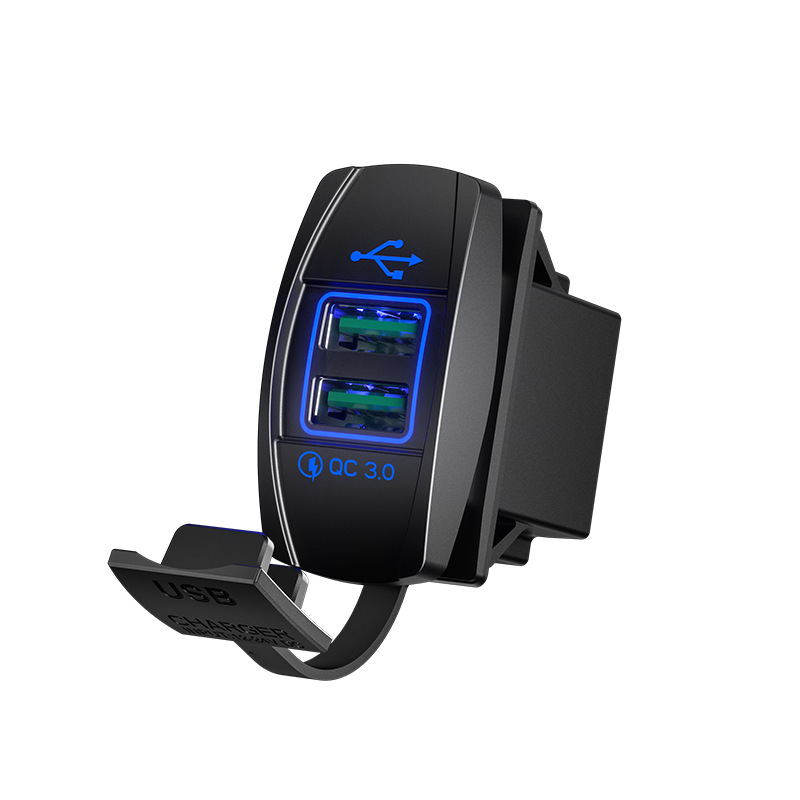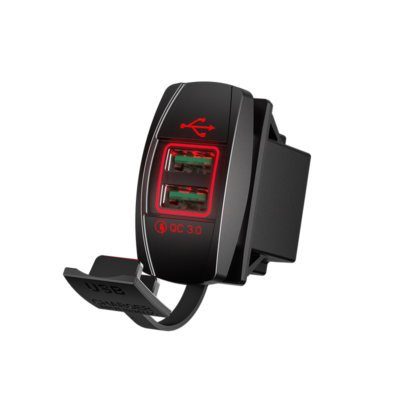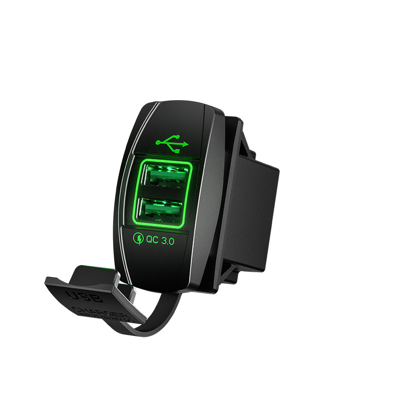 Kaiweige 선박형 USB 충전기 고속 충전 차량용 충전기 사각형 USB 수정 빨간색 파란색 녹색 LED 조명 고속 충전 QC3.0