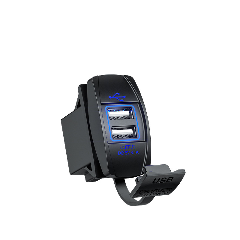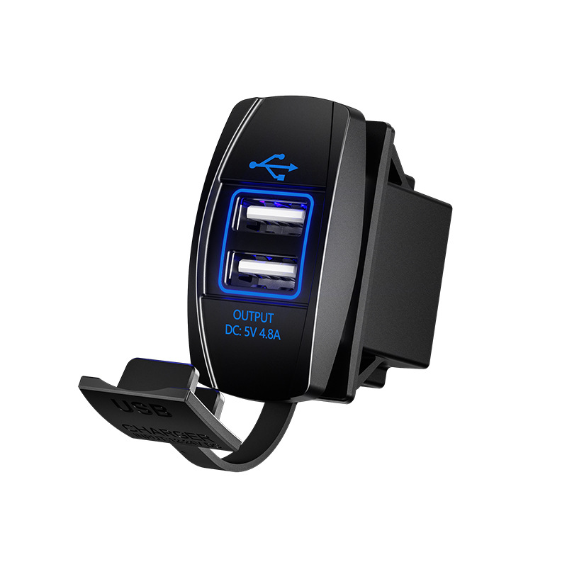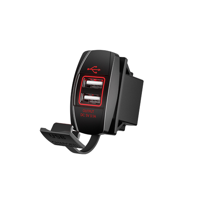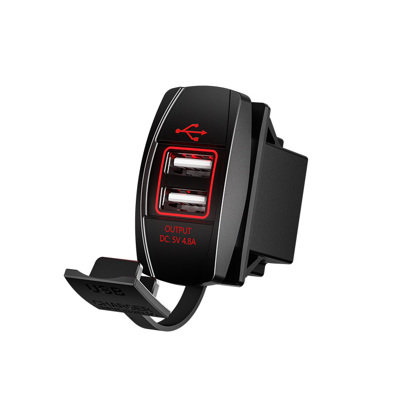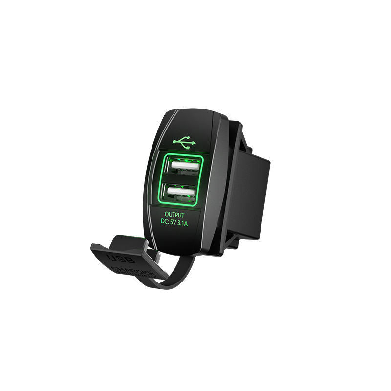 Kaiweige 선박형 USB 충전기 고속 충전 차량용 충전기 사각형 USB 수정 빨간색 파란색 녹색 LED 조명 고속 충전 QC3.0