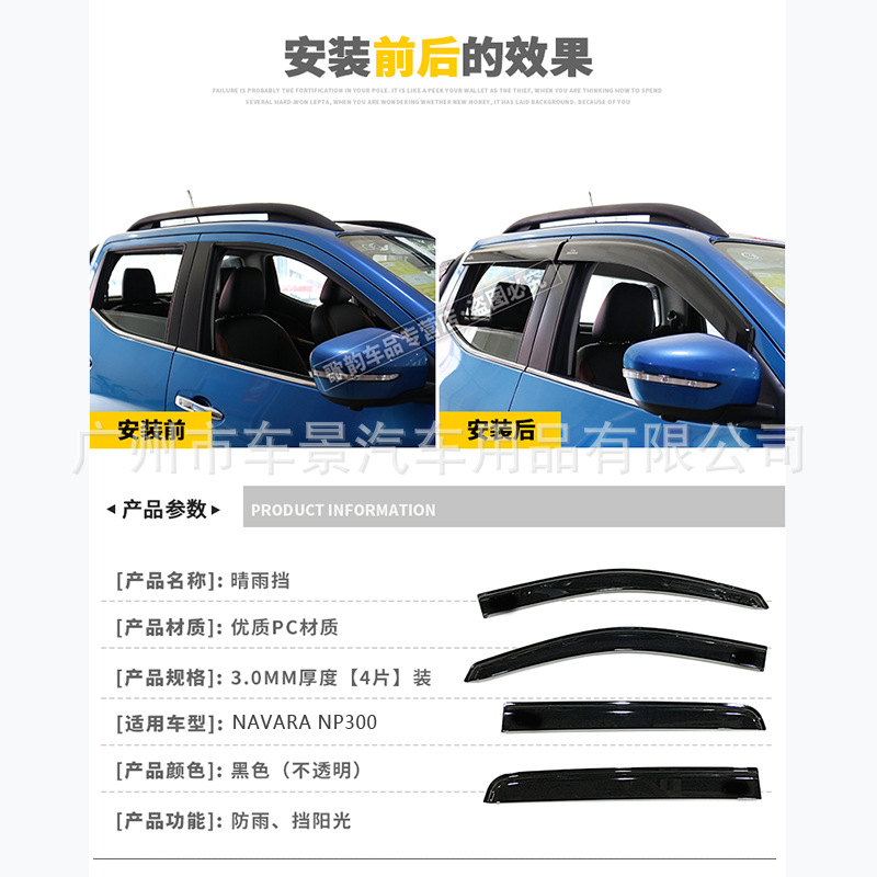 닛산 NISSAN NAVARA Ruiqi 6 사출 성형 ABS 차양 창, 비 또는 빛 차단 창에 적합스토어 가기