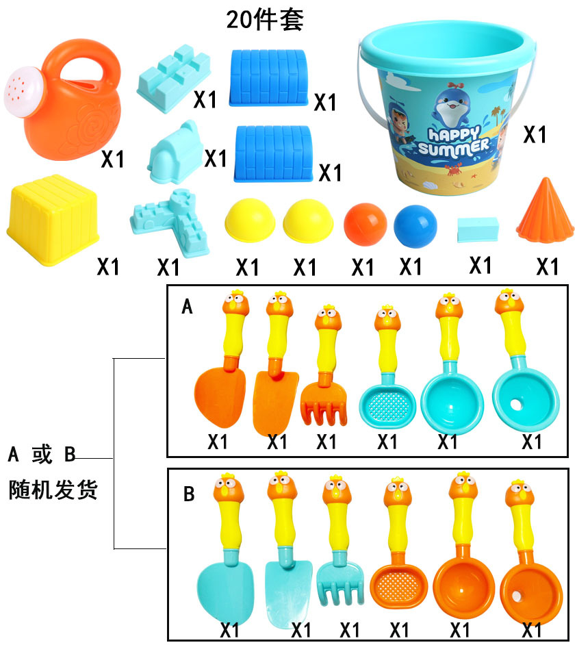 | 【产品名称】: | 20件套城堡沙滩桶 | 【产品包装】: | 网袋+吊卡 |