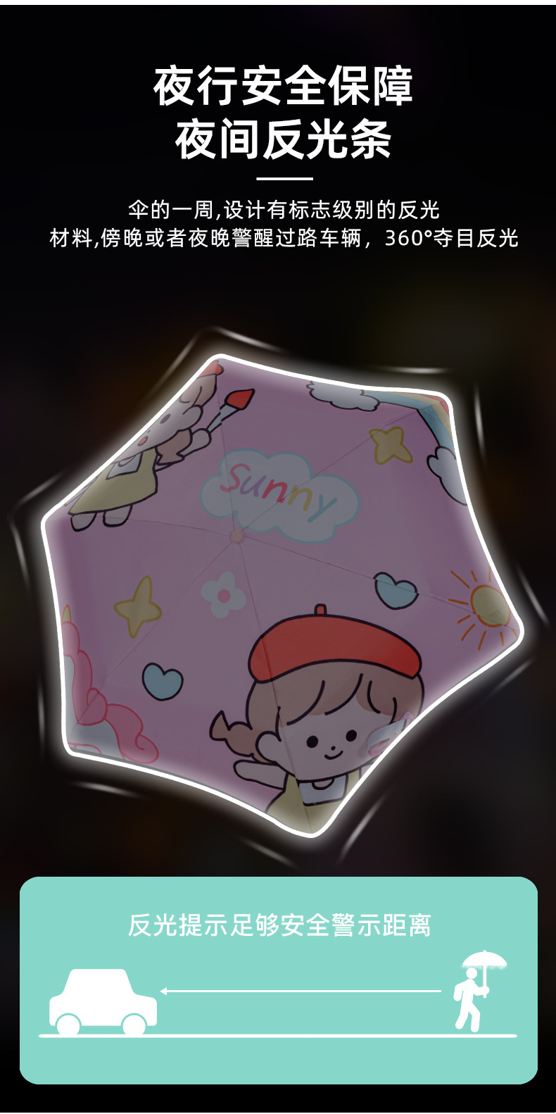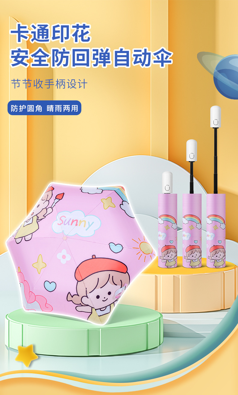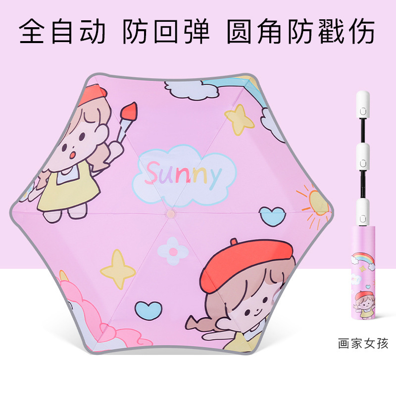 초등학생 여아를 위한 안전한 둥근 모서리 안티 리바운드 어린이용 양산 우산, 남아용 특수 햇빛 우산, 완전 자동스토어 가기