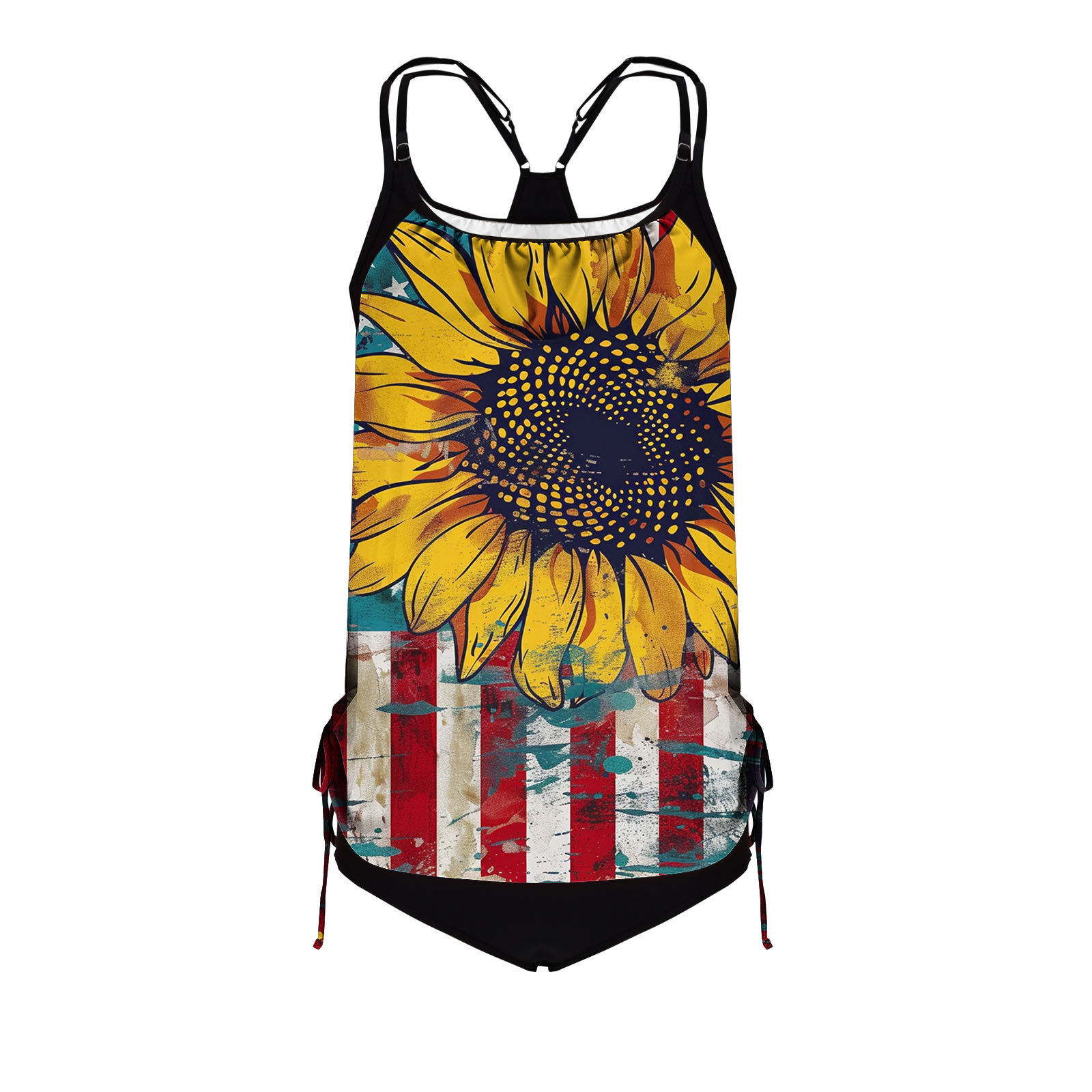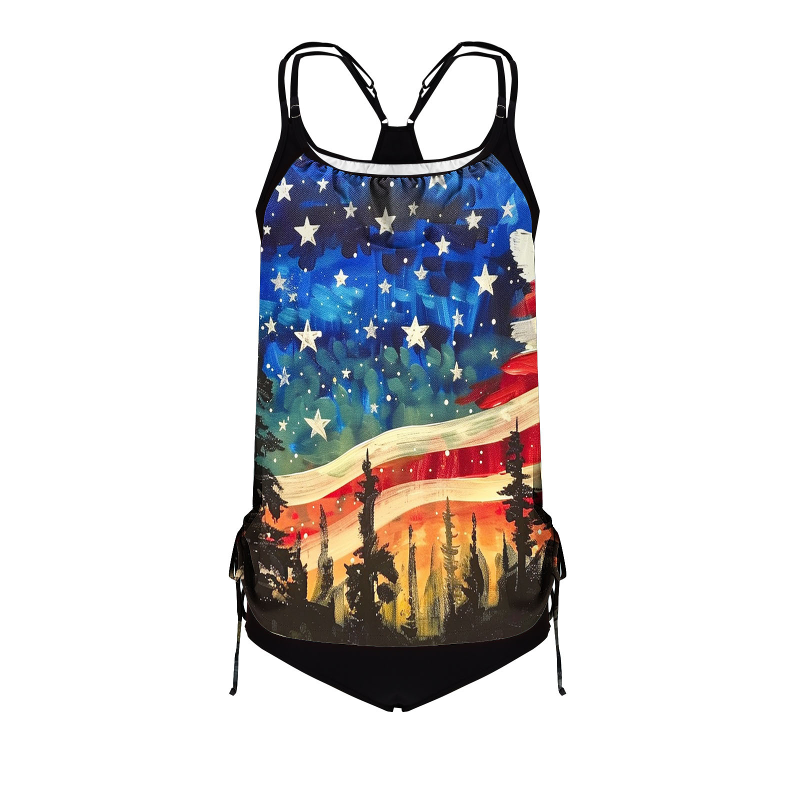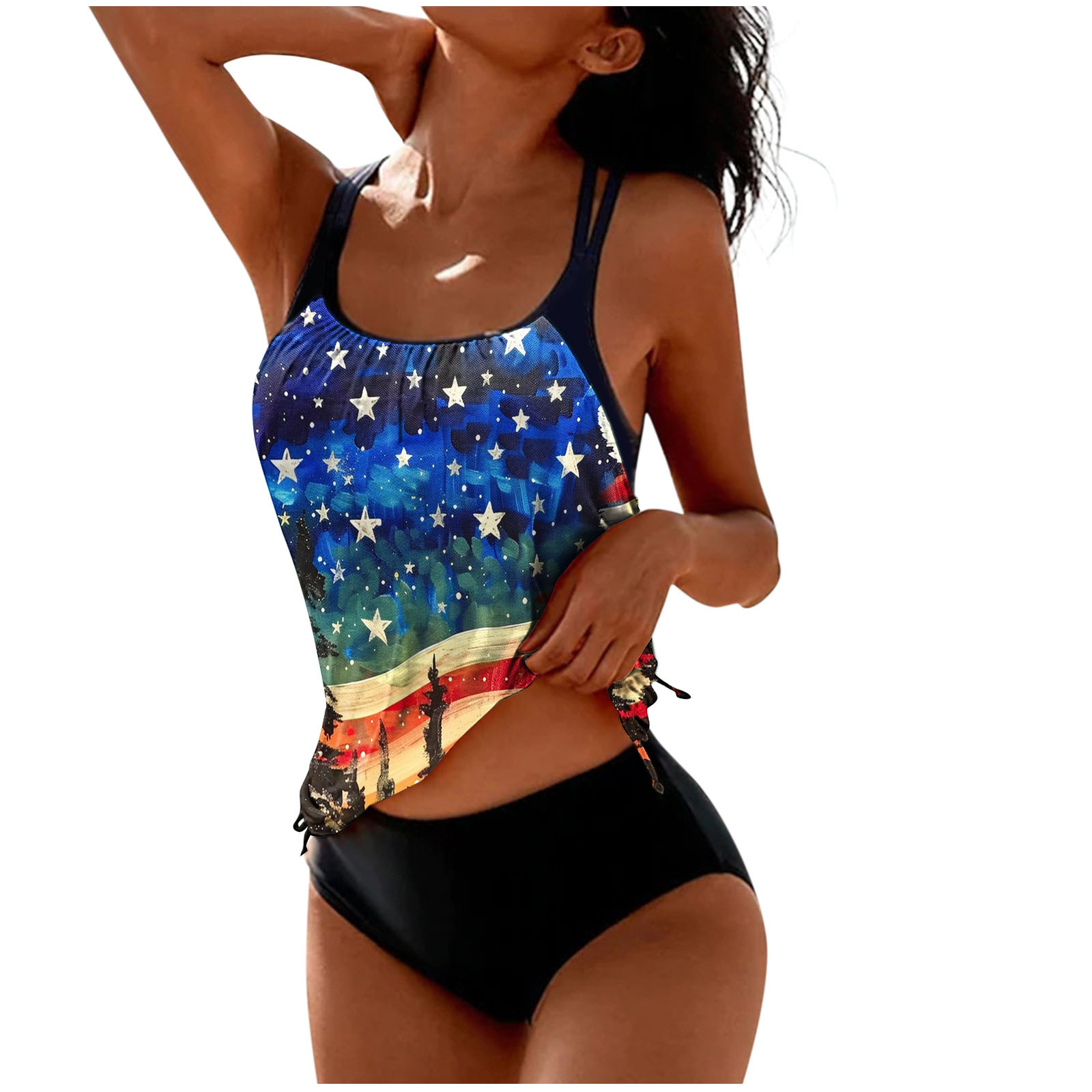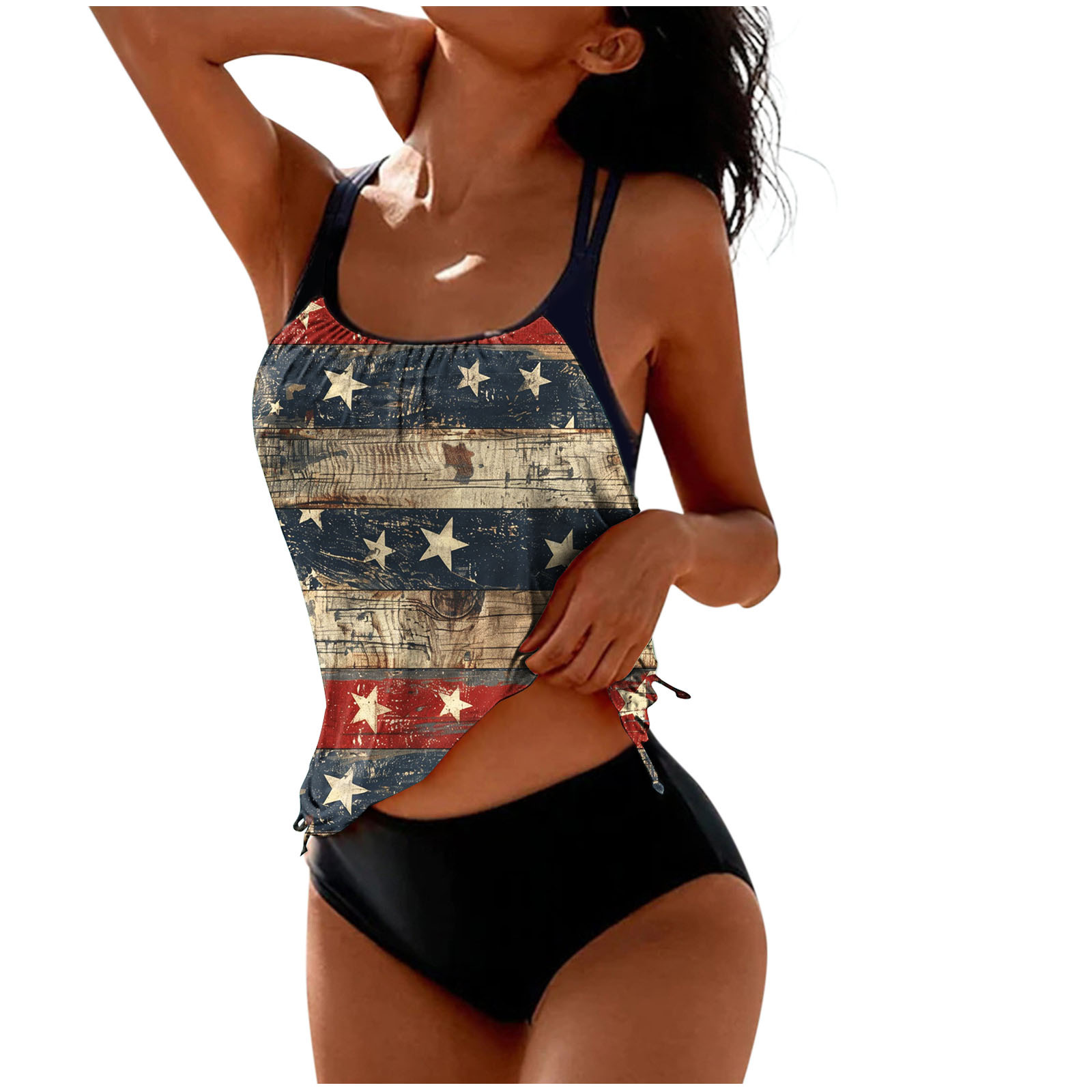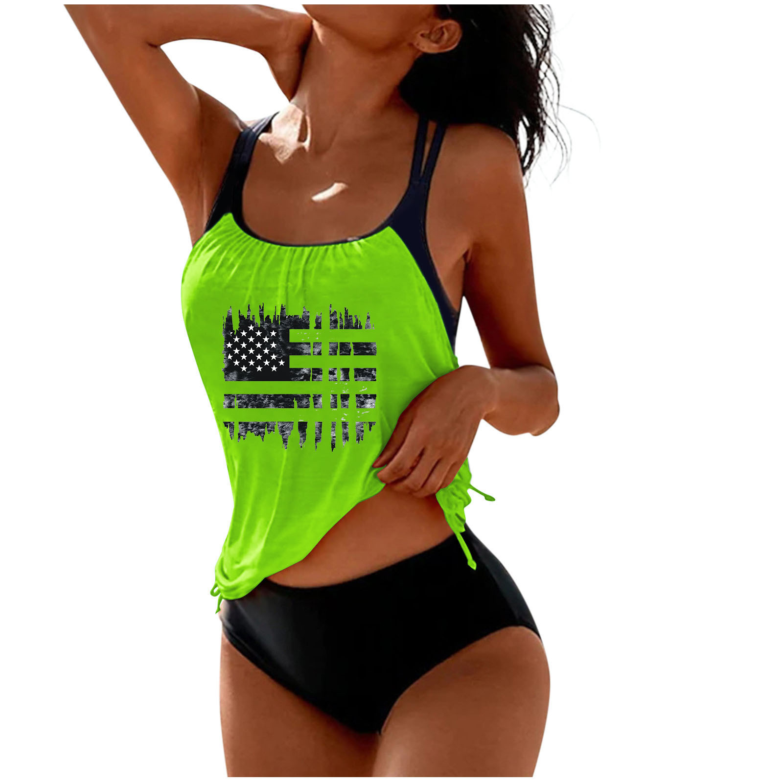2025 국경 유럽 및 미국 국기 인쇄 분할 옷 국경 아마존 핫 비키니 비치 세트 여성