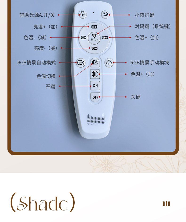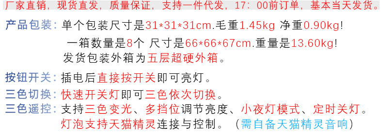 • 12W-220V는 Tmall Elf(3가지 색상) 리모컨 + 디밍을 지원합니다.