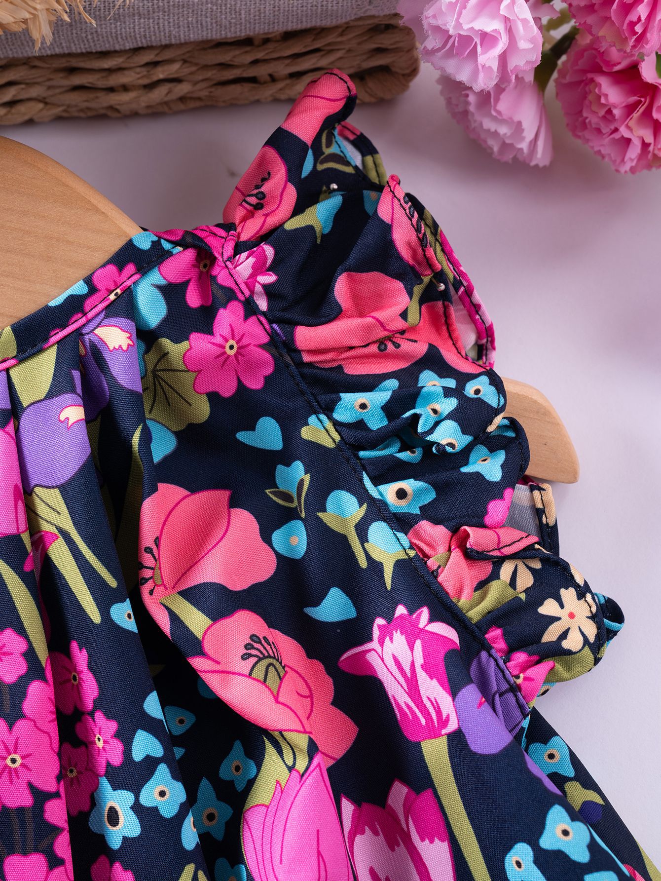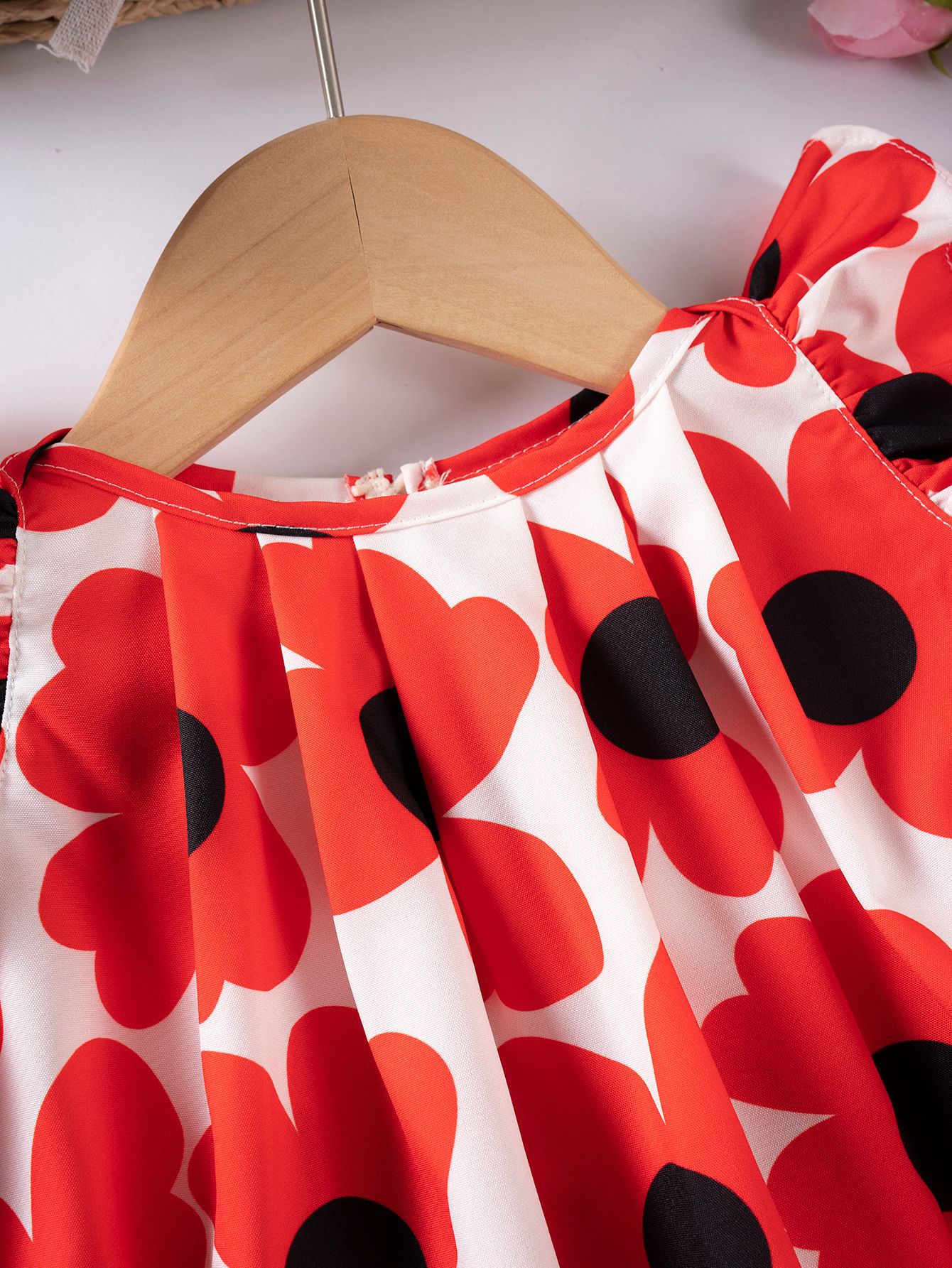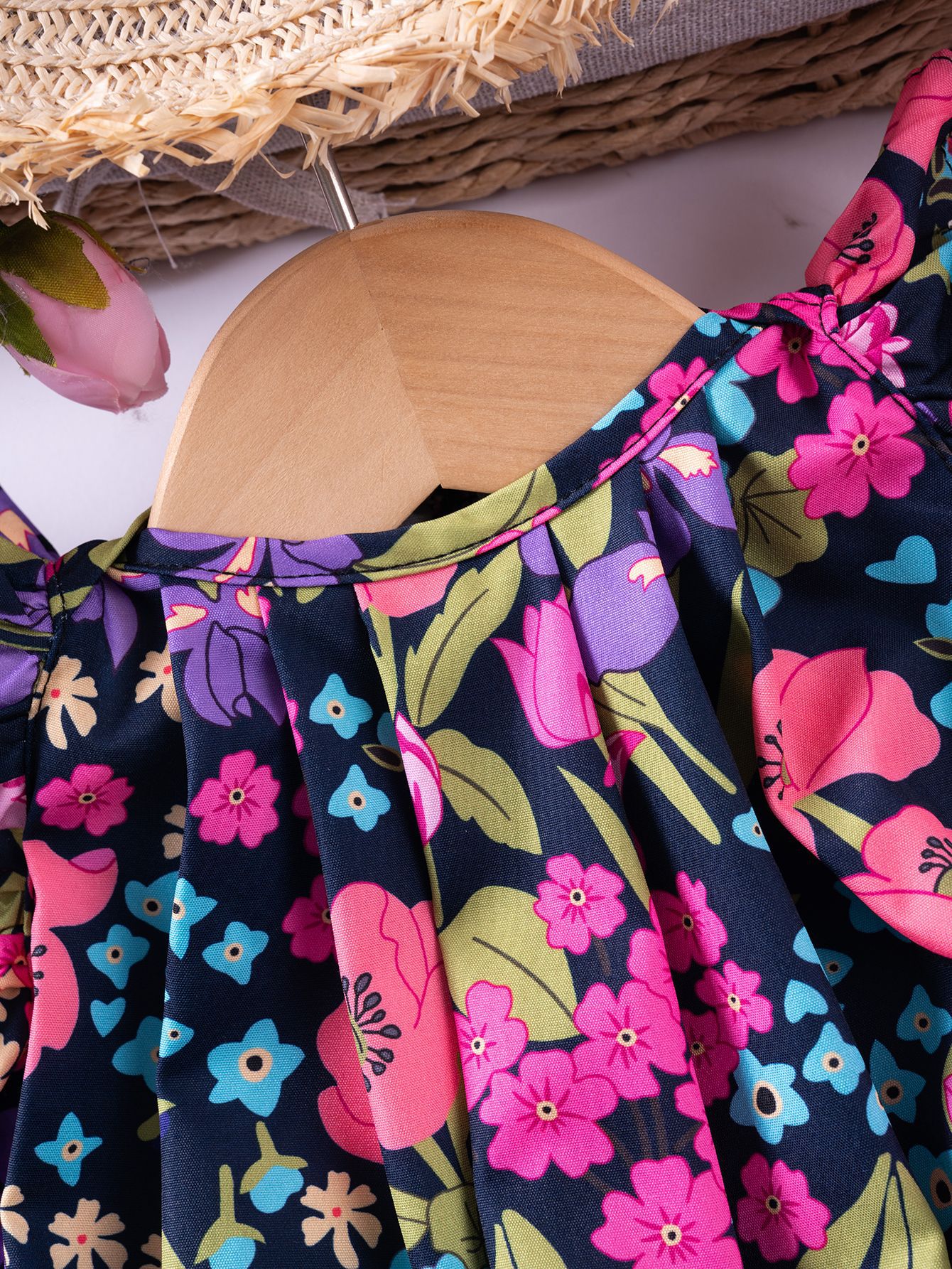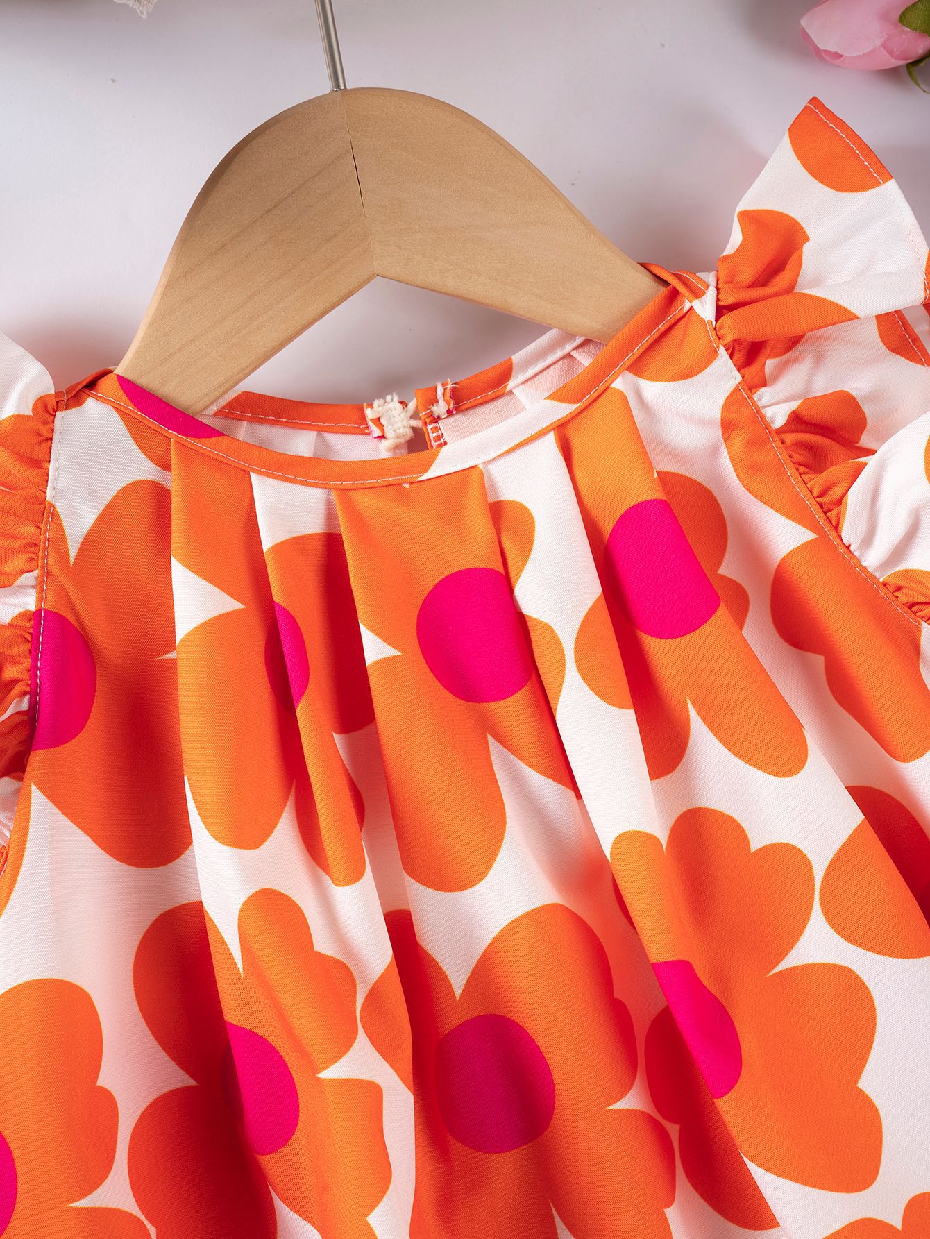 2026 여름 여아 원피스, 귀여운 꽃무늬 프린트, 달콤한 플라잉 슬리브, A라인 스커트, 라운드넥 풀오버 스커트
