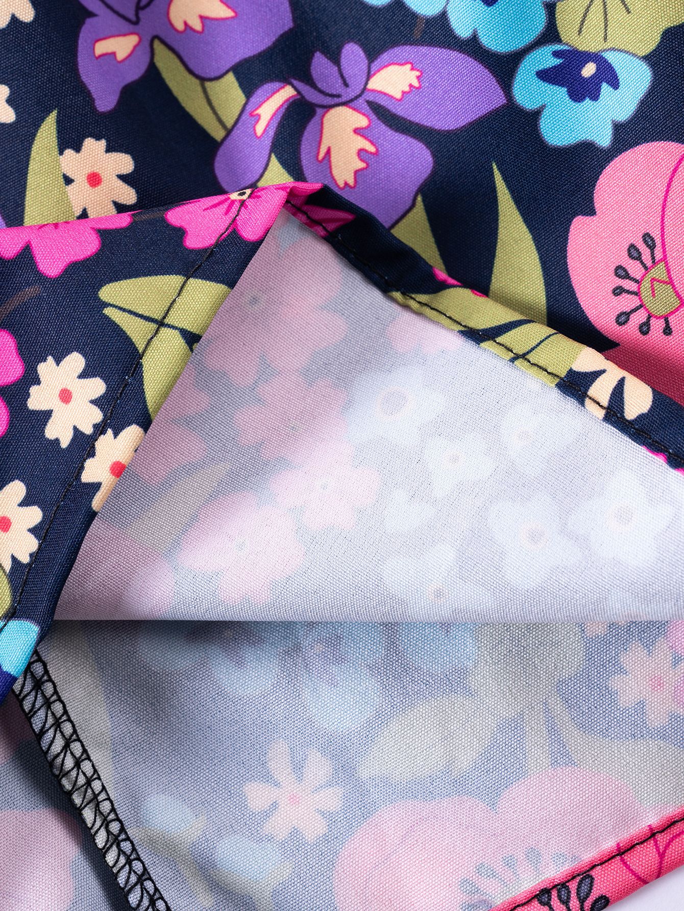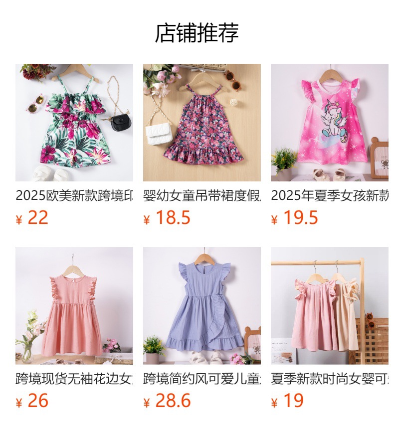 2026 여름 여아 원피스, 귀여운 꽃무늬 프린트, 달콤한 플라잉 슬리브, A라인 스커트, 라운드넥 풀오버 스커트스토어 가기