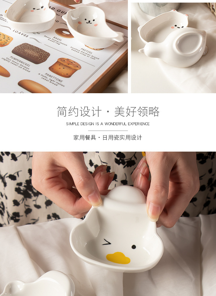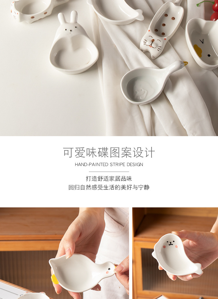 양각 세라믹 맛 접시 창조적 인 만화 소스 스낵 접시 미니 귀여운 가정용 식초 접시 뜨거운 냄비 접시