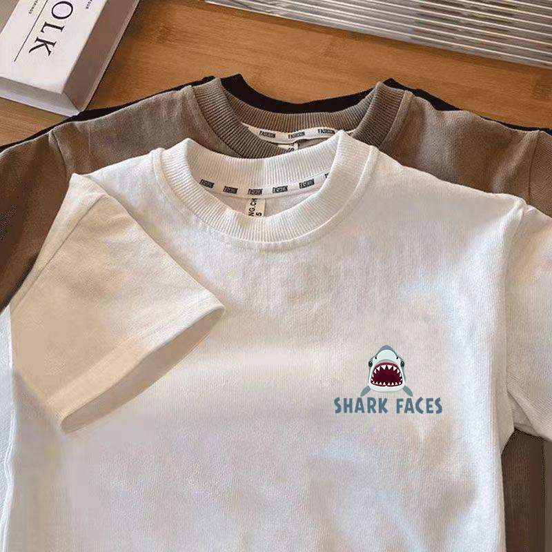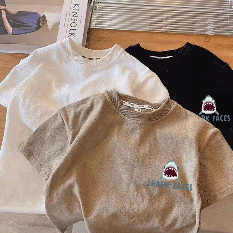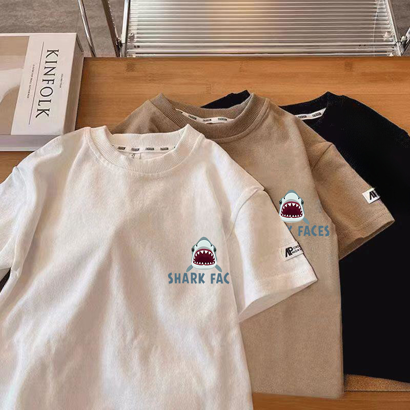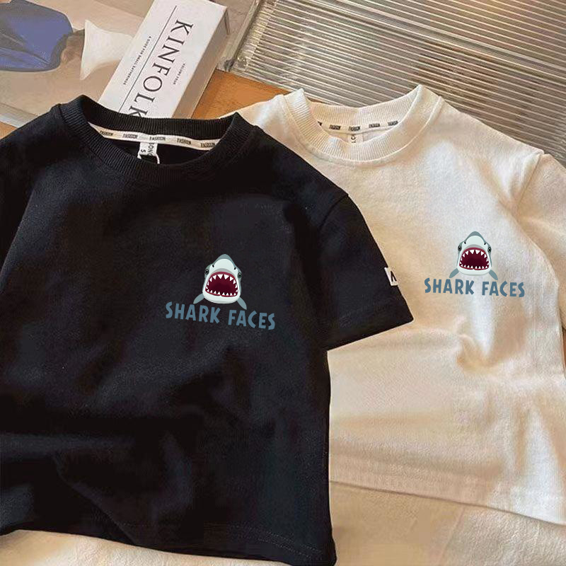 국경 간 아동복 반팔 티셔츠 2025 여름 새 어린이 일본 상어 가족 퓨어 코튼 톱 보이 반팔 티셔츠