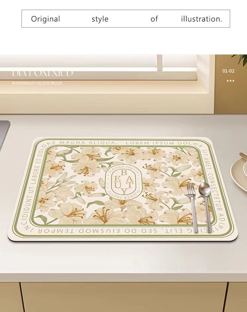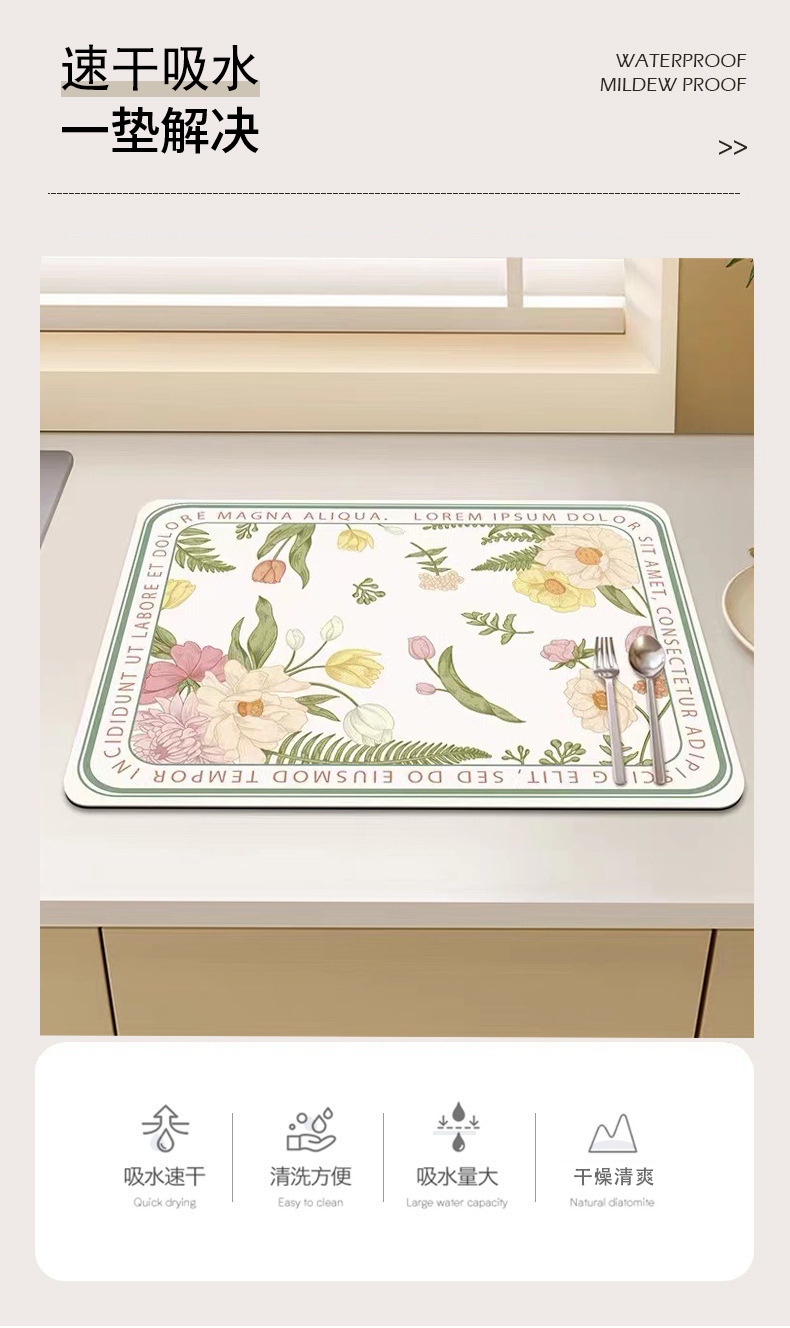 작은 신선한 주방 배수구 매트 부드러운 규조망 진흙 건조 매트 가정용 카운터 탑 수도꼭지 스플래쉬 매트 안티 슬립 매트 테이블 매트스토어 가기