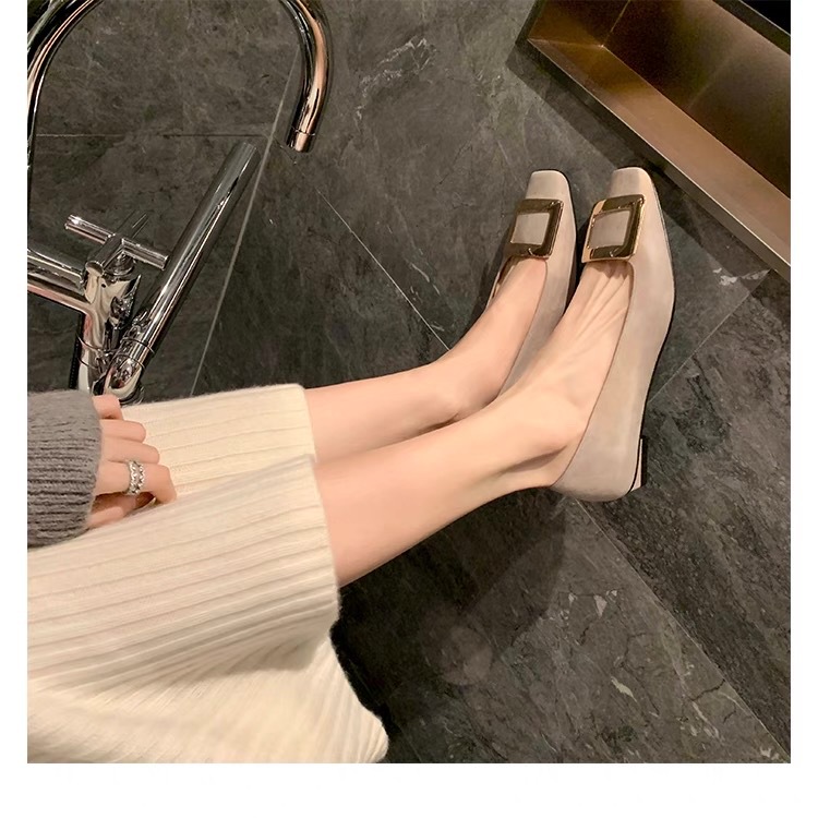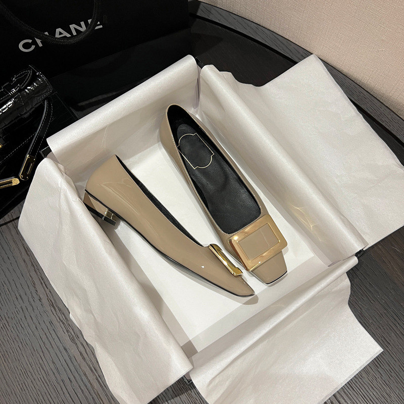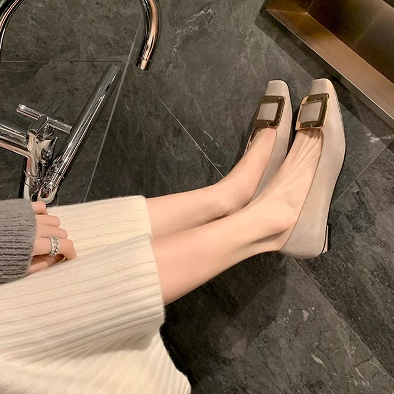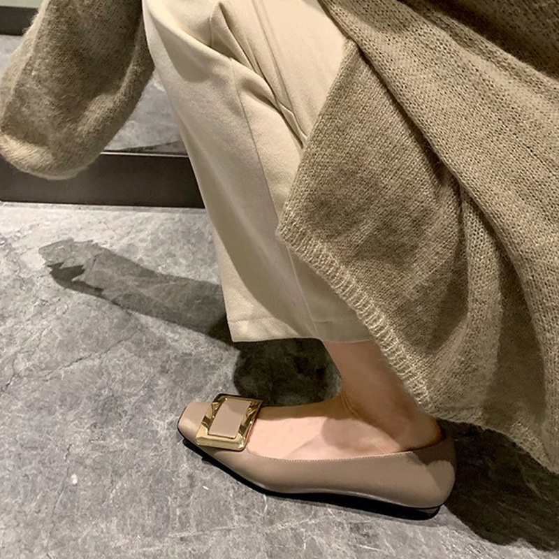 프렌치 스퀘어 버클 플랫 슈즈 여성용 고급스러운 스퀘어 토 얕은 굽 메리제인 부드러운 봄가을 슈즈스토어 가기