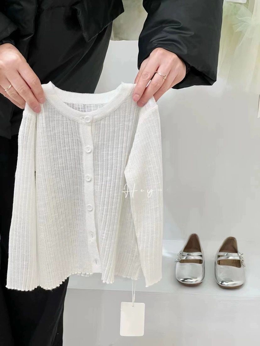 아동 의류 소녀 얼음 실크 태양 보호 재킷 아동용 아기 2024 여름 옷 핏 스트립 에어컨 셔츠 얇은 니트 카디건