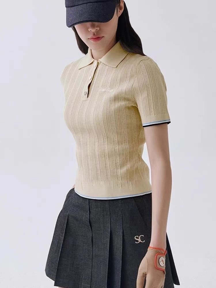 한국 골프 의류 여성 골프웨어 25 봄 여름 신작 라펠 컬러 스웨터 폴로 셔츠 반팔 T