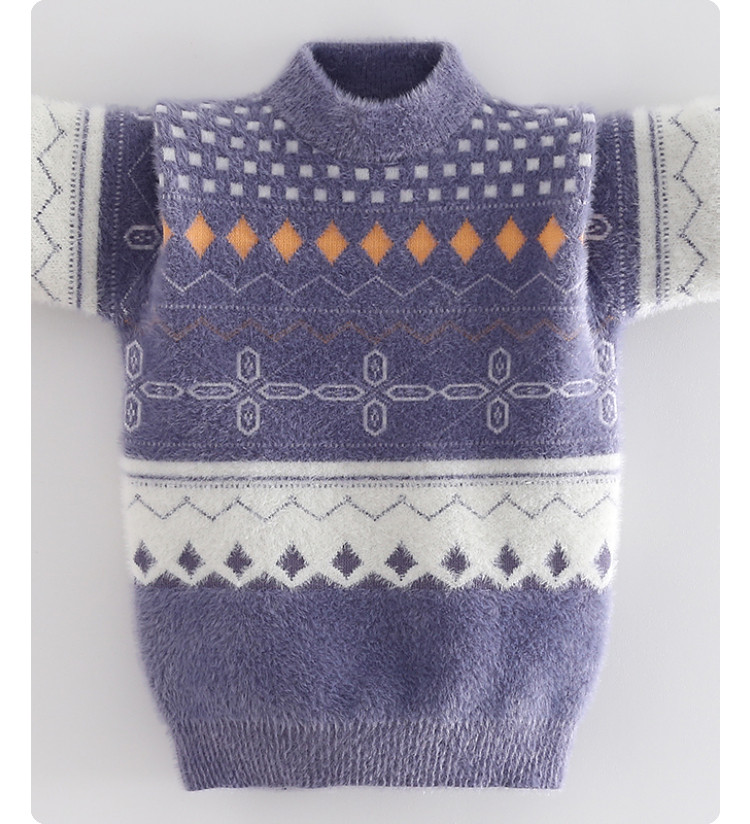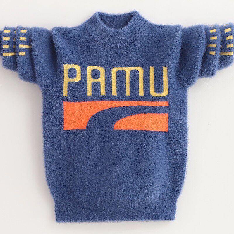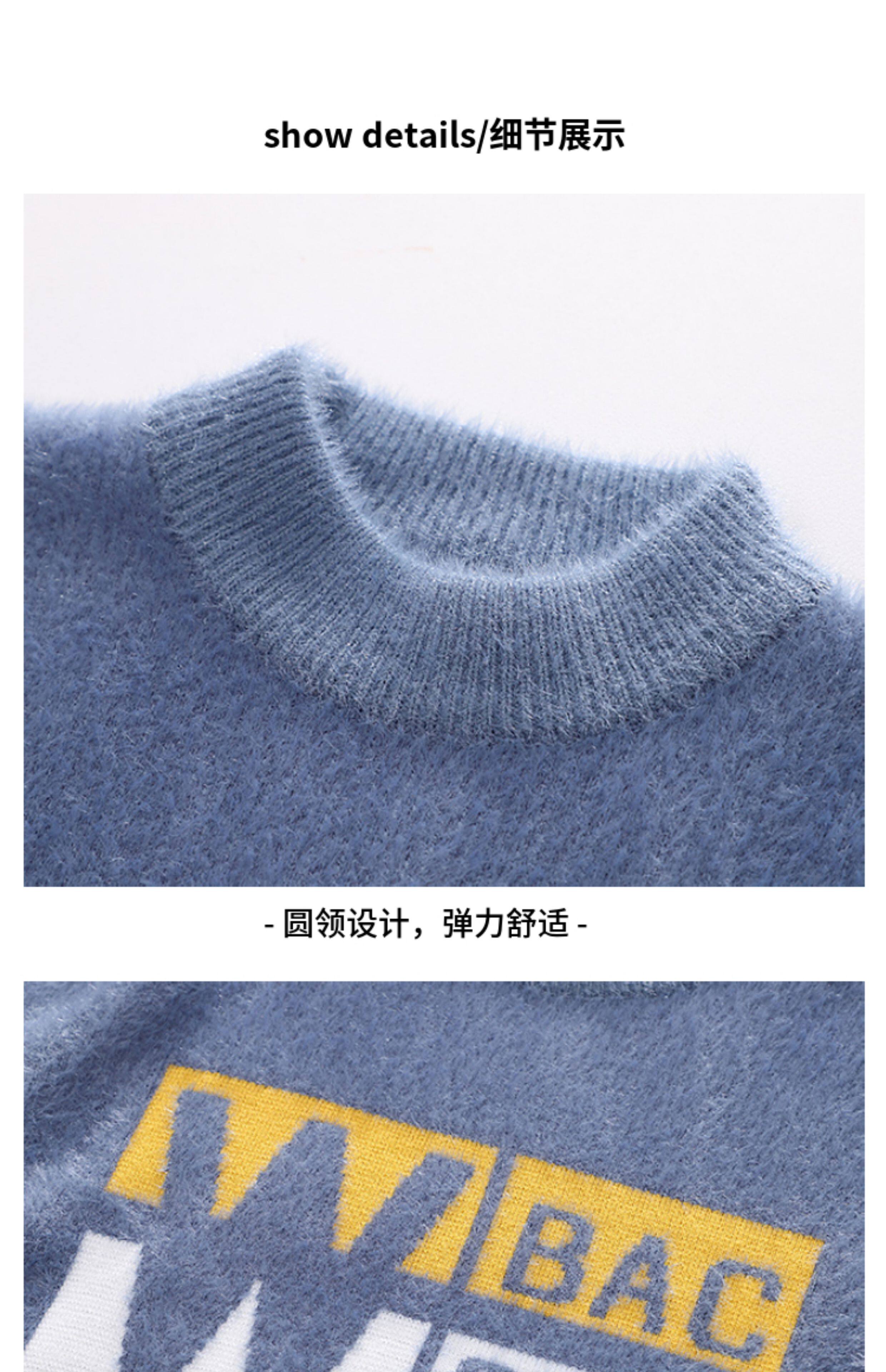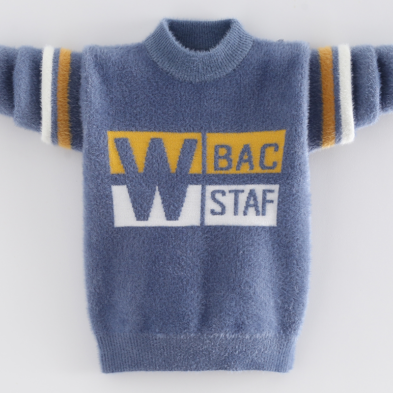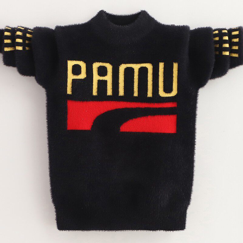 2025 가을, 겨울 아동용 스웨터 소년 밍크 벨벳 따뜻한 탑, 중대형 어린이를 위한 세련된 소년 두꺼운 스웨터